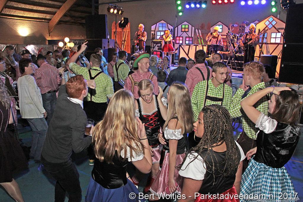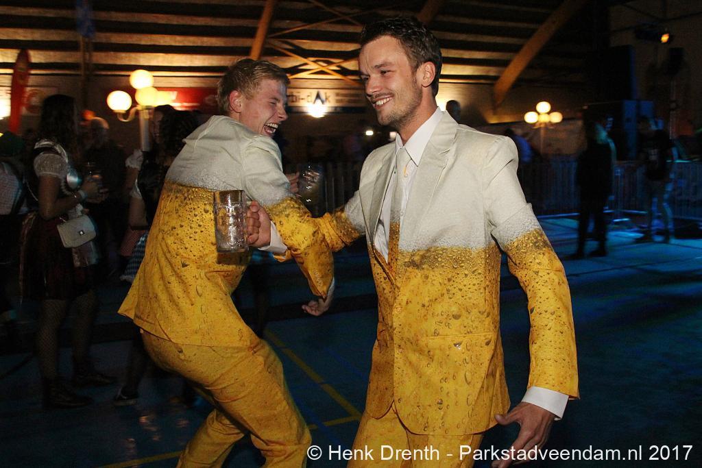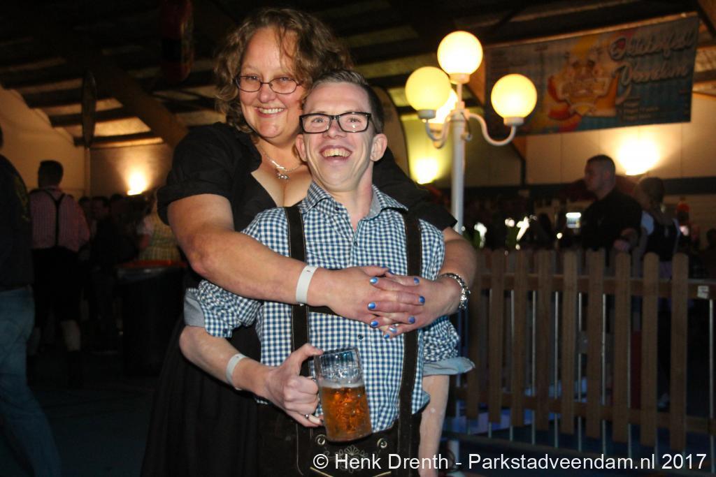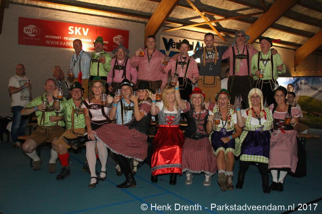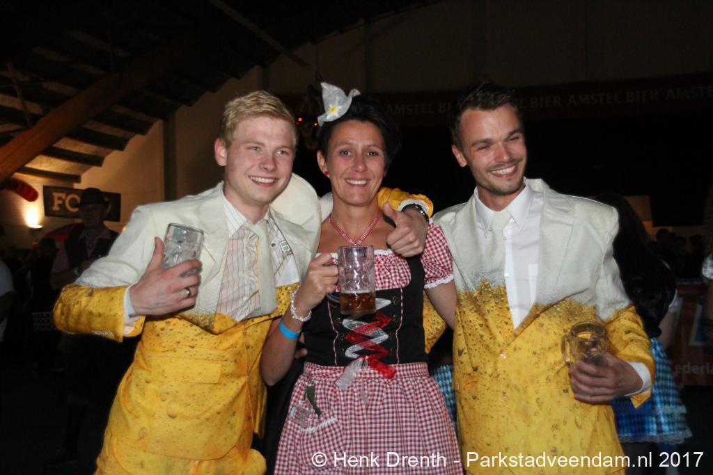 Een groep van 18 personen, bestaande uit vrienden, vriendinnen en collega’s van verschillende bedrijven en instellingen, had een van de lange biertafels gereserveerd. En allen Tiroler gekleed. Sommigen kennen elkaar nog van school, en anderen van Veendam 1884. “Een bij elkaar geraapt zootje”, aldus de ludieke omschrijving. Ook een Duitse vriend, Claus, was meegekomen. En hij had zijn zoon bij zich. “Het is beregezellig. Echt super”. Ze gaan naar meer leuke dingen toe, zoals carnaval vieren.