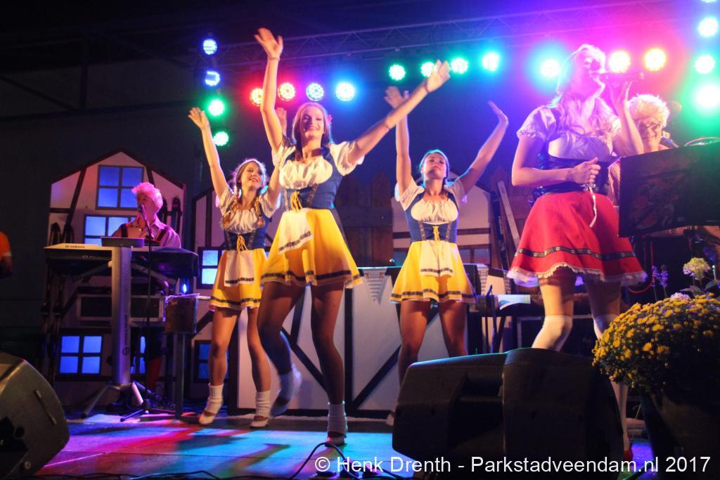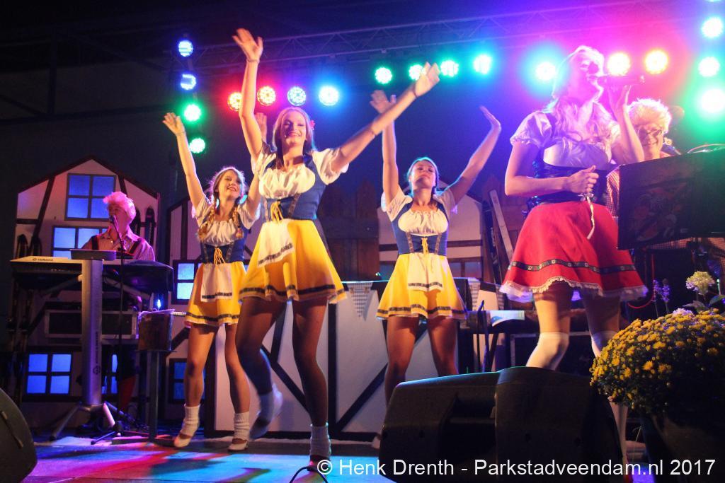 Passende Duitse live muziek is niet los te zien van het Oktoberfest. De Duitse band ‘Die Münchner Smartfetchen’, met dansende en zingende Mädels, bracht de Stimmung er goed in. Tijdens de pauzes draaiden twee Duitse diskjockeys Duitse muziek in popgenre en Volkstümlich.