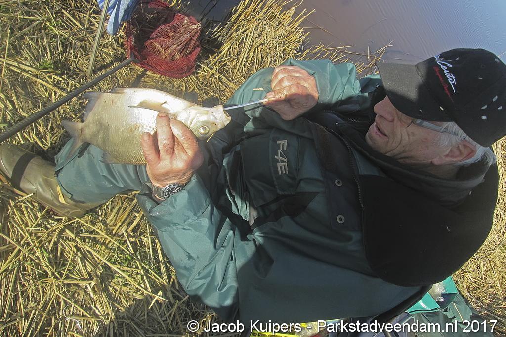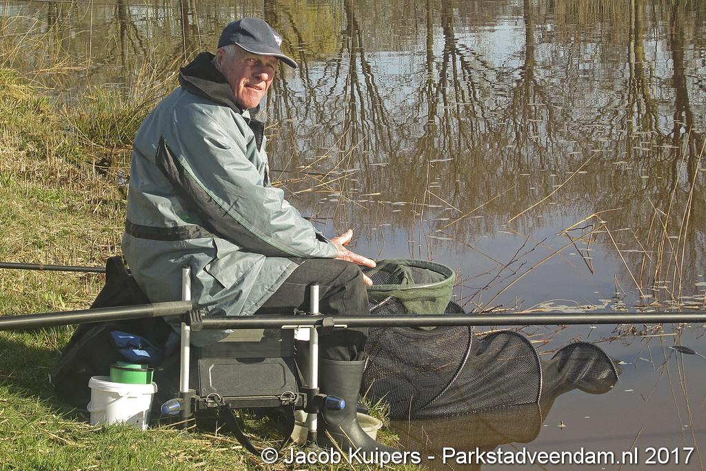 Nee, het waren niet de vissers uit San Juan, waar in vroeger tijden Frank en Mirella over zongen. Het waren de vissers van visvereniging Ons Genoegen uit Veendam. Maar misschien beschikken deze mensen ook wel over een 'gouden keeltje'. Maar op deze zonnige morgen was het muisstil. Af en toe kwam er een passant langs maar de mannen van het water gunden de voorbijganger geen blik waardig. Want ze waren met de wedstrijd bezig. Tegen 12 uur was het exit voor de hengelaars. Vervolgens naar de podium plaatsen.