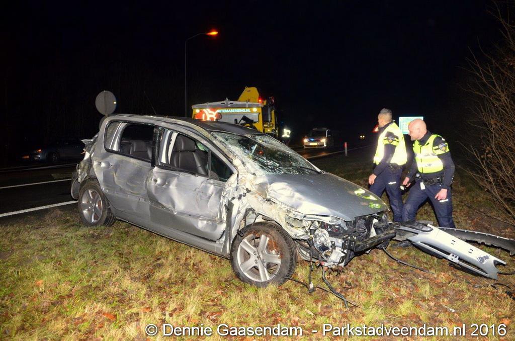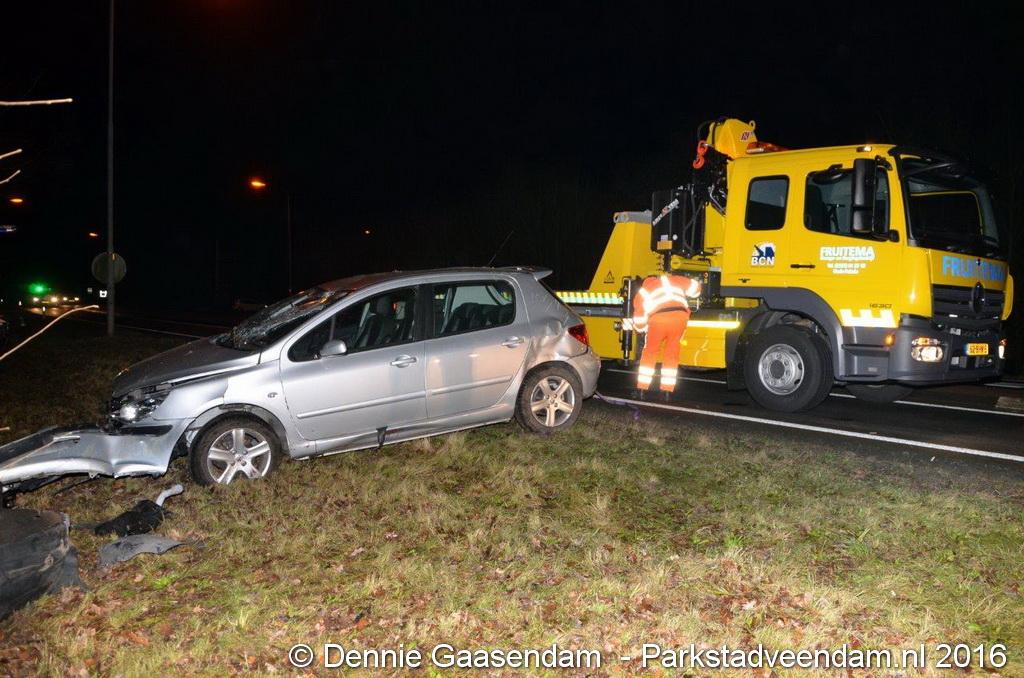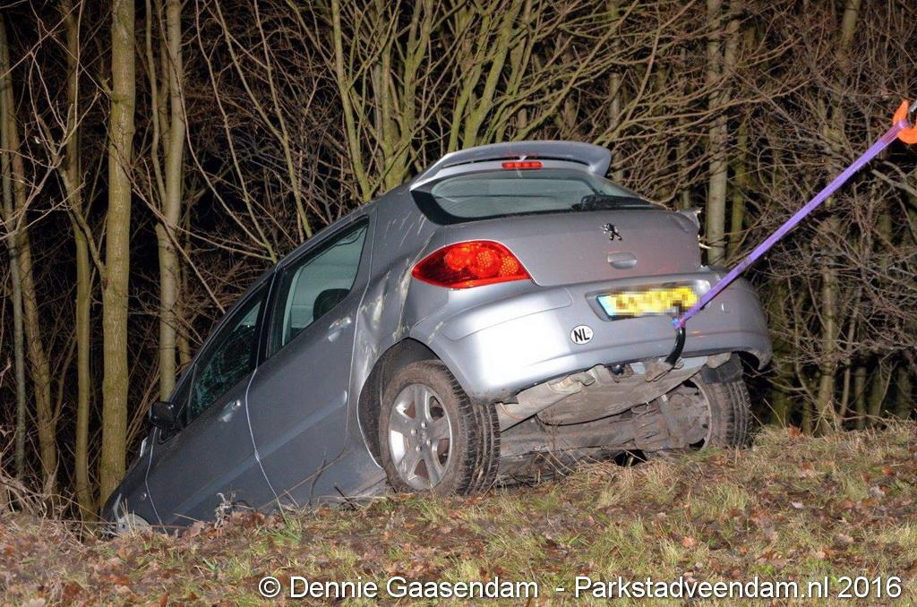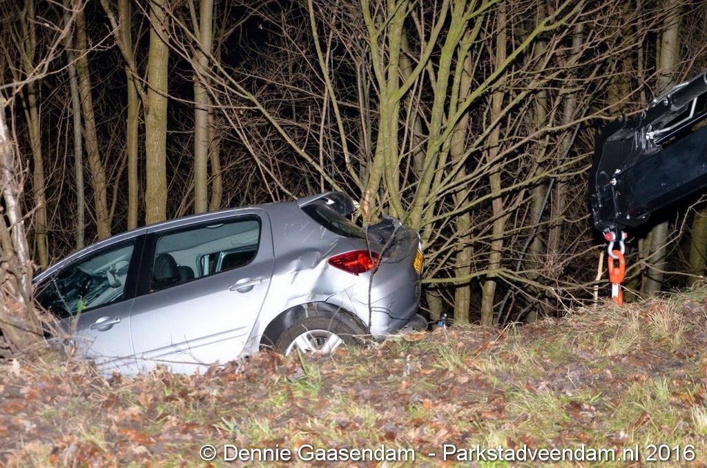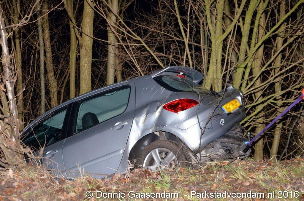 Auto van de weg bij Nieuwe Pekela en botst op bomen