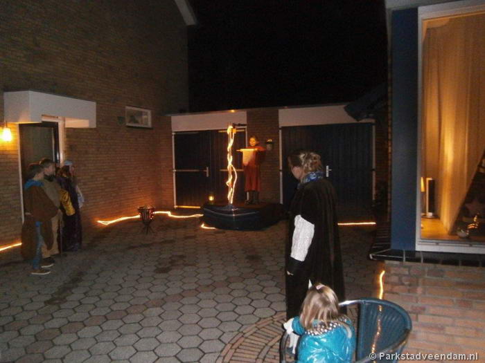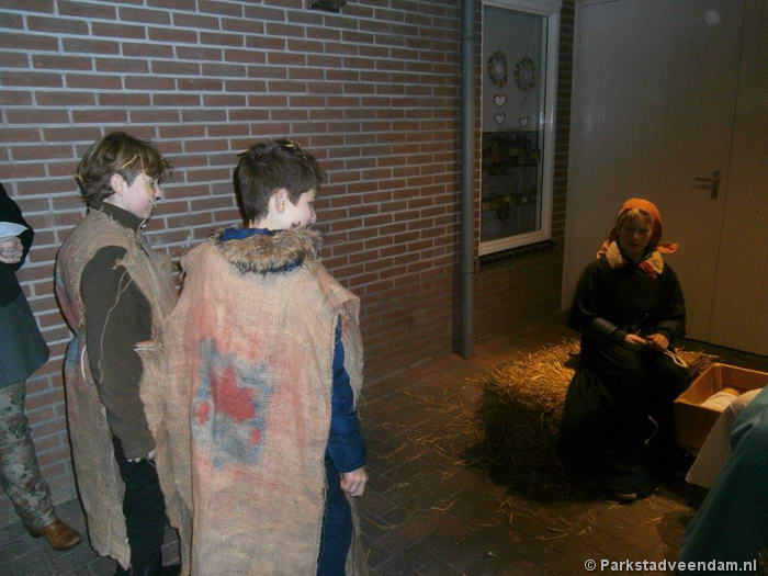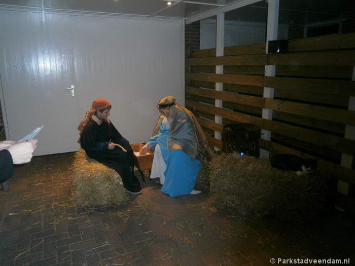 Op diverse locaties bij de school speelden leerlingen het verhaal rond de geboorte van het kindeke Jezus uit. Zo zaten Jozef en Maria met hun kleintje niet in de stal maar onder een carport waar ze o.a. bezoek kregen van de drie koningen.