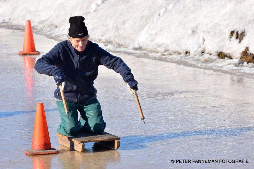 `Ik moest er even op, maar het was gelijk de laatste keer` aldus de altijd goedlachse Jaap. de Weijs was vroeger ooit de oprichter van de Noord Nederlandse Prikslee Vereniging. En met de hele ploeg werd per bus meermalen naar de Weissensee in Oostenrijk afgereisd om er 20 kilometer te priksleeën.
