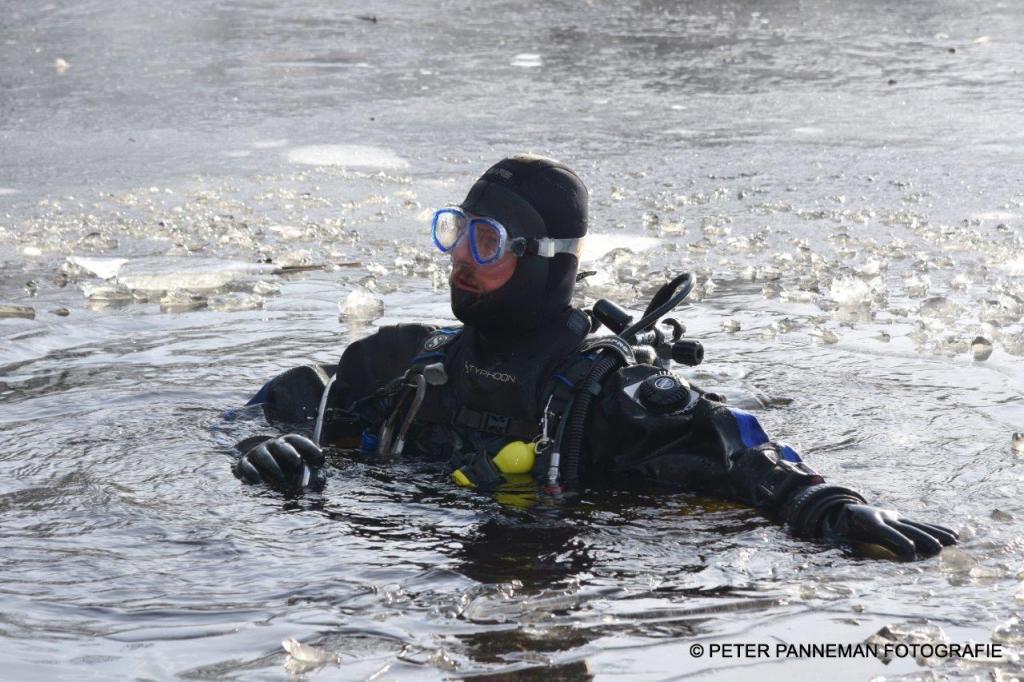 Duikschool VG Diving ging zondagmorgen in de vrieskou met een aantal leden in `Tiktak-visplas` in Nieuwediep ijsduiken. Het is een speciale opleiding voor mensen die wat meer willen dan alleen duiken