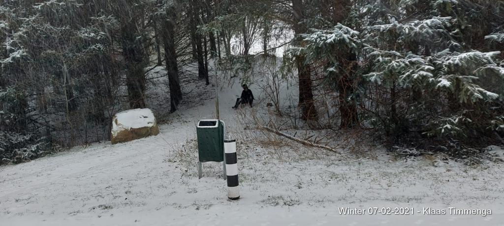 Zondagmorgen leek het met een dun laagje sneeuw nog mee te vallen. Een pak tot 20 centimeter zou het in de provincie ook niet worden. Maar doordat er meer sneeuw ging vallen groeide het over de gehele dag toch aan. Met op beschutte plekken de verwachte 2- tot zo’n 5 centimeter.