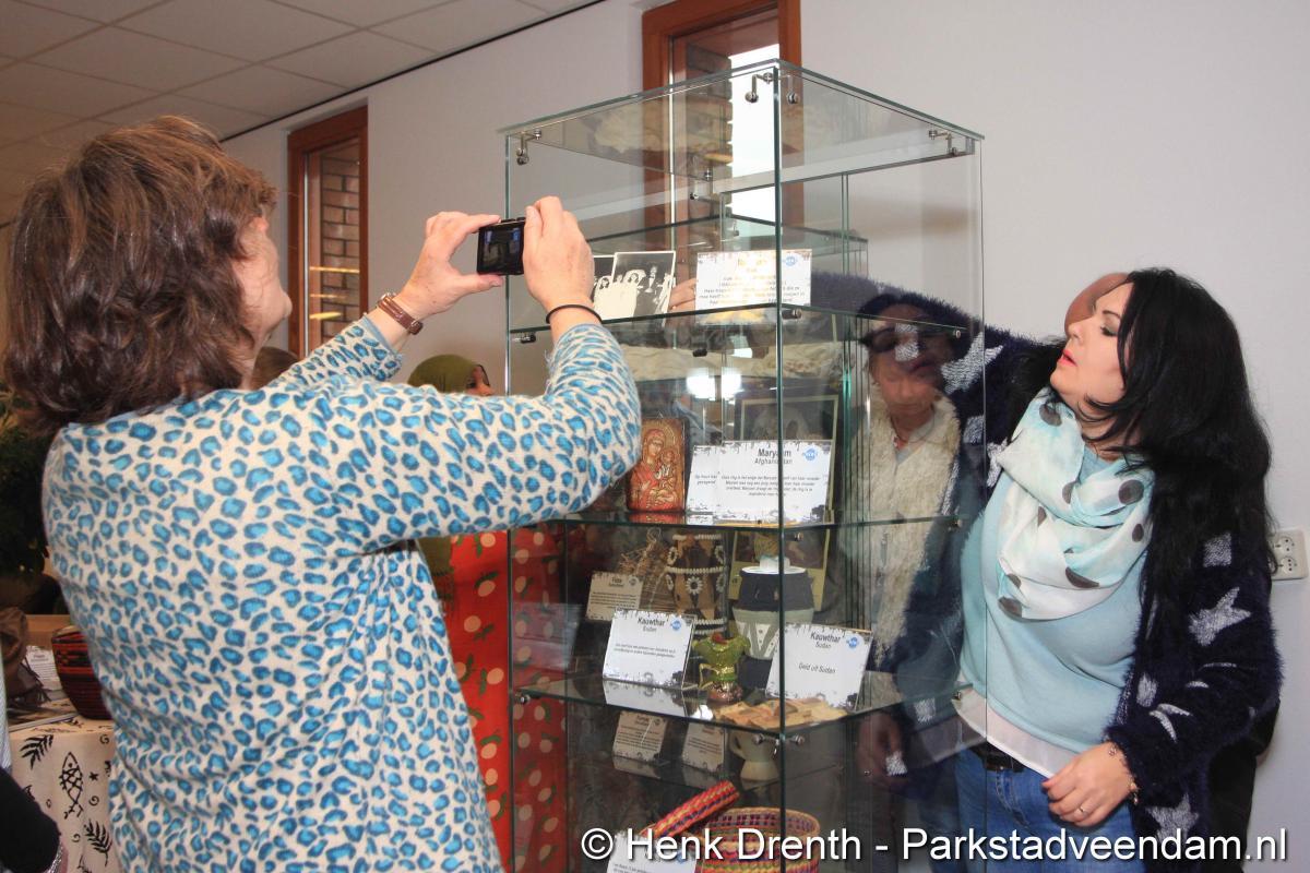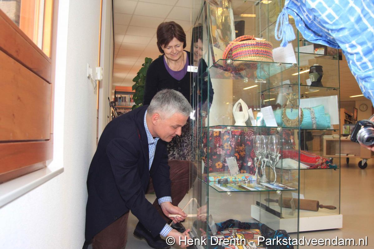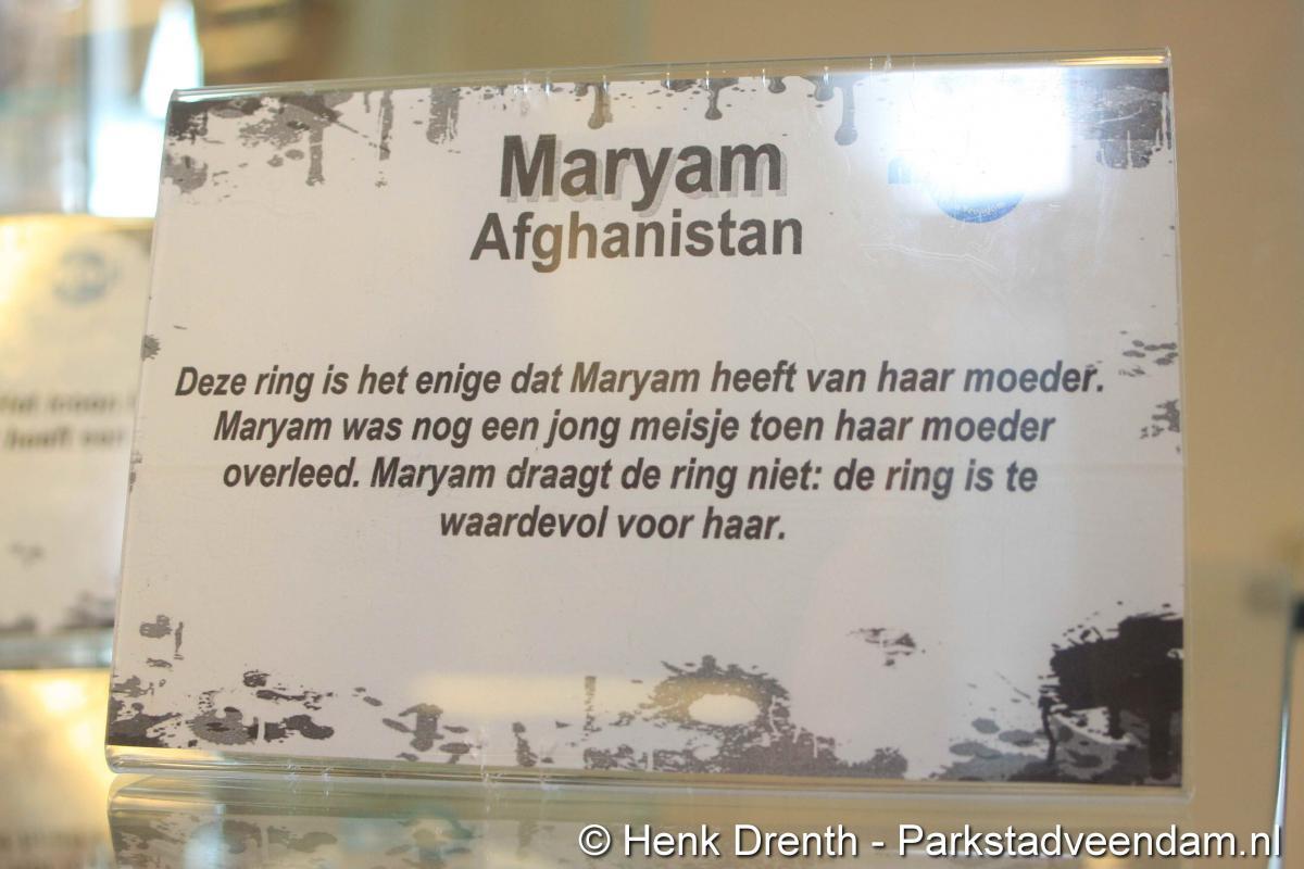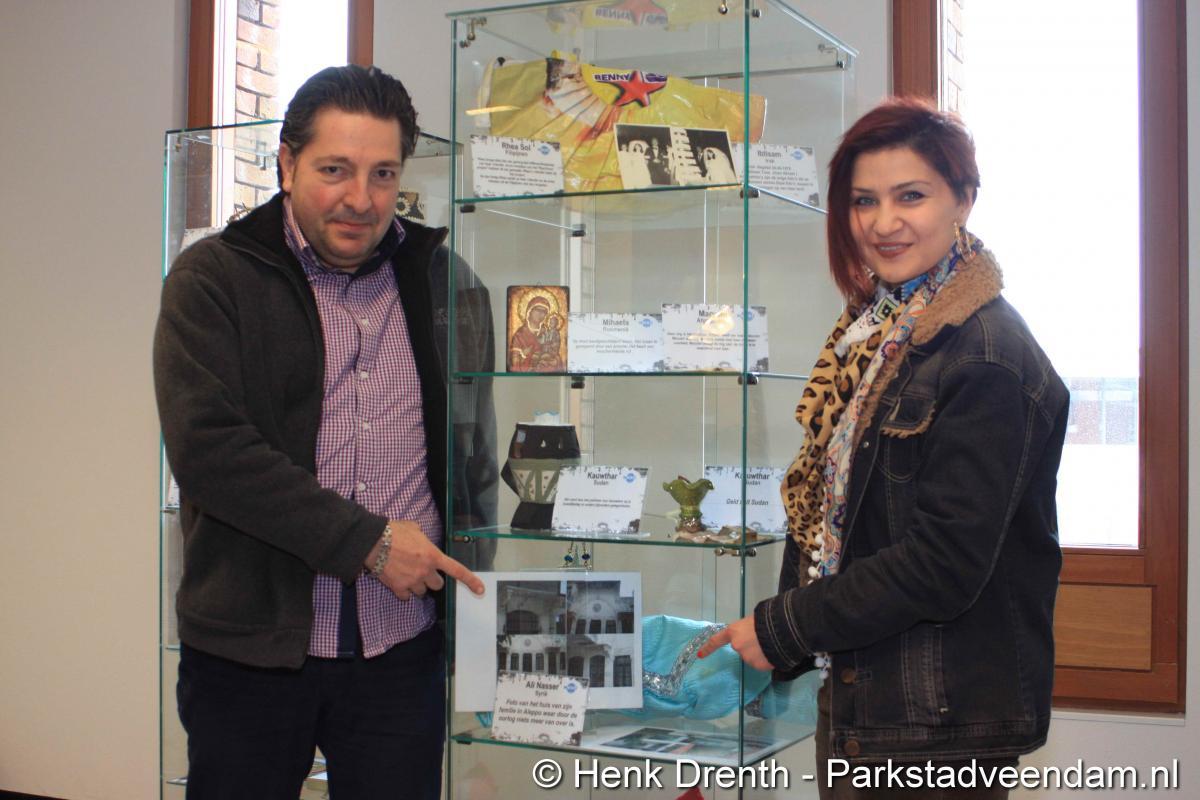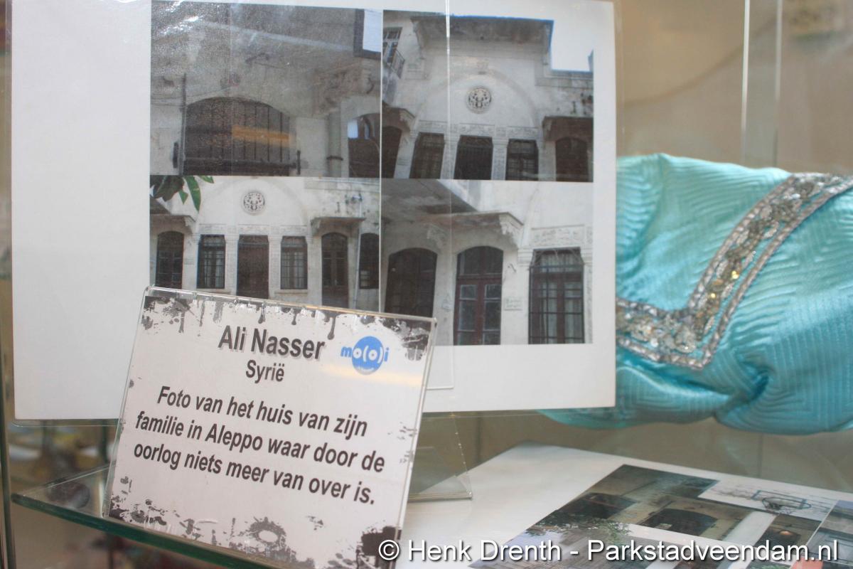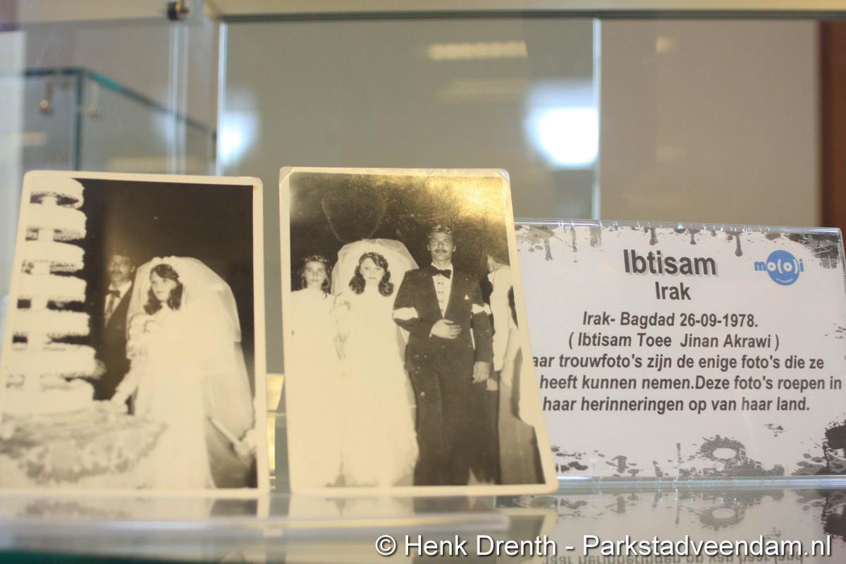 HEFTIGE ACHTERGRONDEN - Vrijdagmorgen heeft wethouder Jaap Velema in de bibliotheek een vitrinetentoonstelling geopend met intieme voorwerpen. De tentoonstelling was namens de bibliotheek en de internationale en multiculturele club Mo(o)i opgezet. Twee vitrinekasten zijn gevuld met deze zeer persoonlijke voorwerpen, waar vaak een schrijnend verhaal achter zit. Het verhaal van mensen die in allerijl hebben moeten vluchten. En in de gauwigheid alleen nog iets heel persoonlijkst mee hebben kunnen nemen, zoals een ring of enkel een foto.