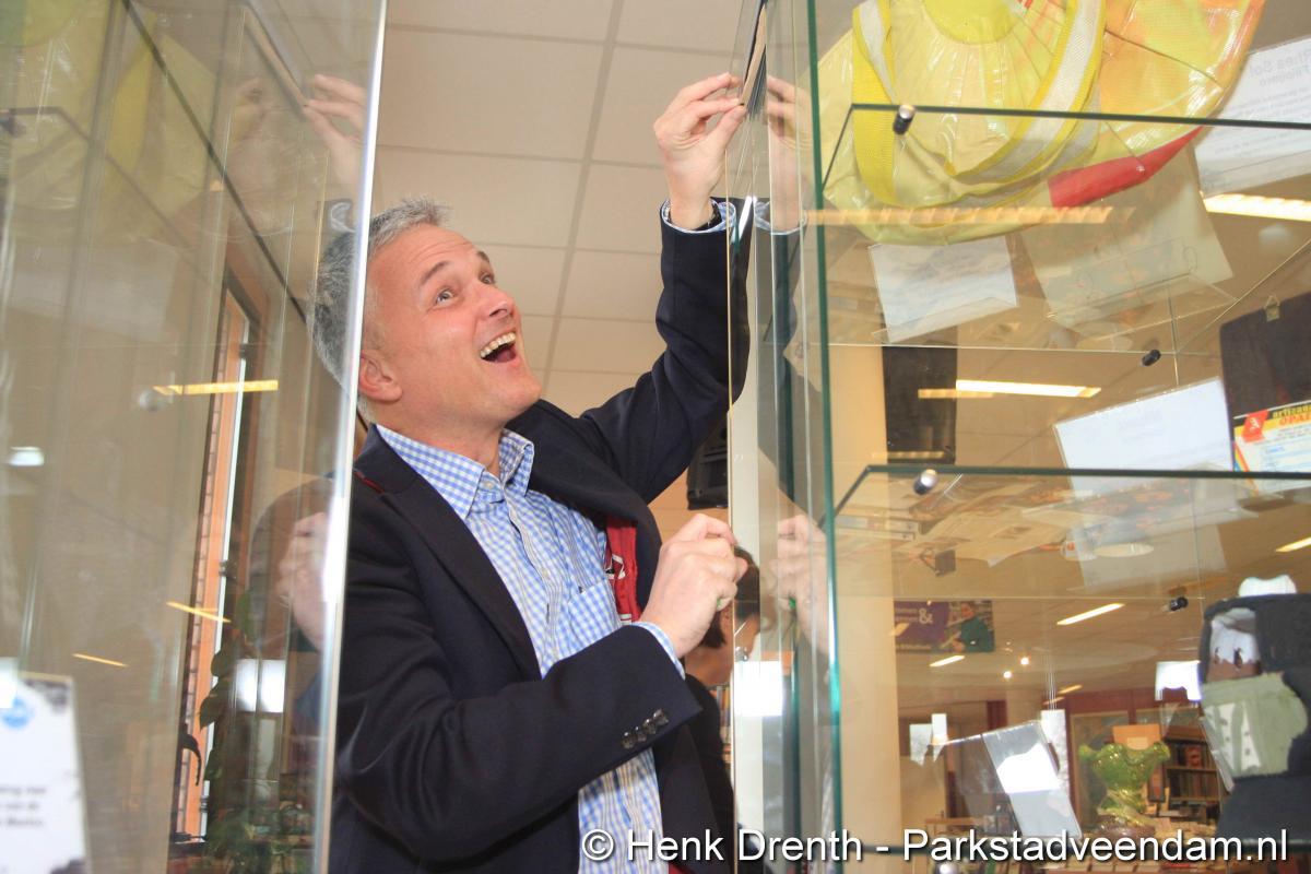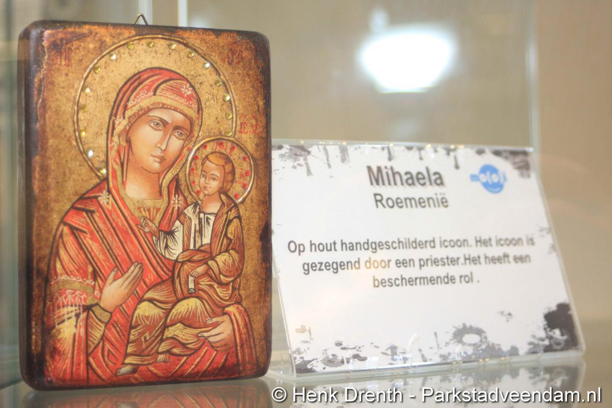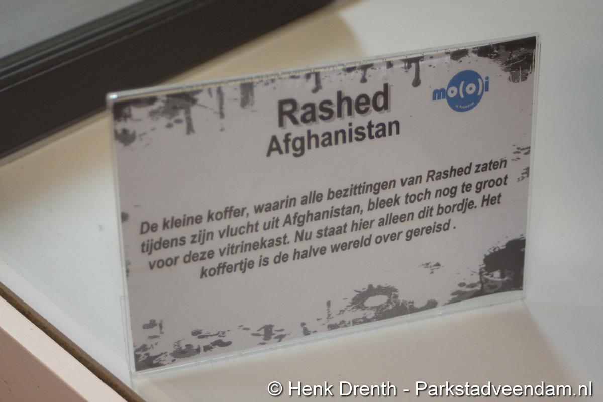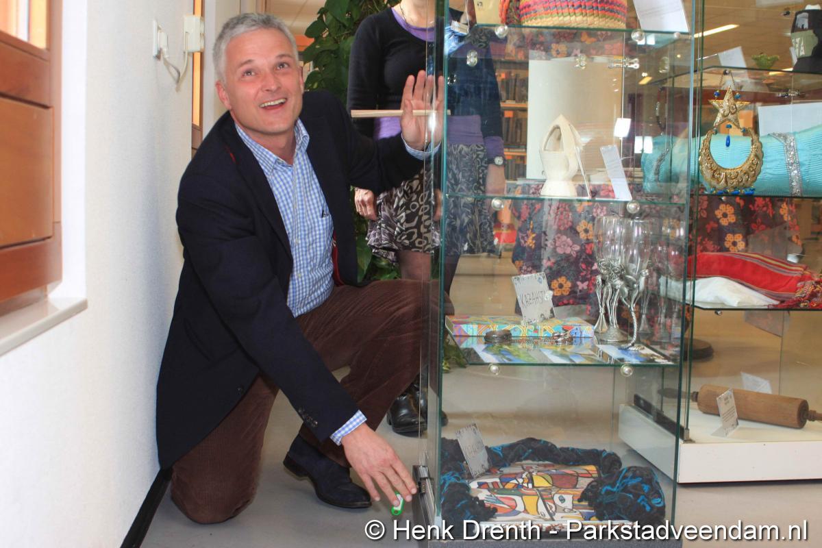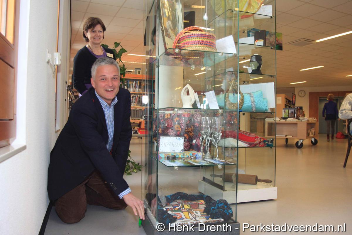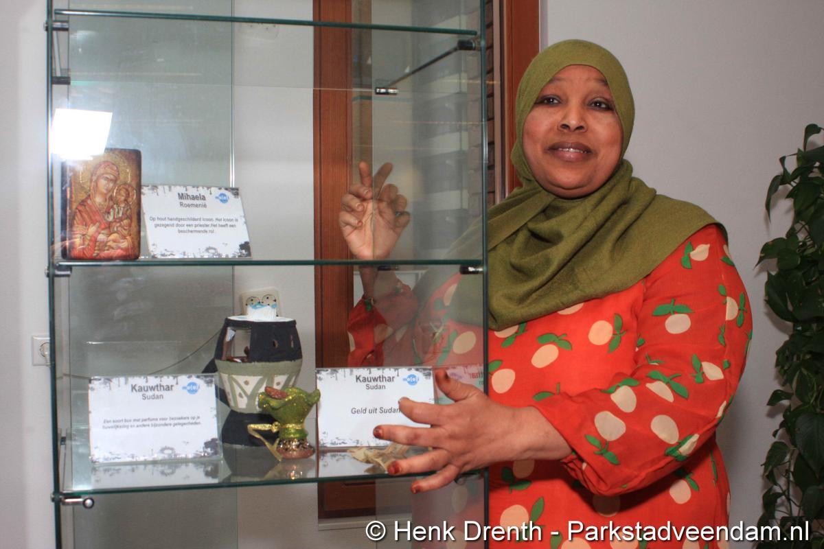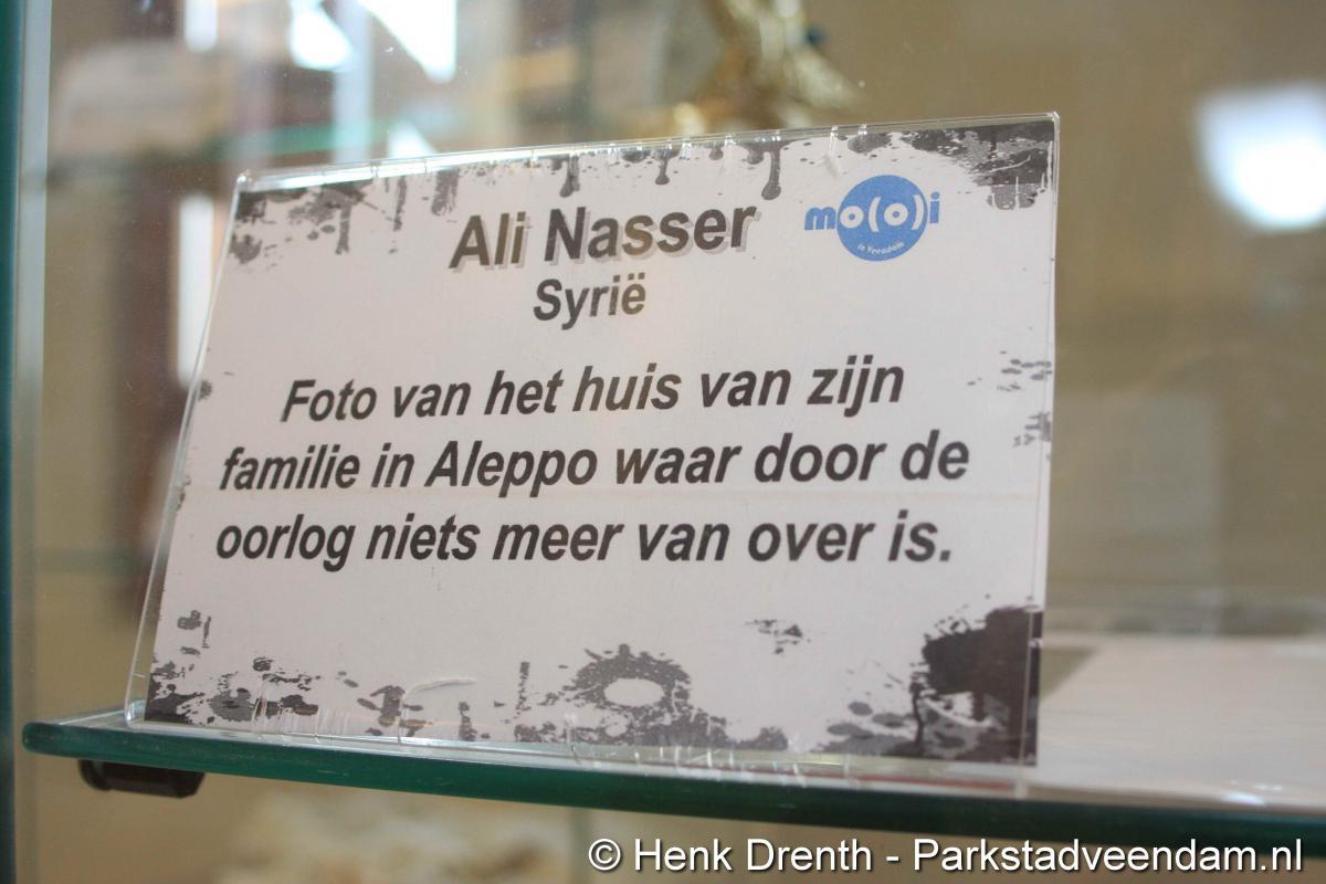 HEFTIGE ACHTERGRONDEN - Vrijdagmorgen heeft wethouder Jaap Velema in de bibliotheek een vitrinetentoonstelling geopend met intieme voorwerpen. De tentoonstelling was namens de bibliotheek en de internationale en multiculturele club Mo(o)i opgezet. Twee vitrinekasten zijn gevuld met deze zeer persoonlijke voorwerpen, waar vaak een schrijnend verhaal achter zit. Het verhaal van mensen die in allerijl hebben moeten vluchten. En in de gauwigheid alleen nog iets heel persoonlijkst mee hebben kunnen nemen, zoals een ring of enkel een foto.
