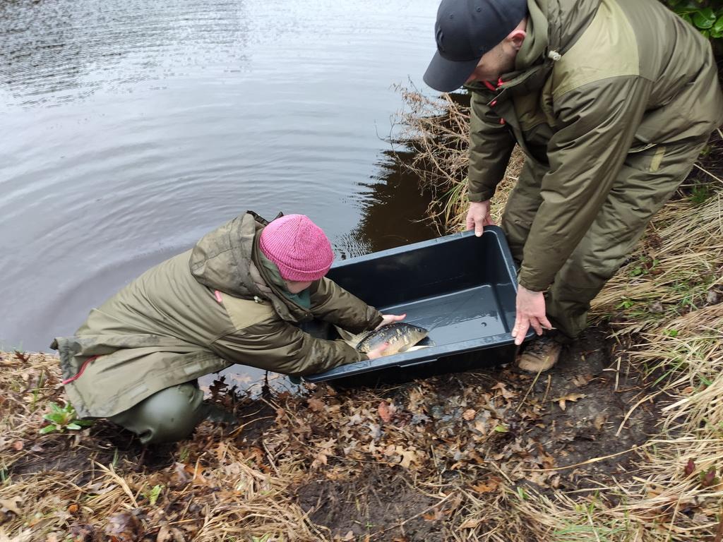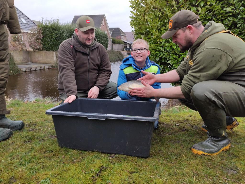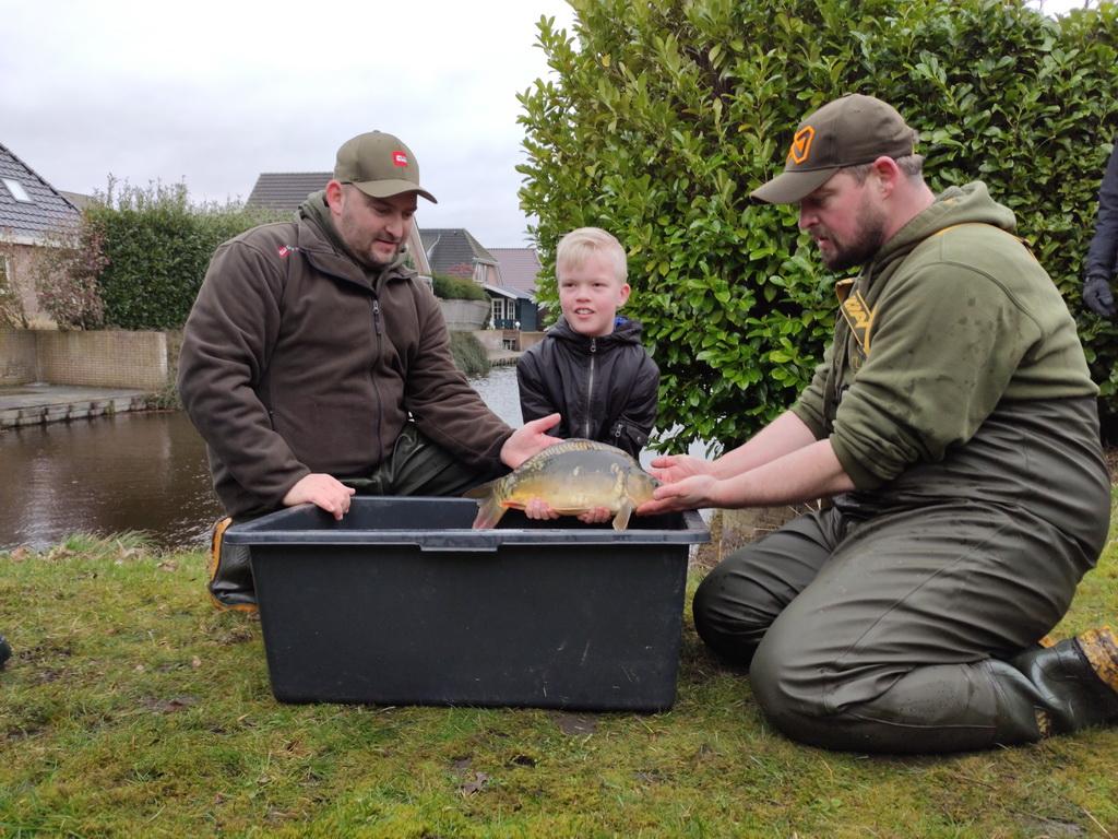Voorgaande was voor inwoner van de wijk Robert de Jonge aanleiding om eens te kijken of er een karperuitzet gerealiseerd kan worden: ´dit had best nog wat voeten in aarde, ik heb overleg gehad met het wijkbeheerteam, de gemeente Veendam en Sportvisserij Groningen Drenthe. Voor de uitzet moesten de nodige zaken grondig bekeken worden: Is het water geschikt i.v.m. dierenwelzijn, wat zijn de consequenties voor de waterkwaliteit, formele toestemmingen moeten worden verkregen en het uitzetten kost geld dus ook dat moet geregeld worden´. Vanuit het fonds Burgeriniatieven heeft de gemeente Veendam ondersteuning geboden en Sportvisserij Groningen Drenthe heeft voor de praktische uitvoering gezorgd. Jaarlijks zetten zij uit over de gehele provincie op diverse plaatsen karper uit. De uitgezette schub- en spiegelkarpers zijn van hoge kwaliteit en komen van een gerenommeerde kweker uit Frankrijk.