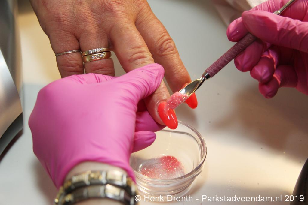 Het aanbrengen van nailart met glitter, bestaande uit fijn poeder, behoord ook tot de mogelijkheden. Met spider cel kunnen abstracte lijnen worden aangebracht. En zelfs schilderingen. Men kan kiezen uit voorbeelden, maar ook zelf de voorbeelden meenemen. Het komt ook voor dat de klant zich wil laten verrassen.