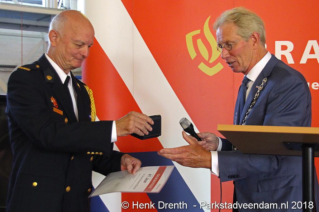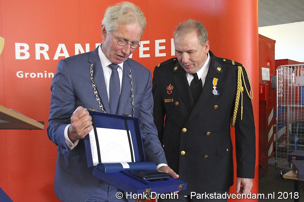 Daarom heeft burgemeester Swierstra ook vier Koninklijke Onderscheidingen uitgereikt aan Engel Jan Roelfsema, Henk Hofman, Klaas Mulder en Marcel Jalving. Overigens zegt het niets over de blijken van waardering voor het functioneren van de 18 jaren bij het vrijwillige brandweerkorps.“Het staat er los van”, benadrukt brandweercommandant Tjerk Elzinga.