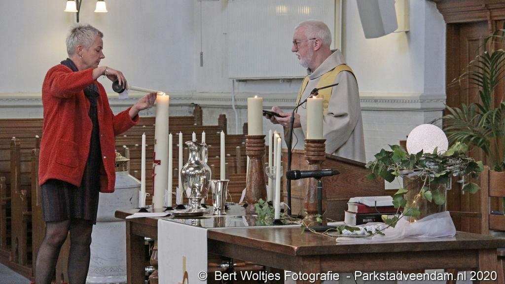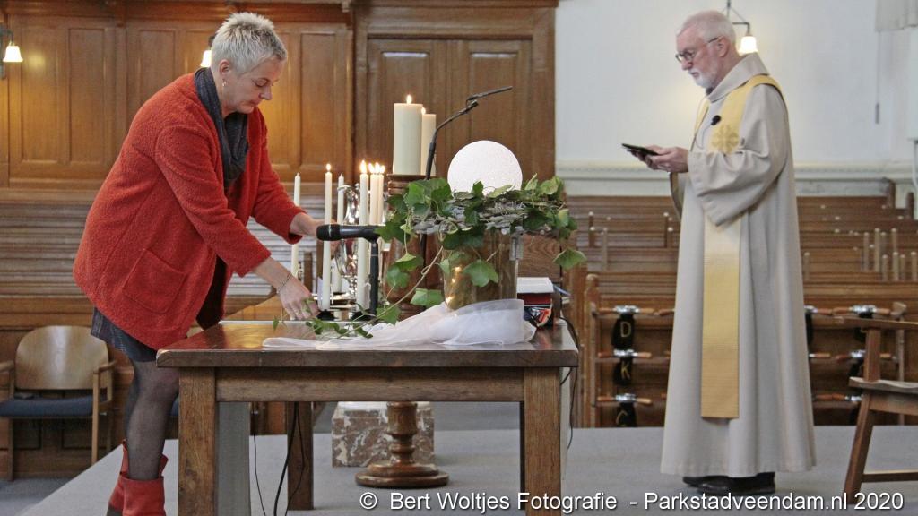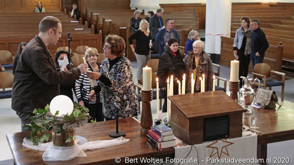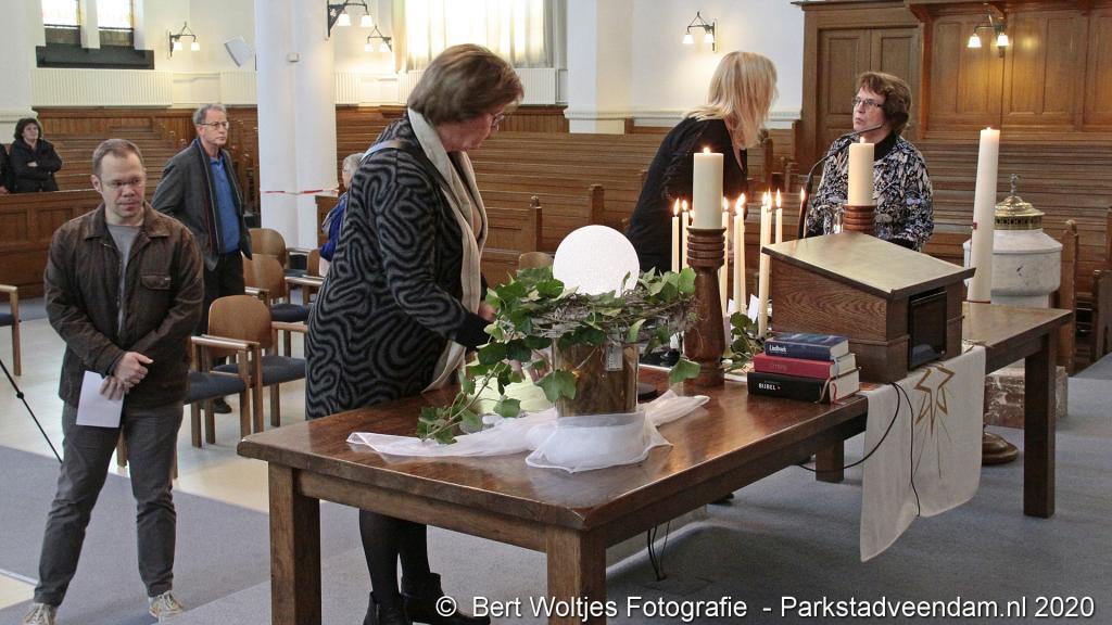 Tijdens deze kerkdienst die ook online te volgen was werden 12 kaarsen ontstoken. De nabestaanden kregen na de dienst de kaars en een steentje met de naam erop mee. Voorganger was Ds. Marien Grashoff met muzikale begeleiding door organist Dirk Swama.