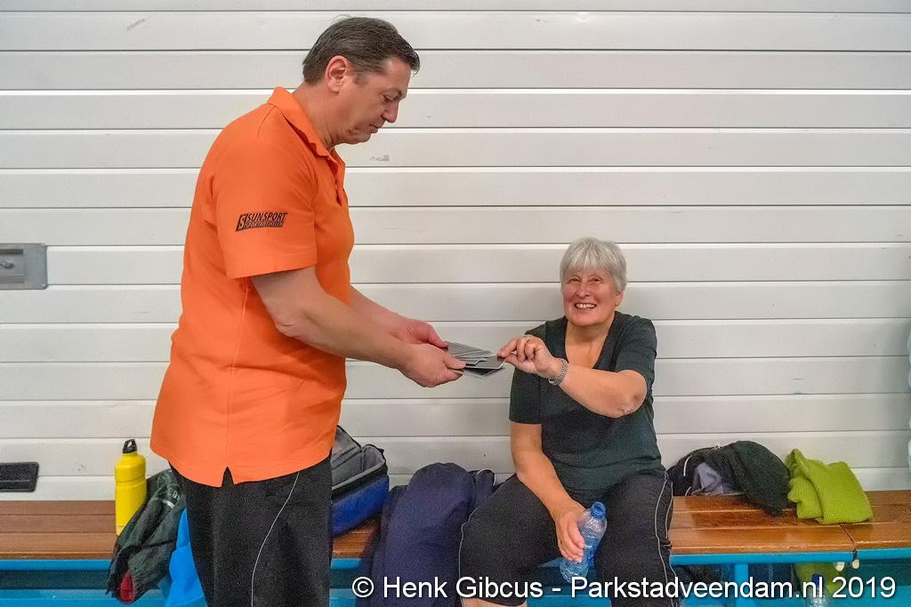 Marty, een van de dames van de vrijdagmiddag: “De gezelligheid met elkaar en het bewegen dat goed voor me is en bovendien nog leuk ook. Wat wil je nog meer? Na afloop heb je wel een natte rug hoor!”