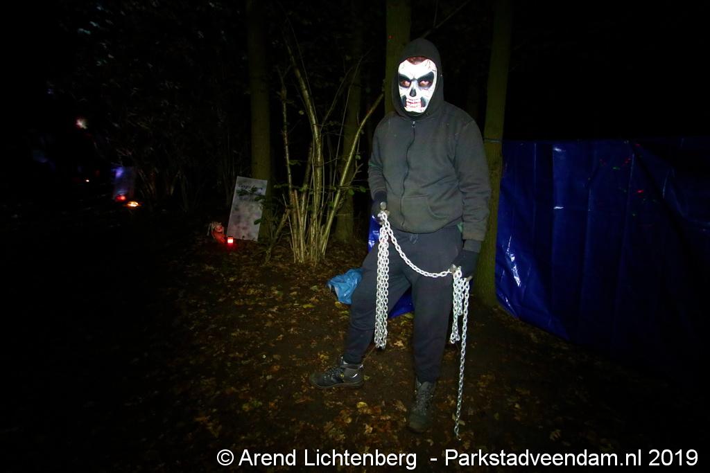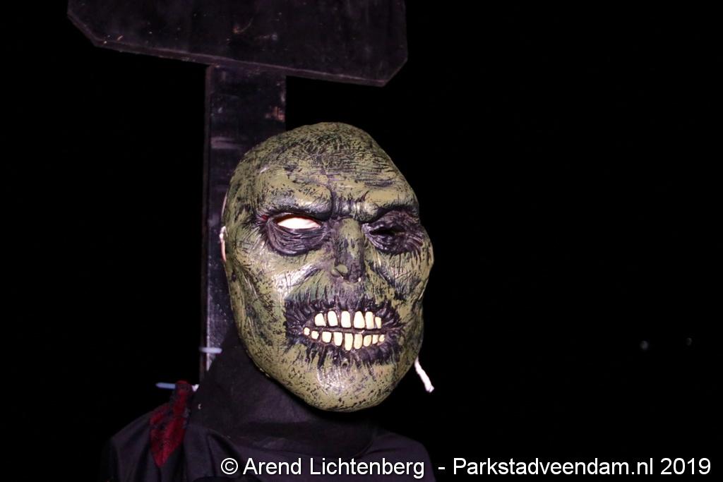 Voor de 4e keer werd in recreatiepark Borgerswold een spooktocht gehouden. Een gruwelijke route van 5 km. met ruim 70 spoken die de 400 deelnemers flink op de hielen zaten met o.a. een kettingzaag en afgehakte ledematen. Ook wethouder Henk Jan Schmaal trok de stoute schoenen aan en liet zich niet gek maken door de vele monsters.