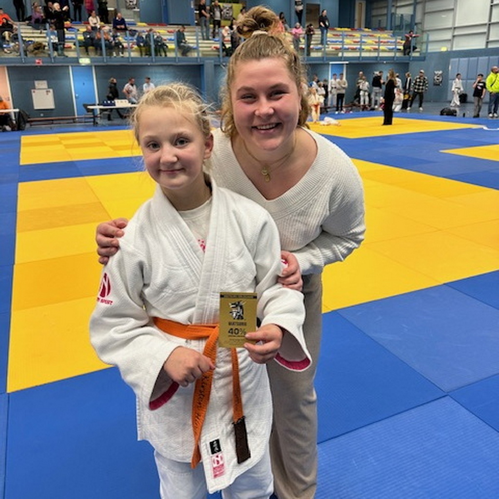 De zondag ging vroeg van start voor middenbouw 5 turnsters Eline Veenstra en Chantal Roossien. Zij vormden dit keer een team met Turnstad uit Groningen. Mede omdat hun teamgenootje Eva van der Meulen door een blessure niet mee kon doen. Het team werd derde en daarvoor ontvingen ze de bronzen medaille. Een mooie afsluiting van hun seizoen.