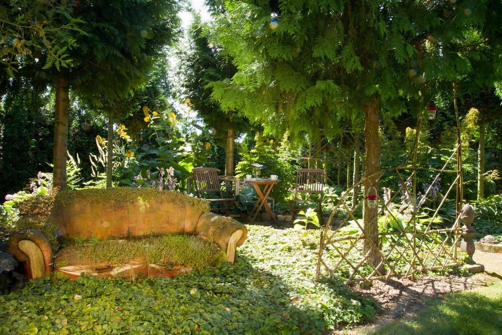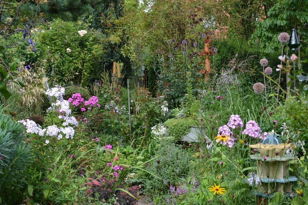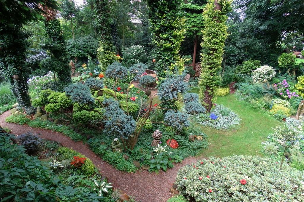 En wat is het leuk om als tuinliefhebber bij gelijkgestemden te kijken en ervaringen uit te wisselen. Zo van: doen de floxen het dit jaar bij jullie ook zo goed? Of wat geuren jullie rozen heerlijk, zeg. Komt zeker door dat regenbuitje van net… Of wat een uitbundige bloesem, dat belooft wat dit jaar! n sommige tuinen wordt het groen afgewisseld met kunst. Dit geeft soms verrassende combinaties. In sommige Duitse tuinen is de decoratie soms even belangrijk als het groen. Jannie: “Toch zie je daar langzaamaan verandering in optreden. Het gaat tenslotte om de bomen, bloemen, struiken en ander bloeiend leven.” Smaken verschillen. Dat merkt ook de keuringscommissie die tuinen beoordeelt of de tuin de criteria kan doorstaan. Dit gebeurt bij de aanmelding, maar ook tussentijds, 3-jaarlijks. De commissie bestaat altijd uit 3 leden en is een mix van Duitsers en Nederlanders. Beoordelingscriteria zijn: gastvriendelijkheid, staat van onderhoud, plantenkennis van de eigenaar/beheerder, belevingswaarde. Dit laatste punt weegt het zwaarste. Net als bij de beoordeling van restaurants (Michelin sterren) vraagt men zich af of het een uur omrijden waard is! Er vallen jaarlijks tuinen af en er komen weer bij. Momenteel zijn er een kleine 150 tuineigenaren aangesloten, redelijk verdeeld over beide gewesten.