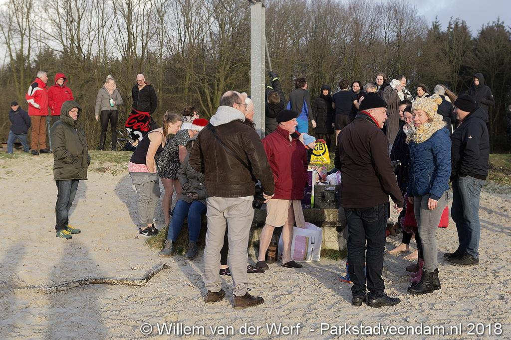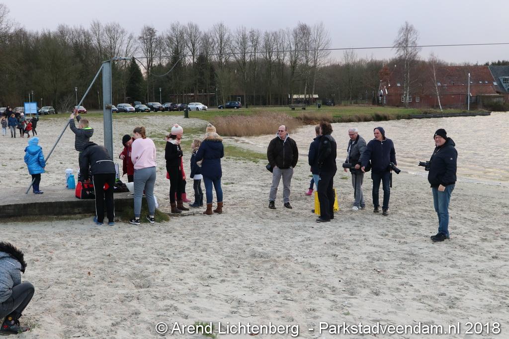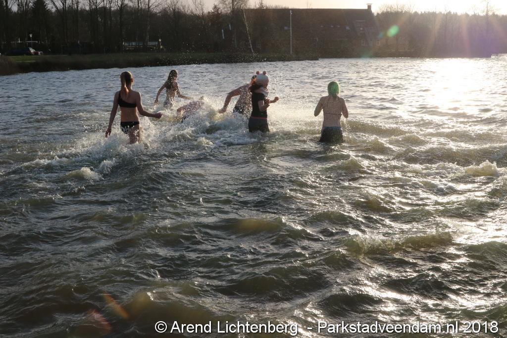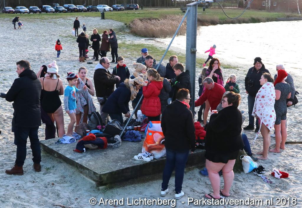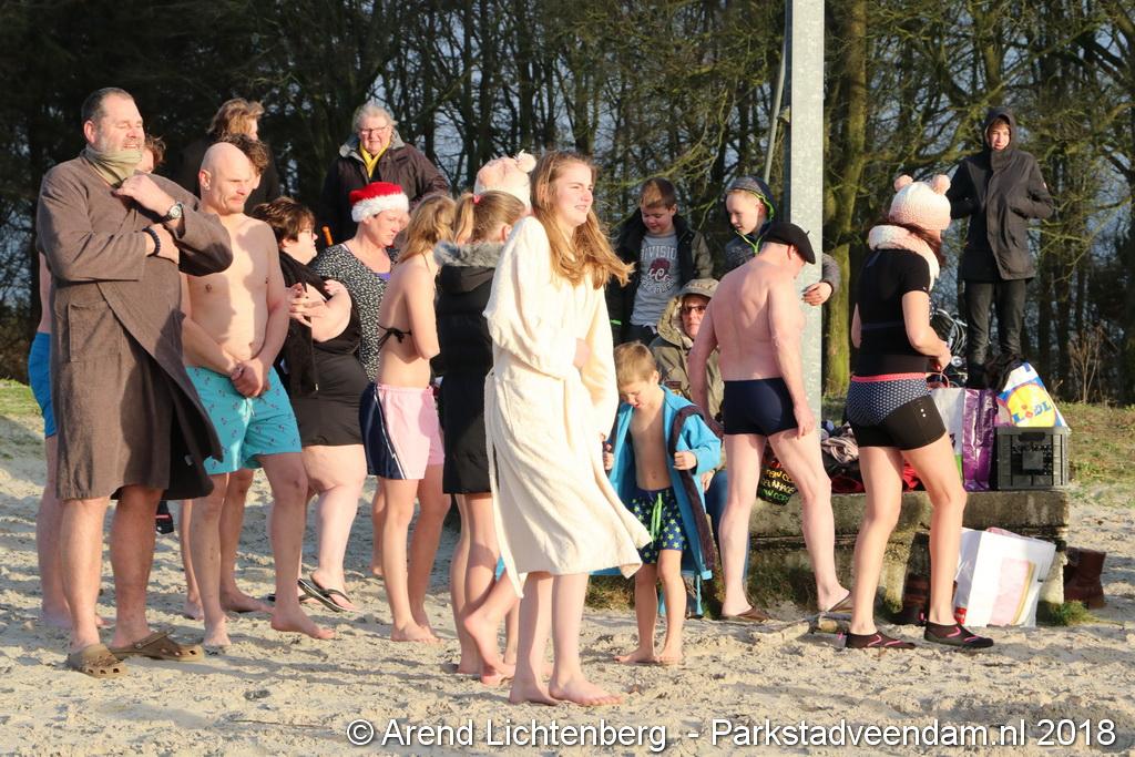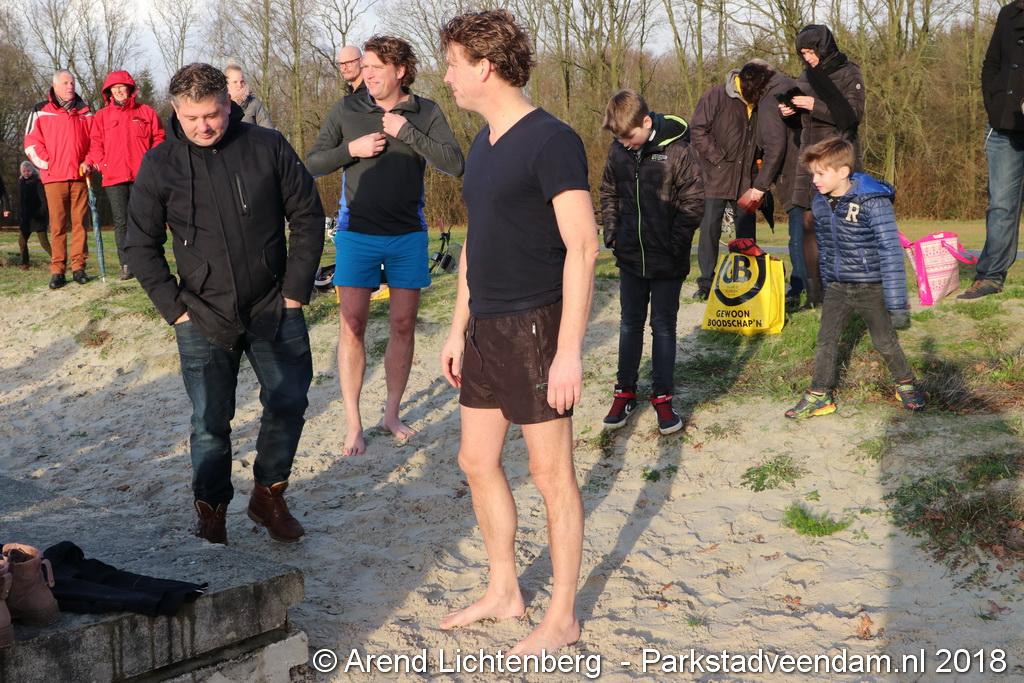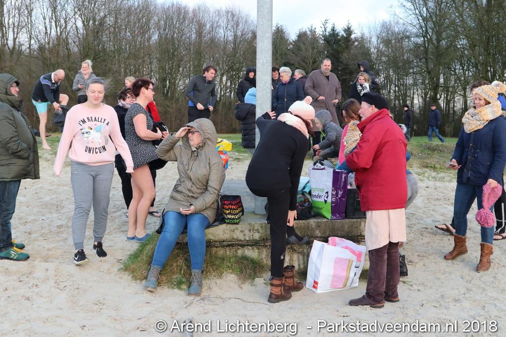 Met een buitentemperatuur van 7 graden kwamen elf personen naar Borgerswold om daadwerkelijk, onder aanmoediging van ongeveer 20 toeschouwers, een duik in het koude water te nemen.