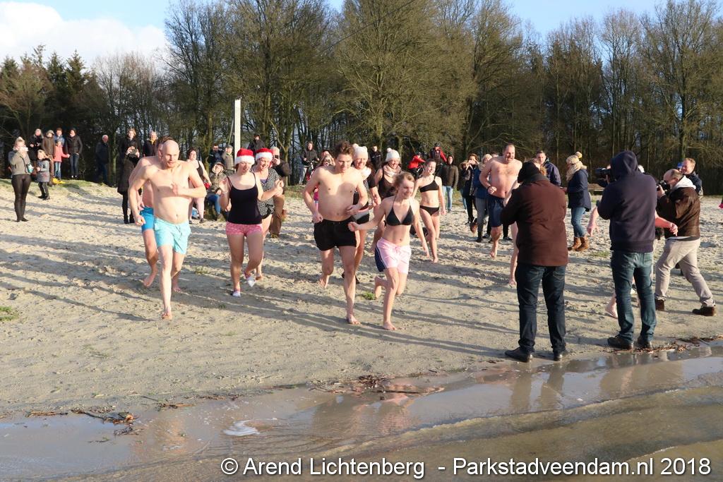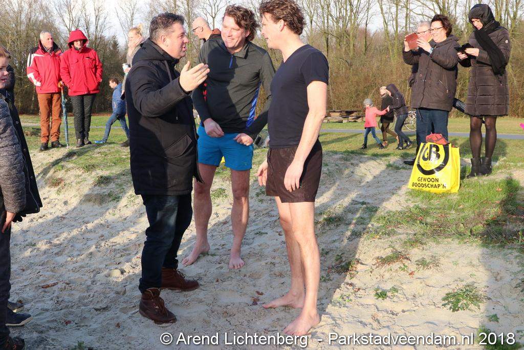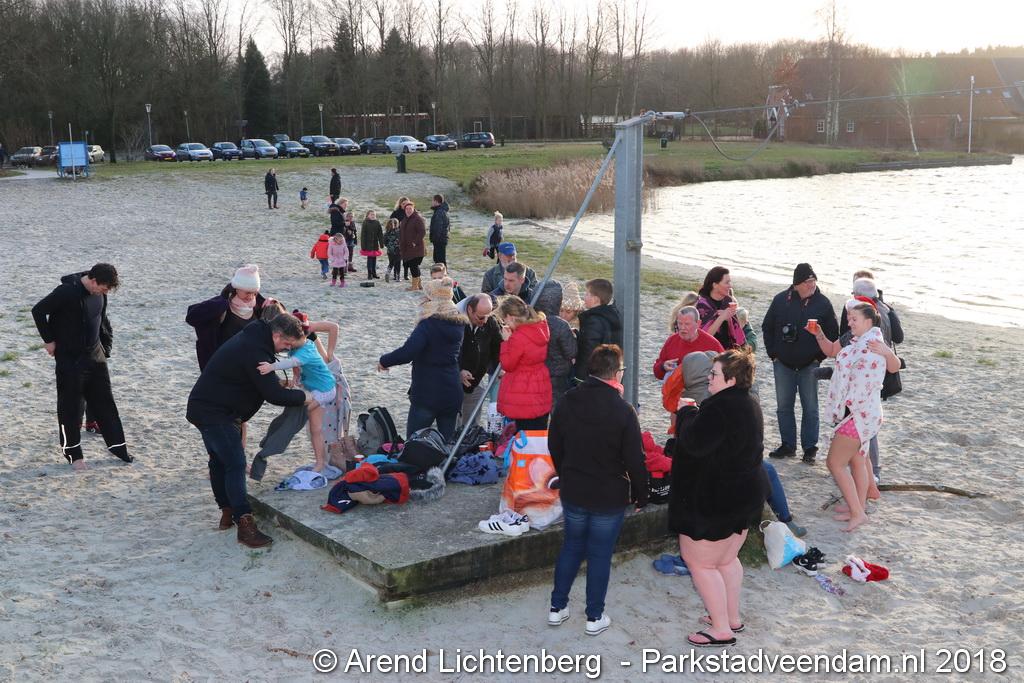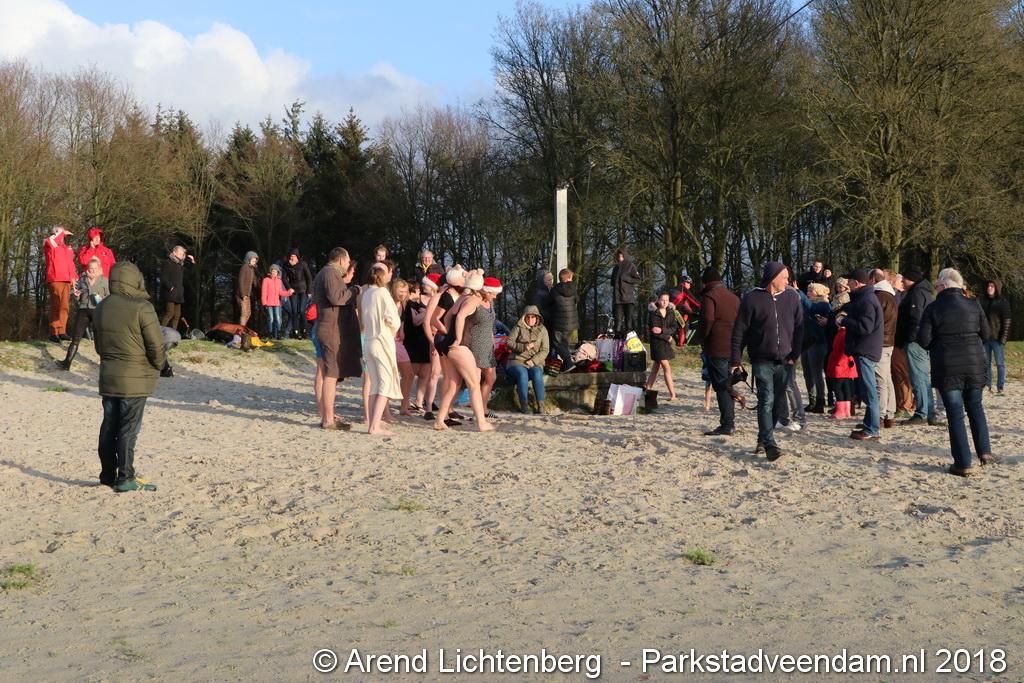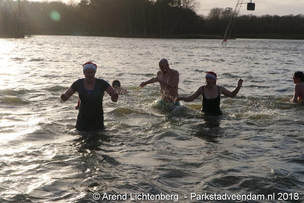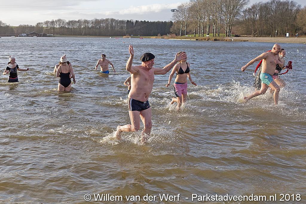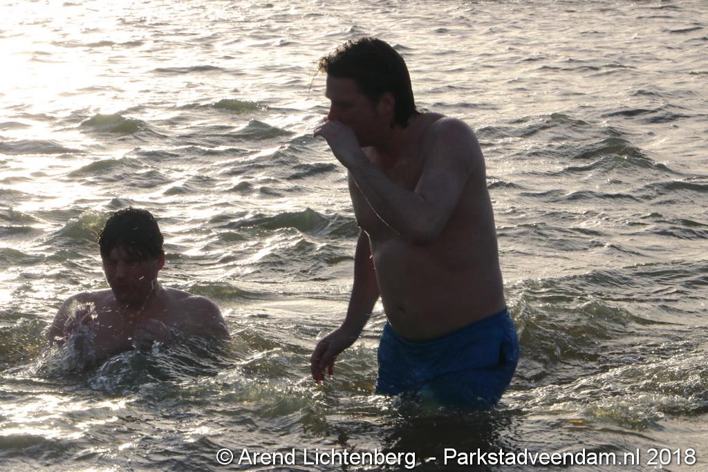 Met een buitentemperatuur van 7 graden kwamen elf personen naar Borgerswold om daadwerkelijk, onder aanmoediging van ongeveer 20 toeschouwers, een duik in het koude water te nemen.