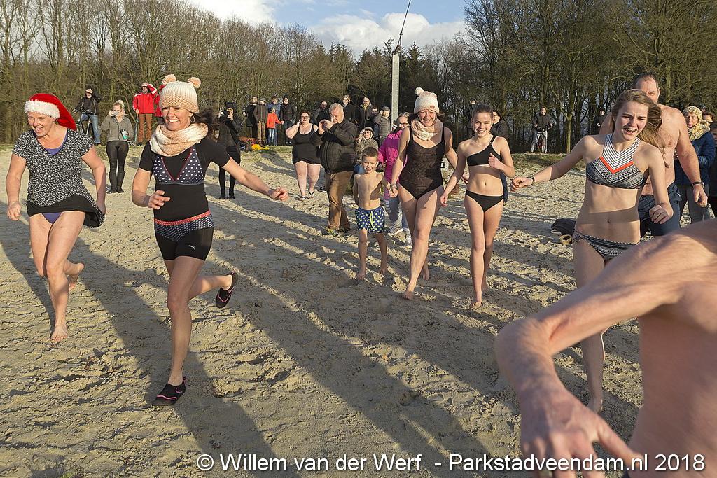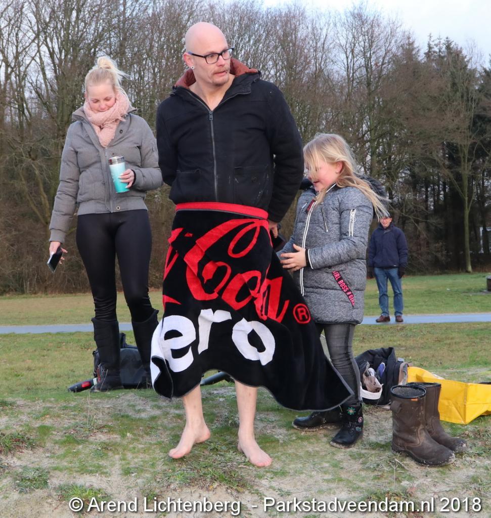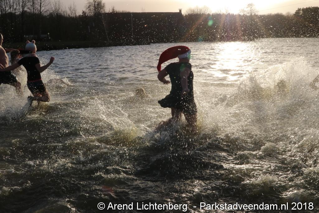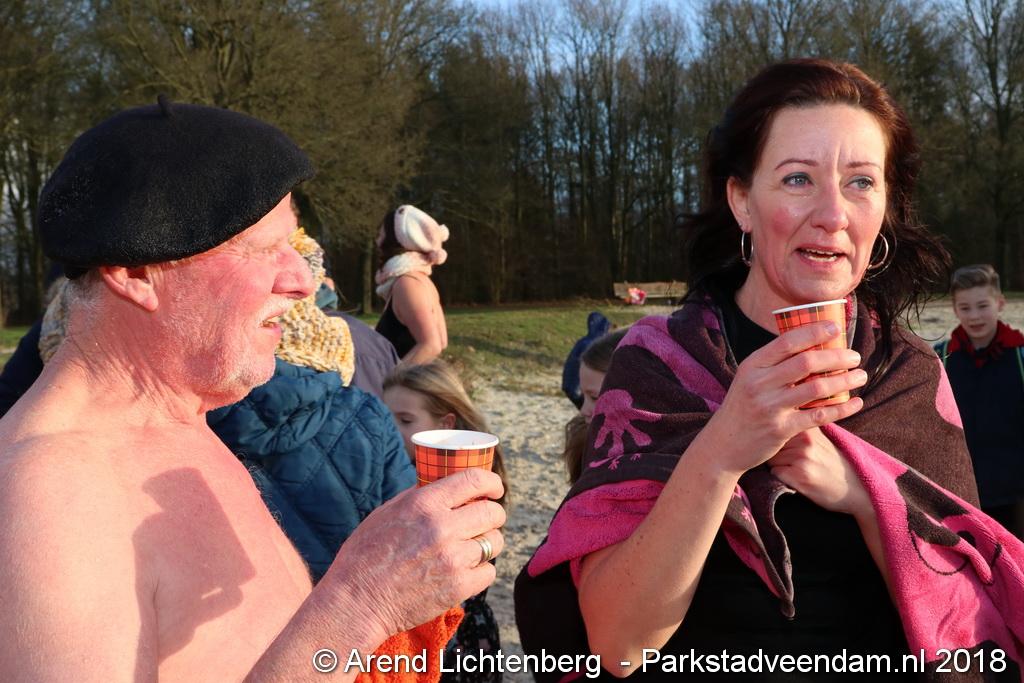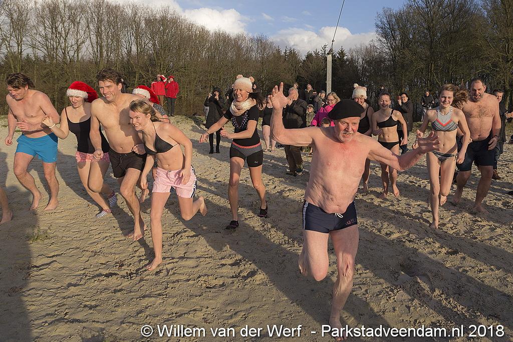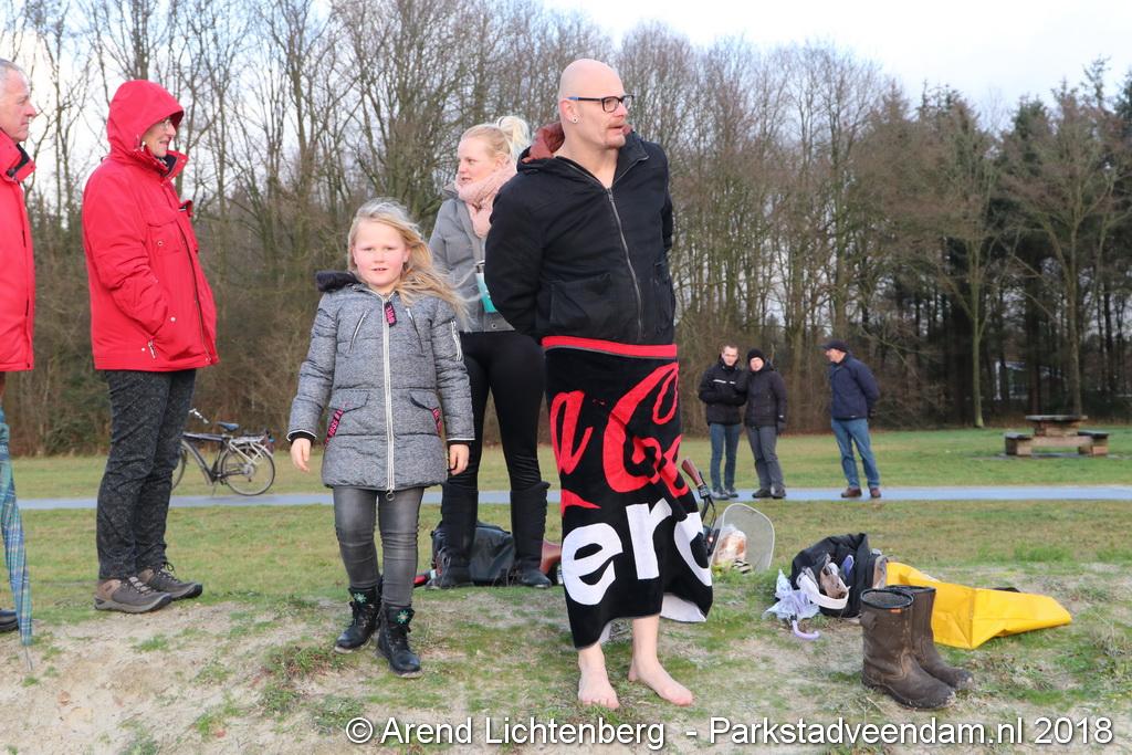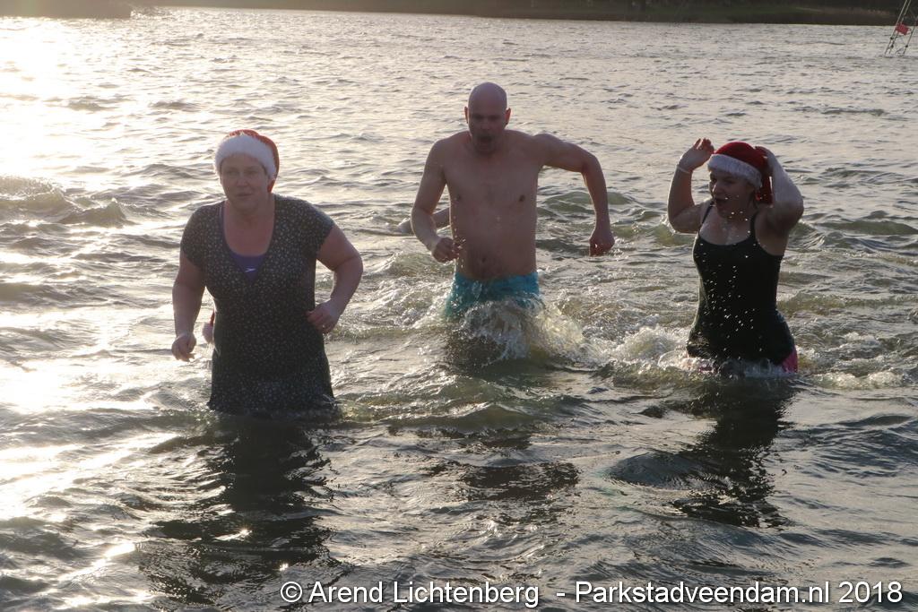 Met een buitentemperatuur van 7 graden kwamen elf personen naar Borgerswold om daadwerkelijk, onder aanmoediging van ongeveer 20 toeschouwers, een duik in het koude water te nemen.