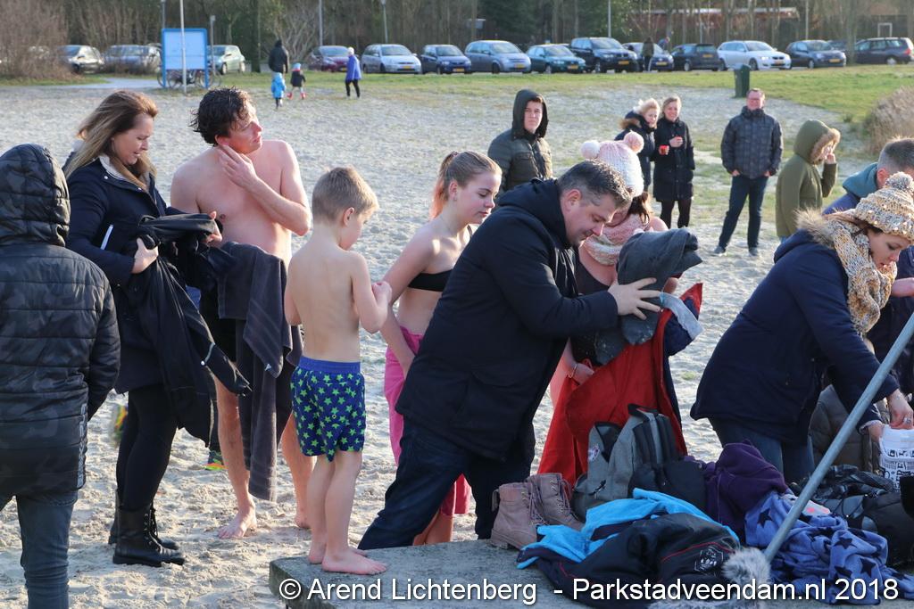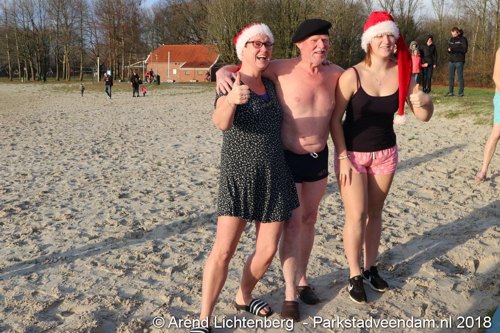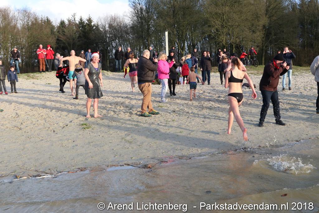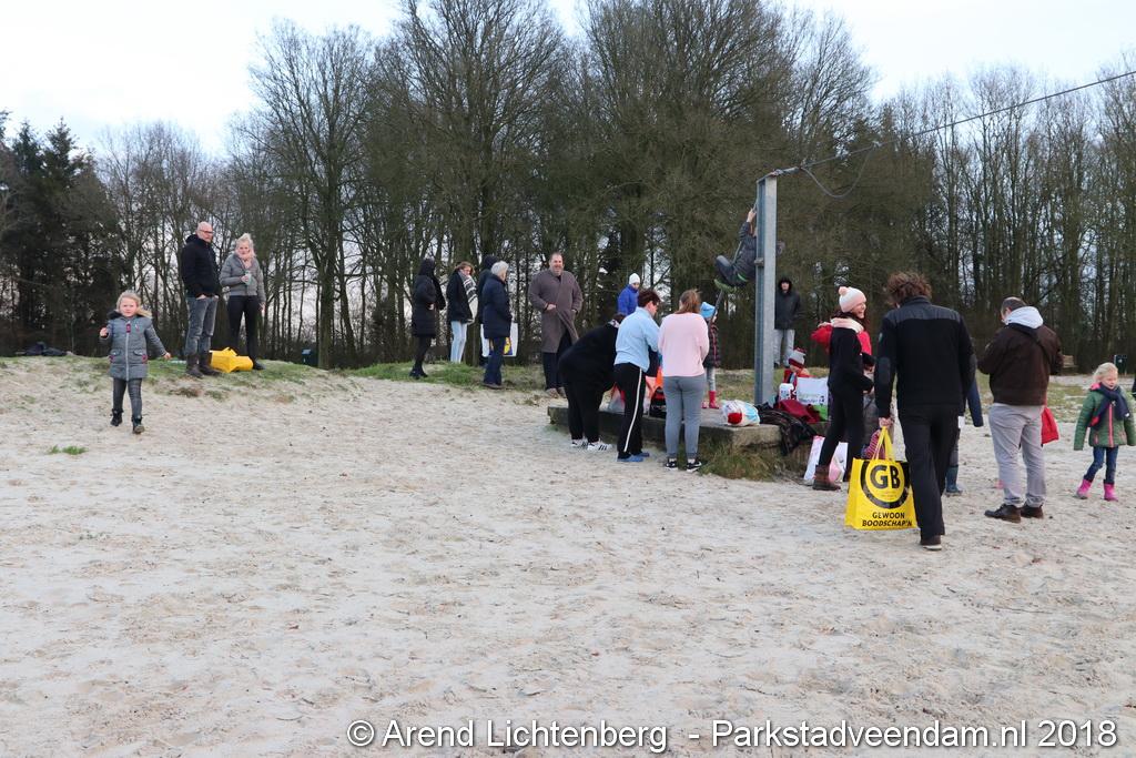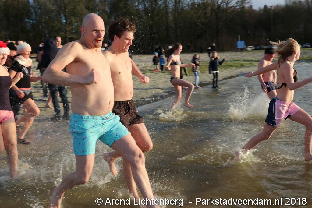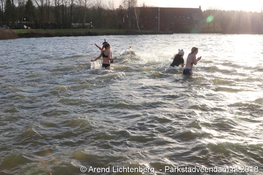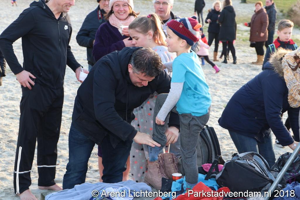 Met een buitentemperatuur van 7 graden kwamen elf personen naar Borgerswold om daadwerkelijk, onder aanmoediging van ongeveer 20 toeschouwers, een duik in het koude water te nemen.