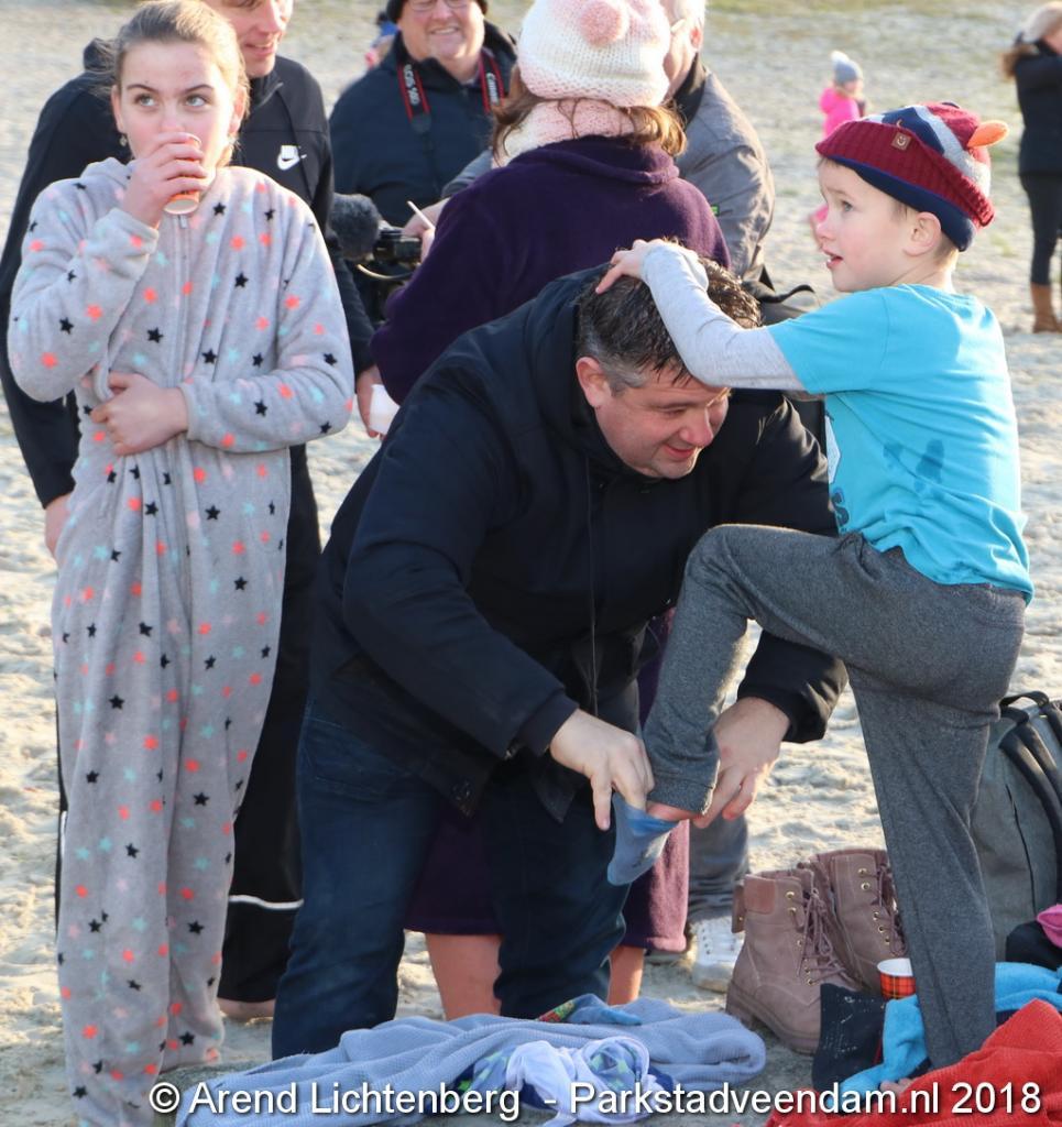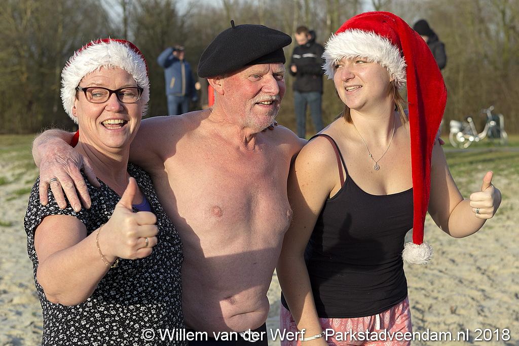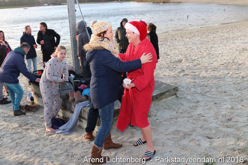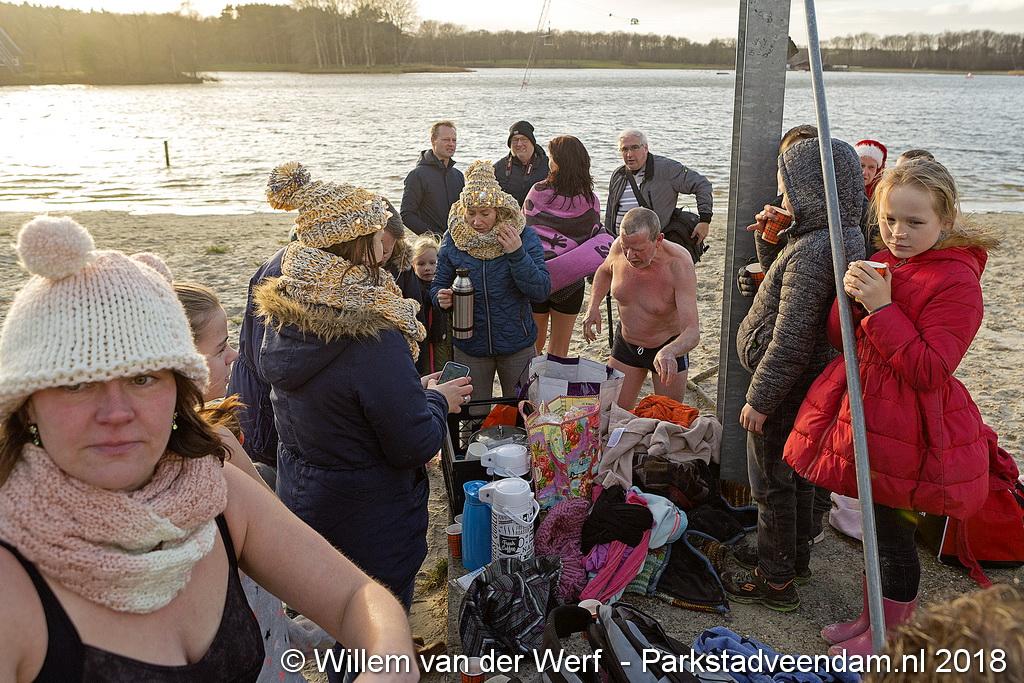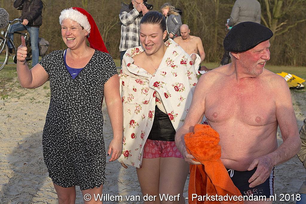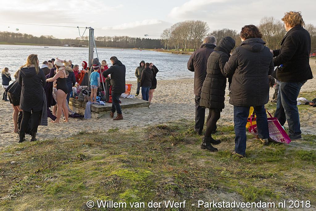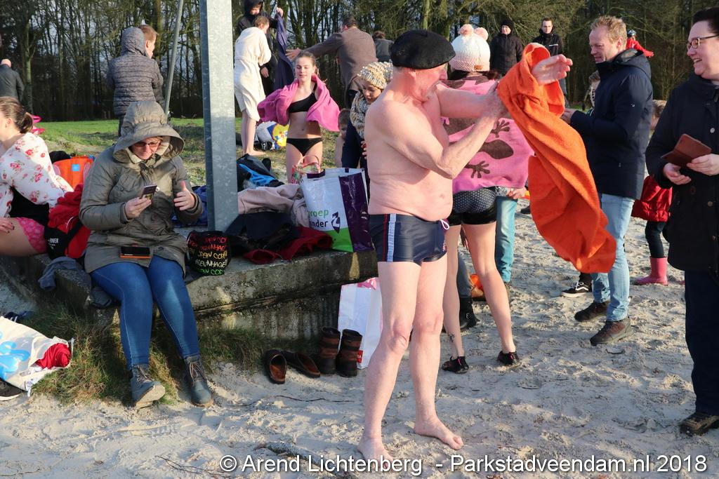 Met een buitentemperatuur van 7 graden kwamen elf personen naar Borgerswold om daadwerkelijk, onder aanmoediging van ongeveer 20 toeschouwers, een duik in het koude water te nemen.