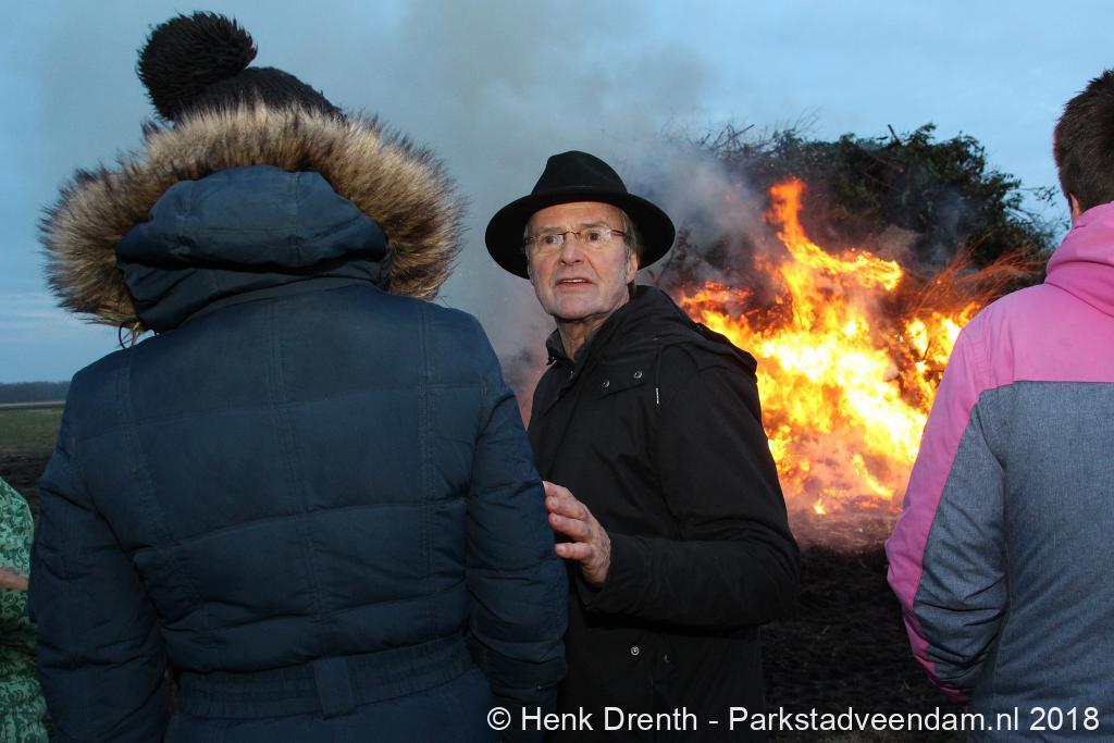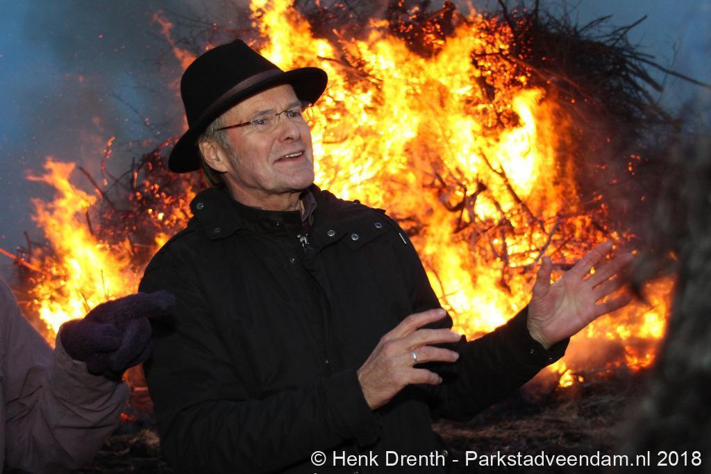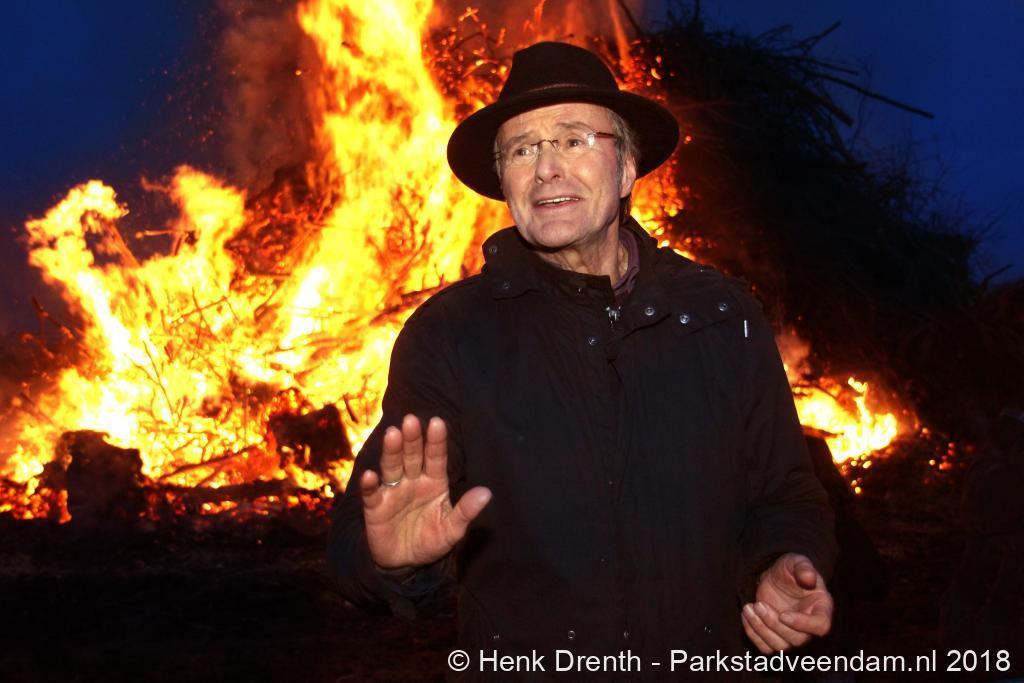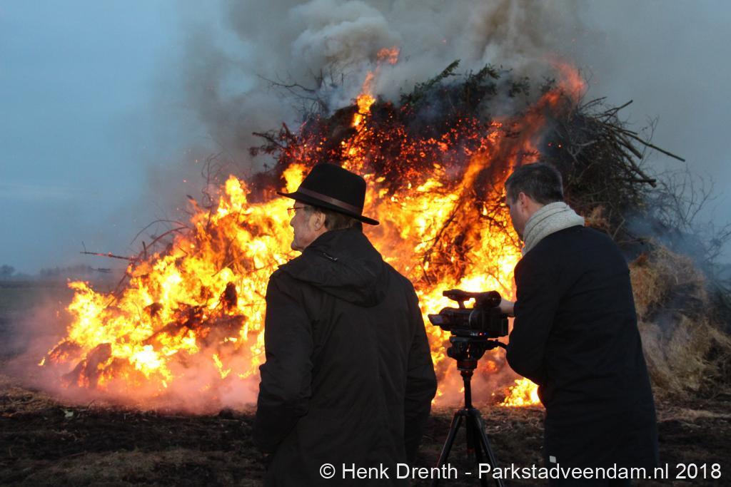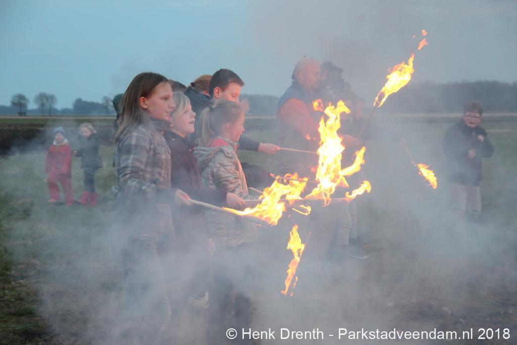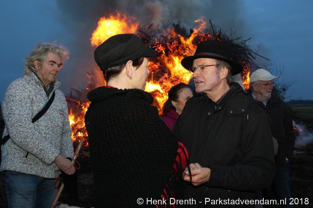 “We zijn met vijf mensen die het dragen. De bezoekers van het paasvuur figureren een beetje mee. Het paasvuur is georganiseerd door Vereniging van Dorpsbelangen Eexterveen”.