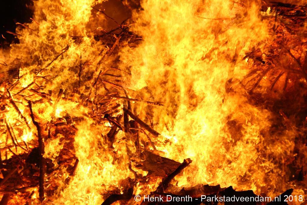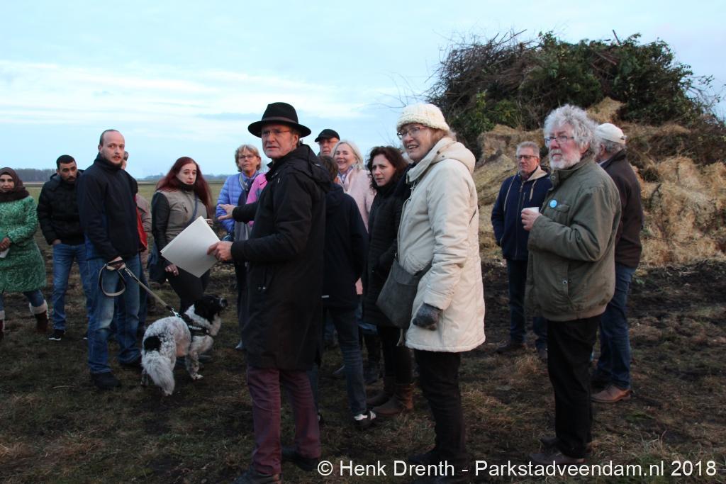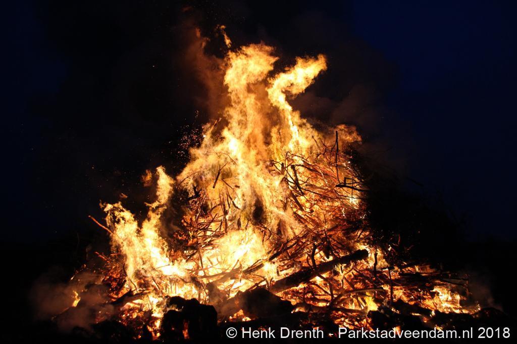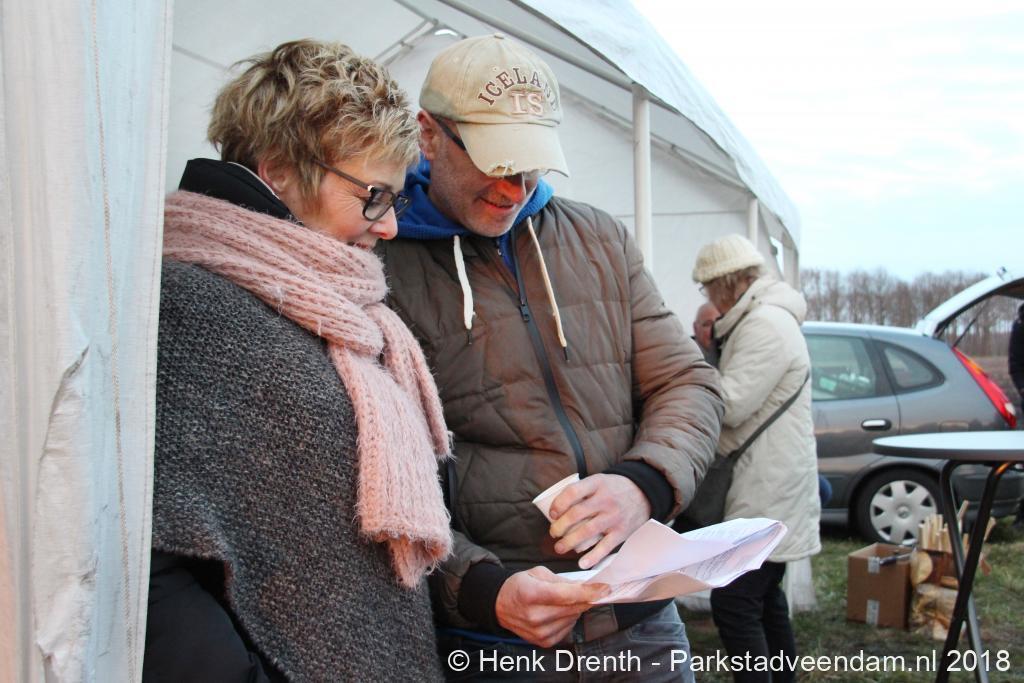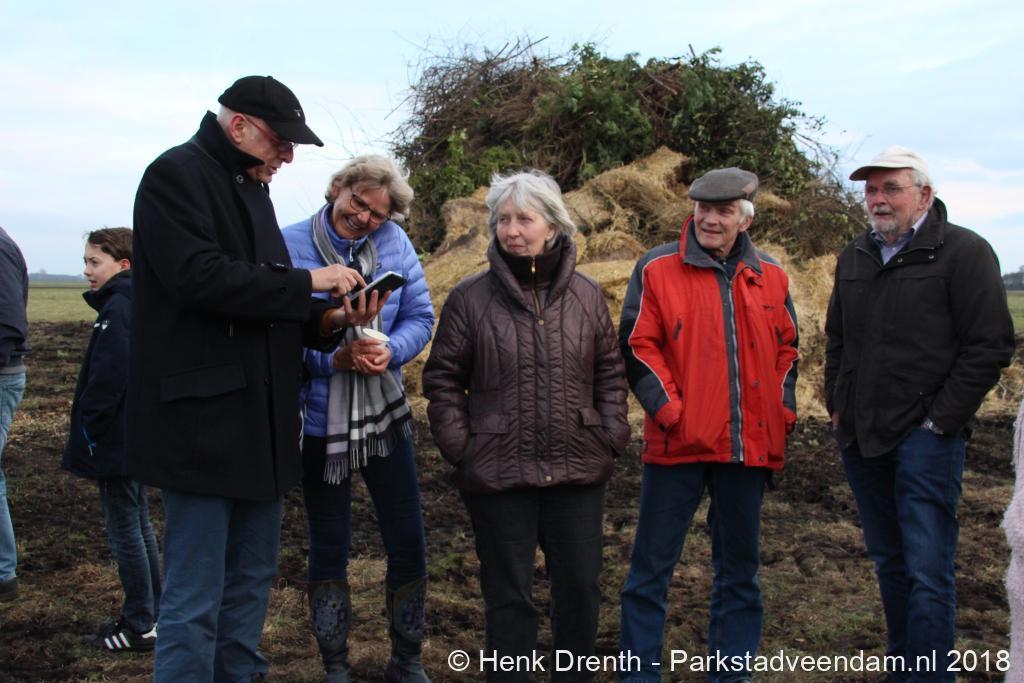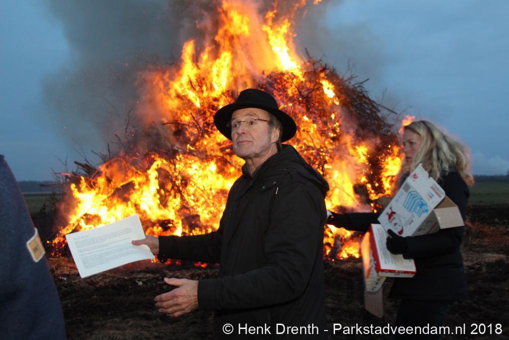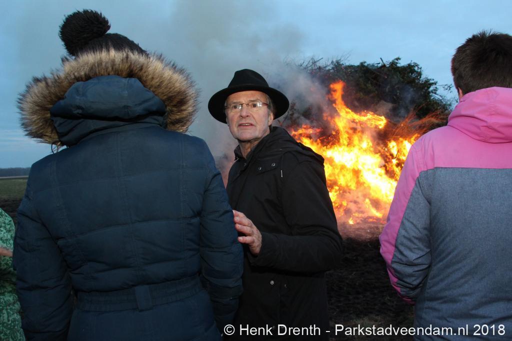 “We zijn met vijf mensen die het dragen. De bezoekers van het paasvuur figureren een beetje mee. Het paasvuur is georganiseerd door Vereniging van Dorpsbelangen Eexterveen”.