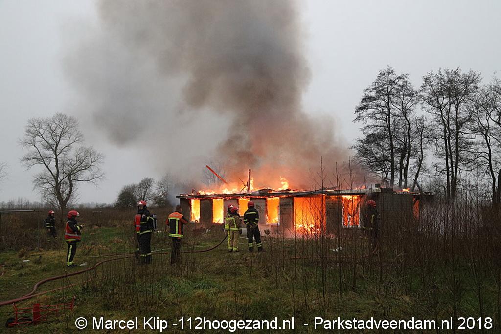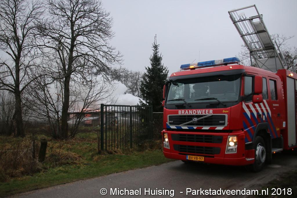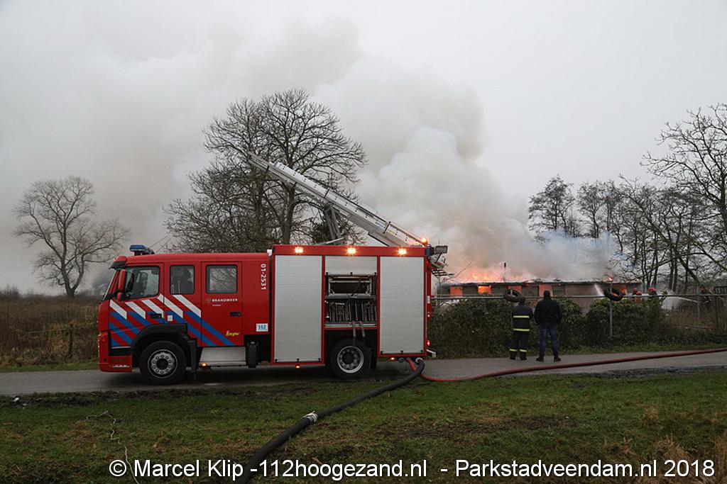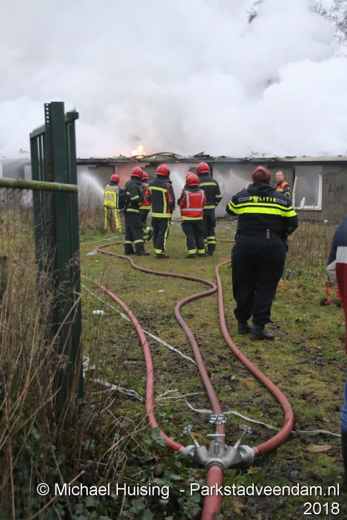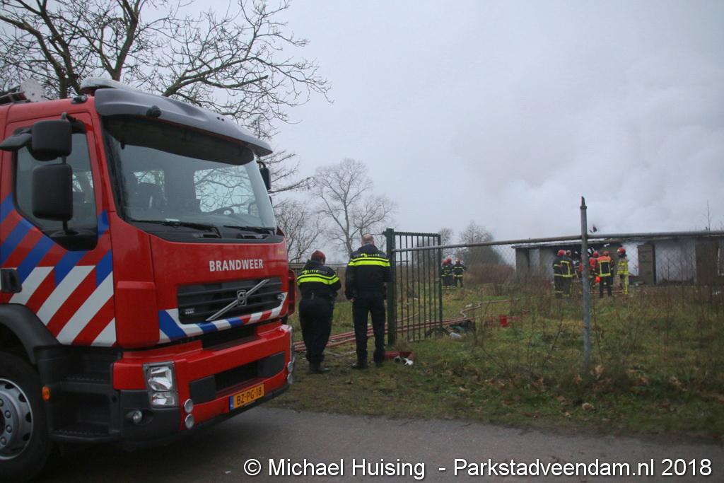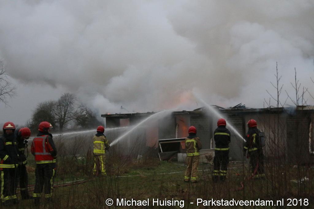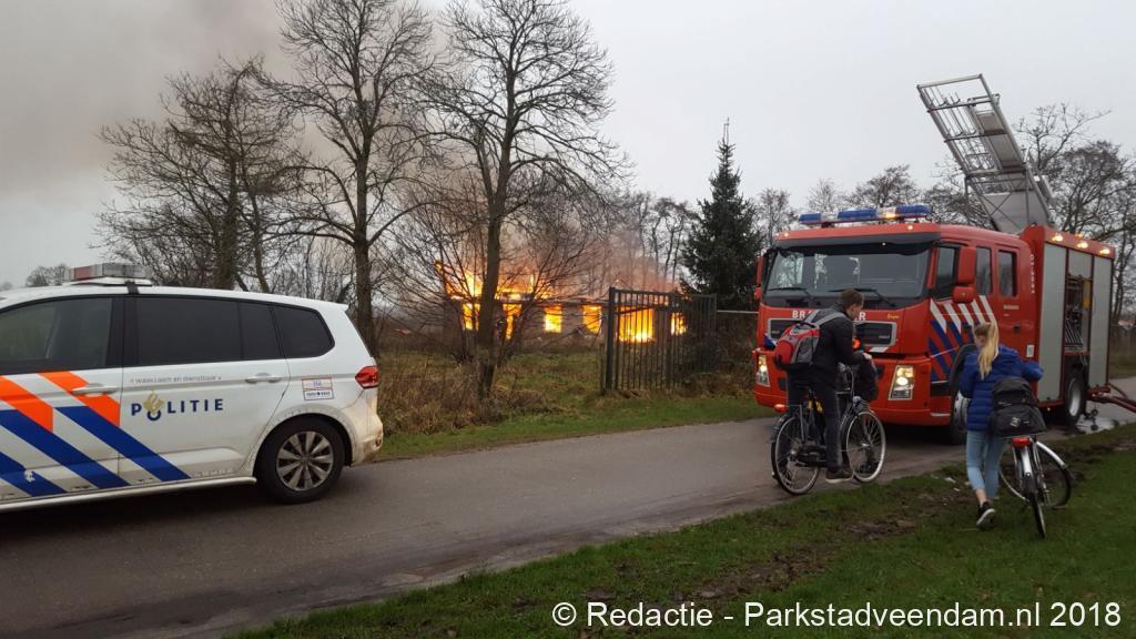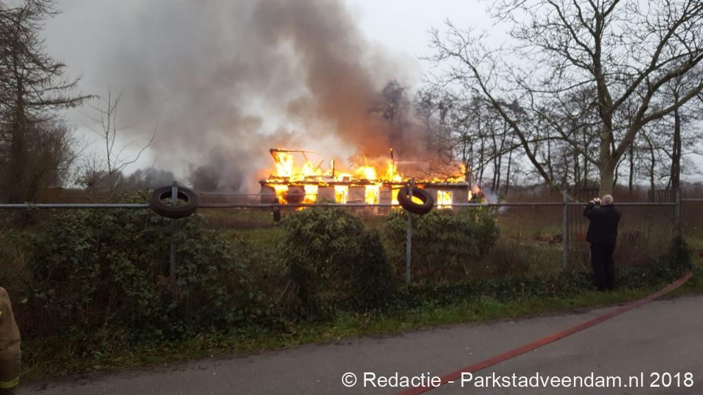 De vervallen schuur kan als verloren worden beschouwd. De brandweer laat de schuur gecontroleerd uitbranden.