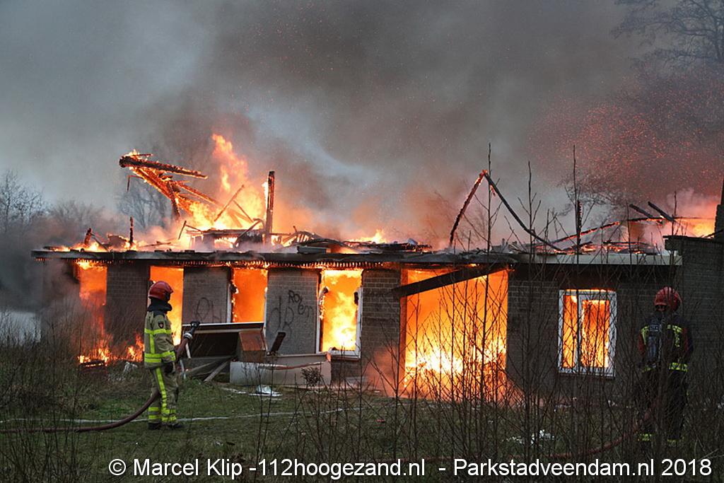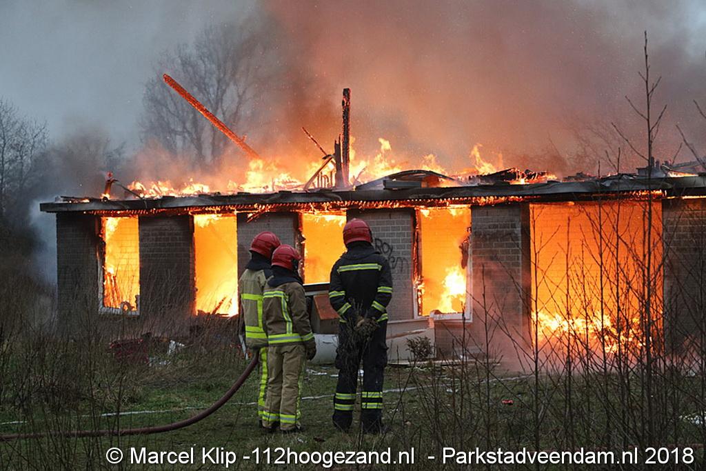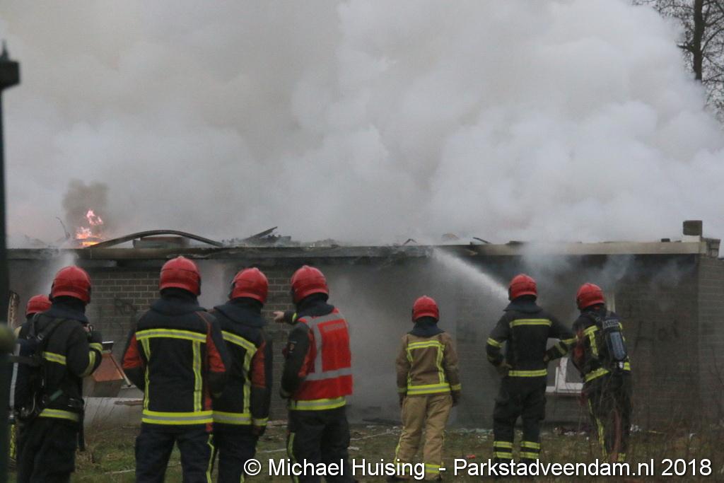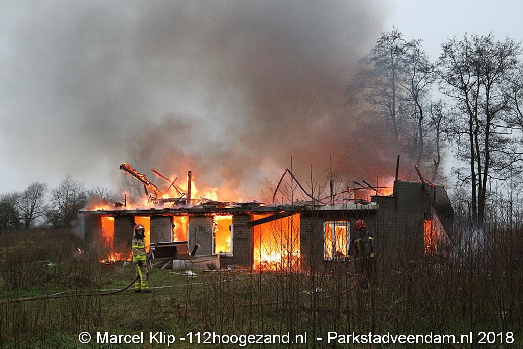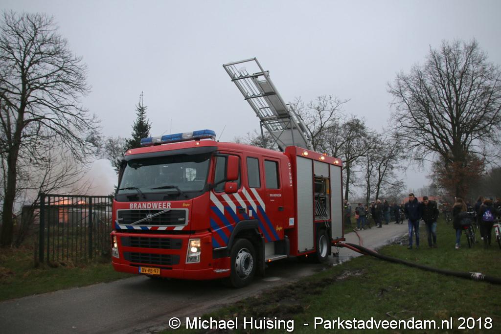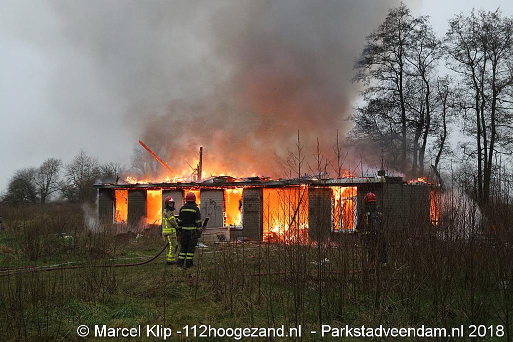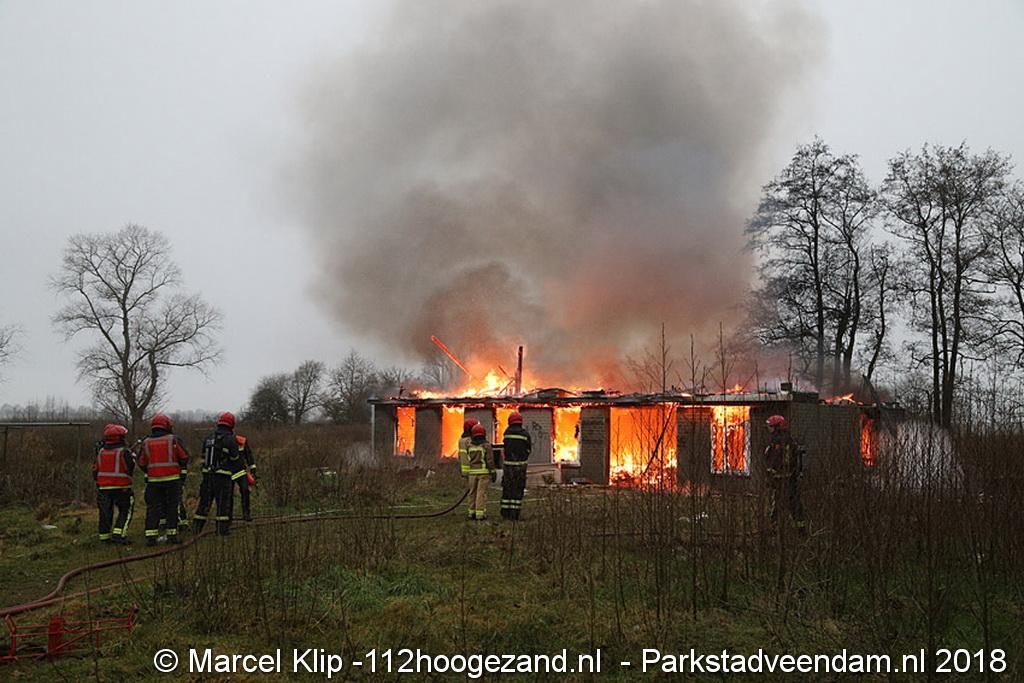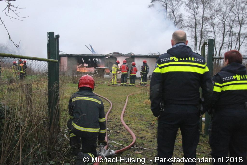 De vervallen schuur kan als verloren worden beschouwd. De brandweer laat de schuur gecontroleerd uitbranden.