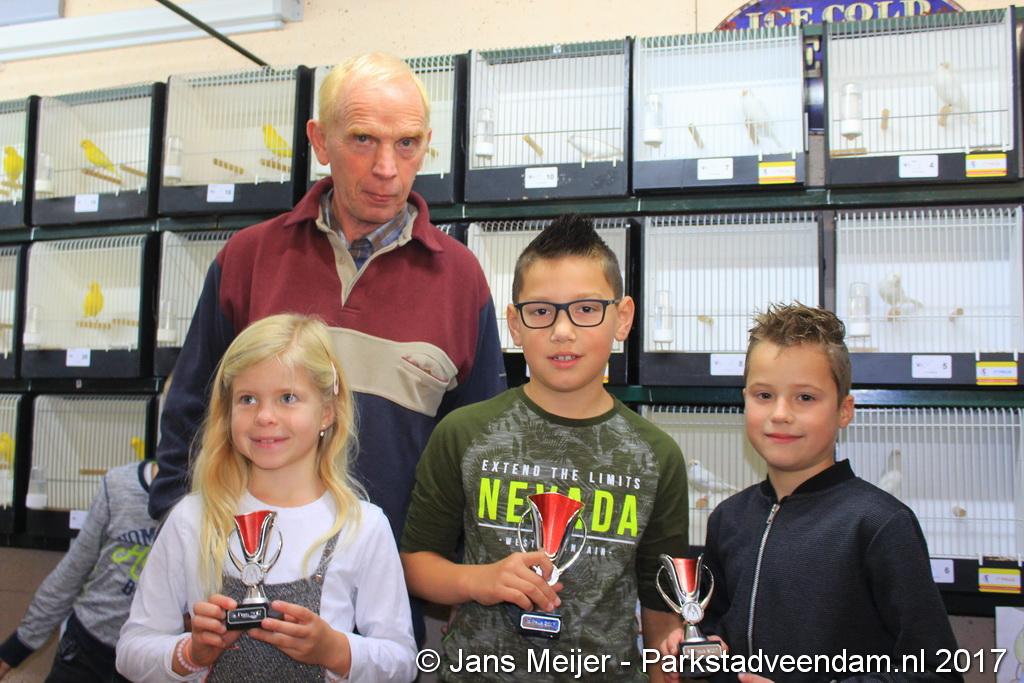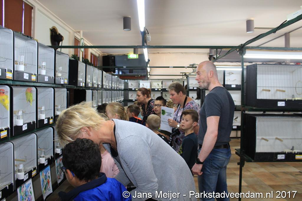 Vrijdagmorgen brachten de leerlingen van de Braskörf uit Veendam op uitnodiging een bezoek aan de vogeltentoonstelling in de Wildervanckhal. De jongens en meisjes kregen daar tekst en uitleg over de vogelsport. Ze mochten de vogels keuren en de mooiste vogel uitkiezen. En dat werd een gepuzzel maar uiteindelijk was nummer 243, een Agapornis Fischgeri groen van de heer Buze uit Heiligerlee als kampioen gekozen.
