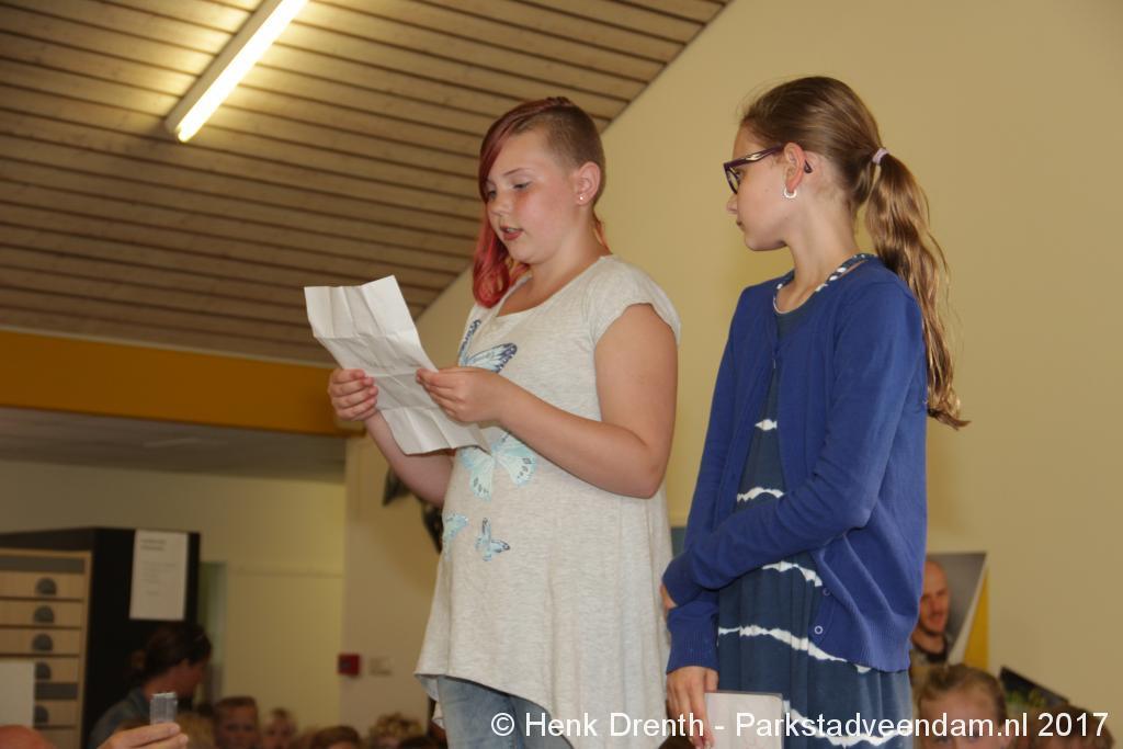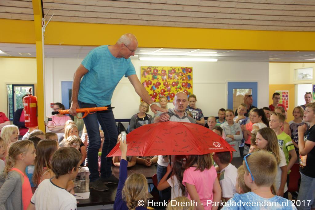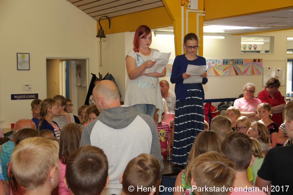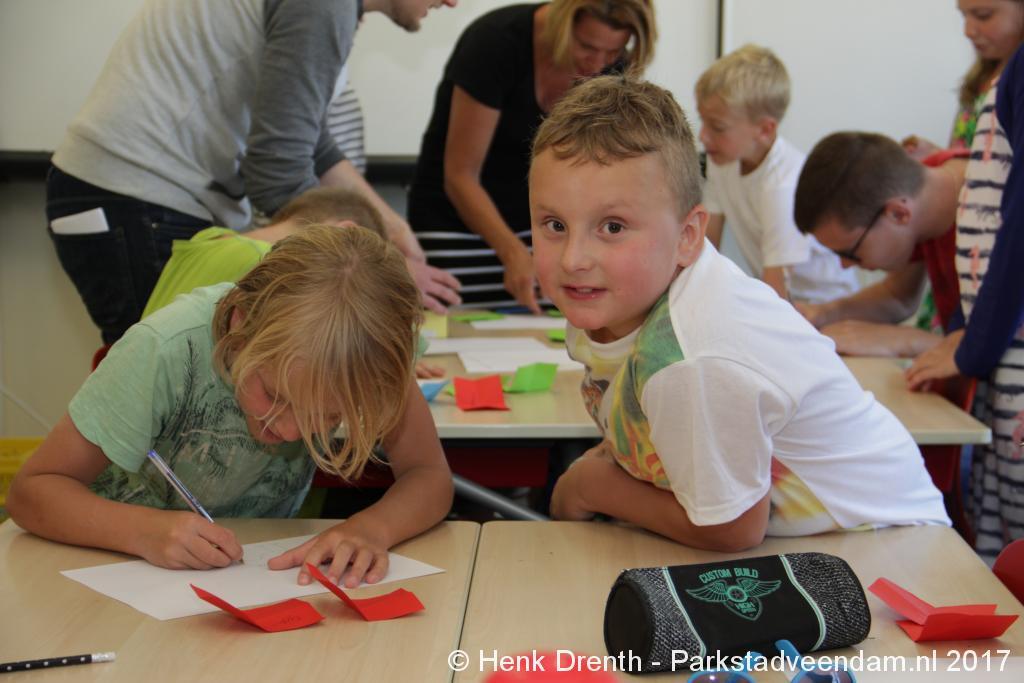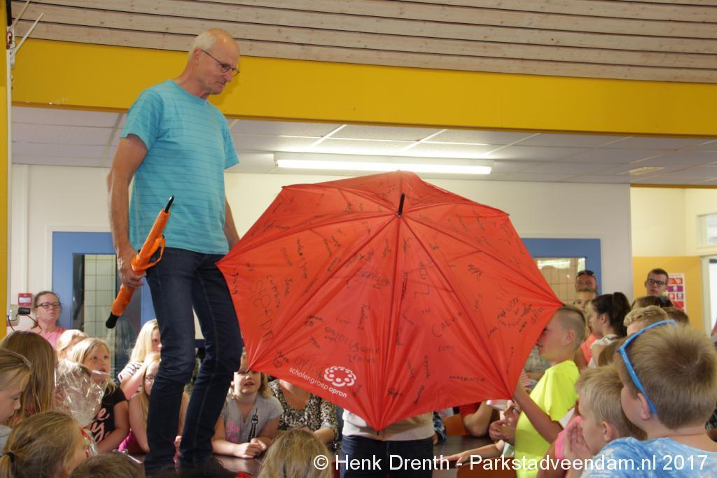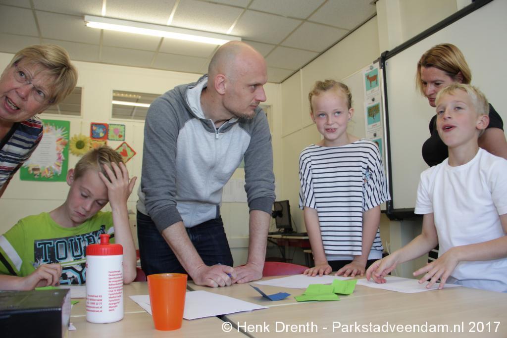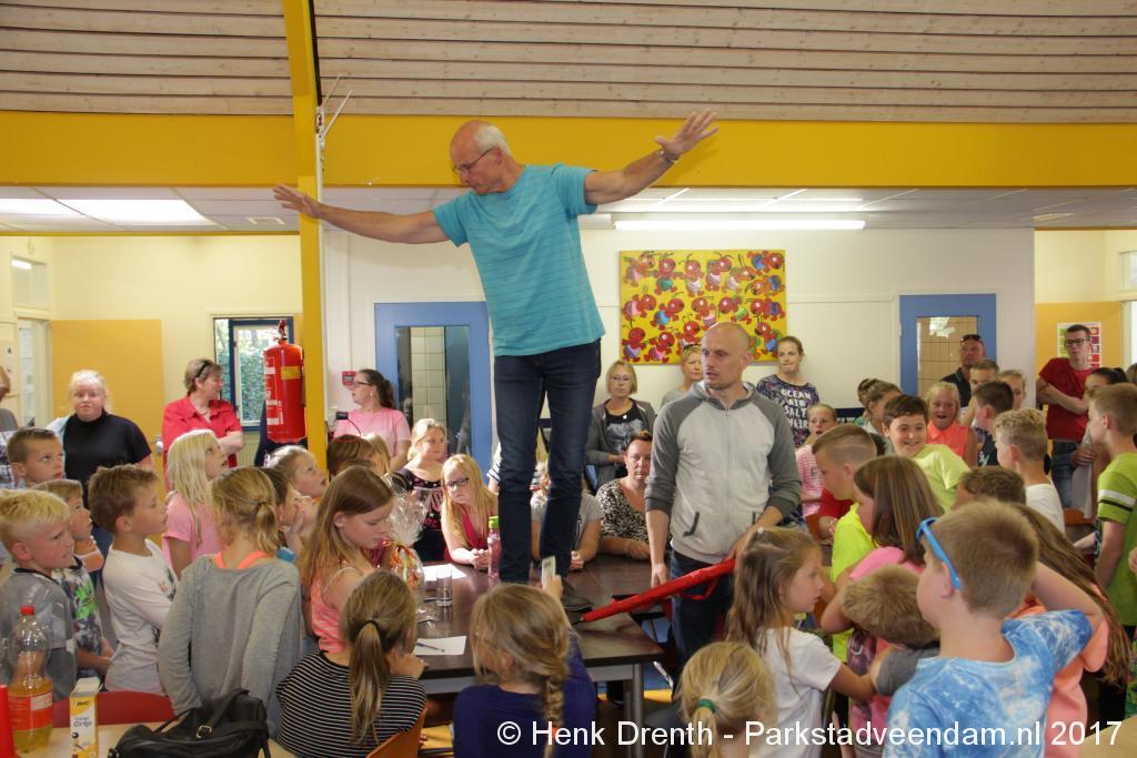Bij het afscheid van schoolschrijver Pieter Koolwijk waren ook de ouders aanwezig. Waarbij zij ook met de spelletjes mee konden doen. De kinderen mochten met een creatieve en speelse invulling op hun eigen school zelf even Schoolschrijver voor hun ouders zijn.