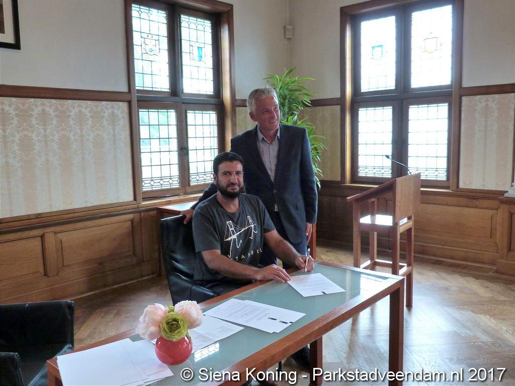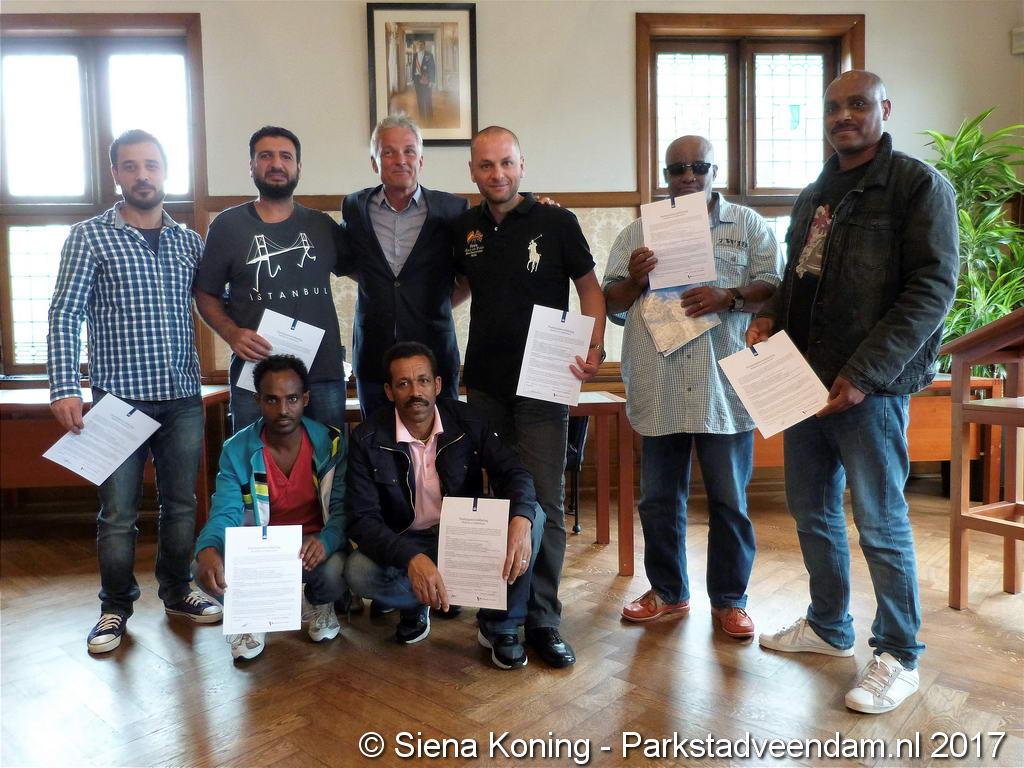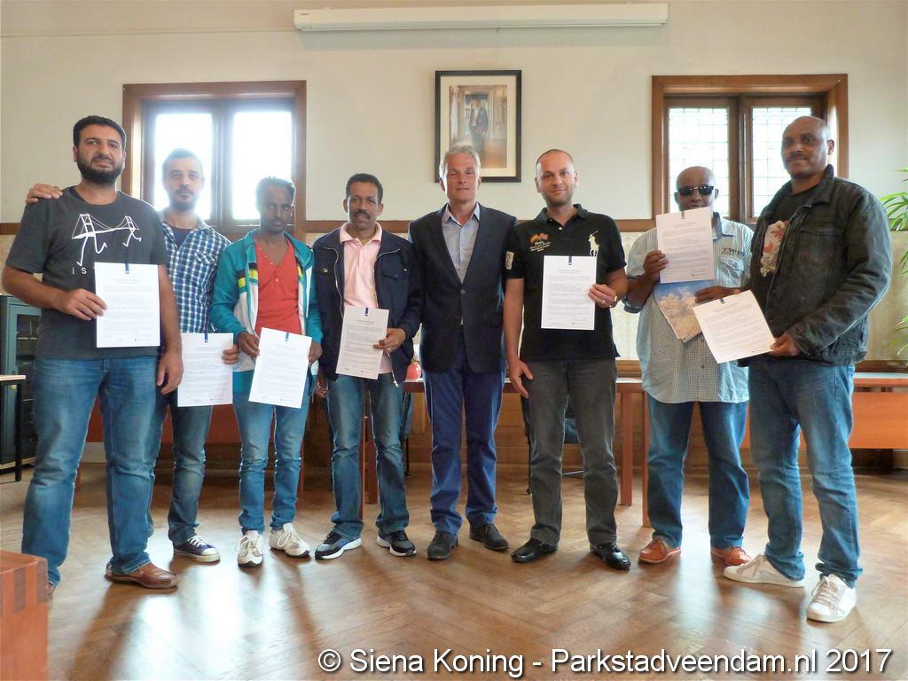 Donderdagmiddag ontving wethouder Jaap Velema 12 statushouders voor de ondertekening van hun participatieverklaring. De ondertekening is voor de  nieuwe Veendammers onderdeel van hun inburgeringstraject.