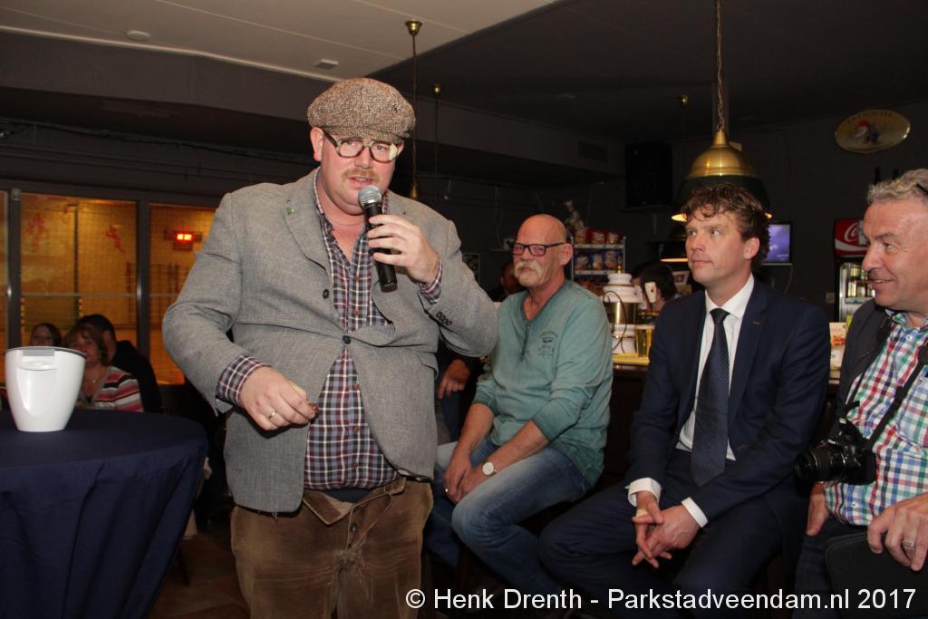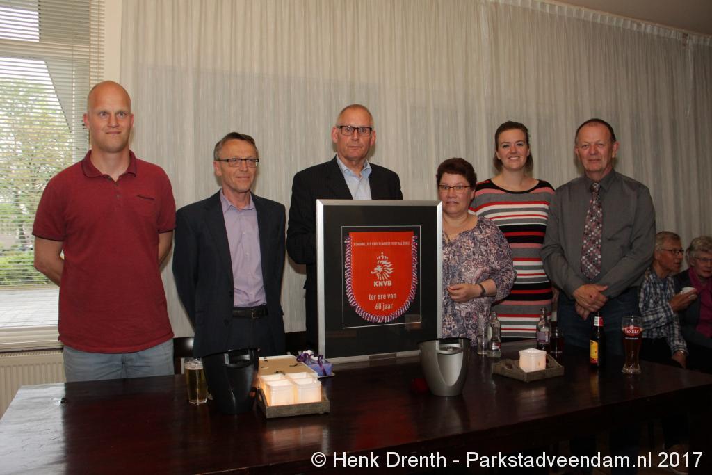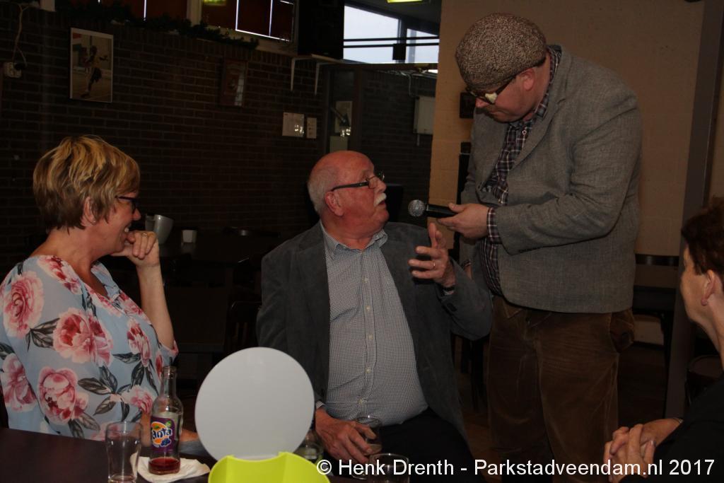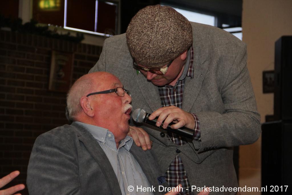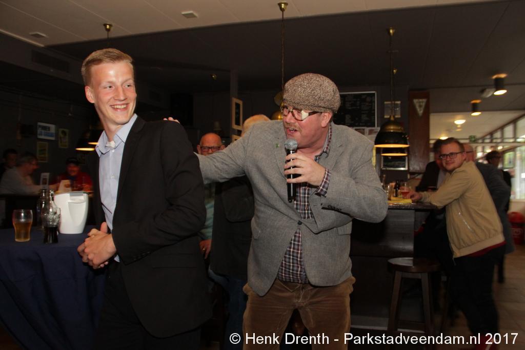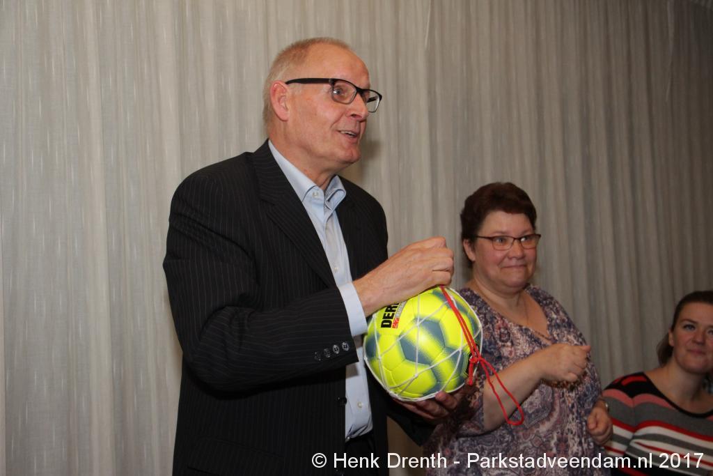 Tijdens de receptie werd aan het hooggeëerd publiek ook een special guest op het 'toneel' gebracht. Dat was niemand minder dan Evert Baptist. En hij ging met ondergetekende van Parkstadveendam ook nog even op de foto. Het was een drukte van belang om het bestuur de handen te schudden. Ik zag namens de KNVB Gerard Bults, voormalig elftalleider van BV Veendam. En namens de gemeente Veendam was wethouder Henk Jan Schmaal aanwezig.