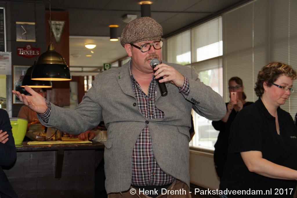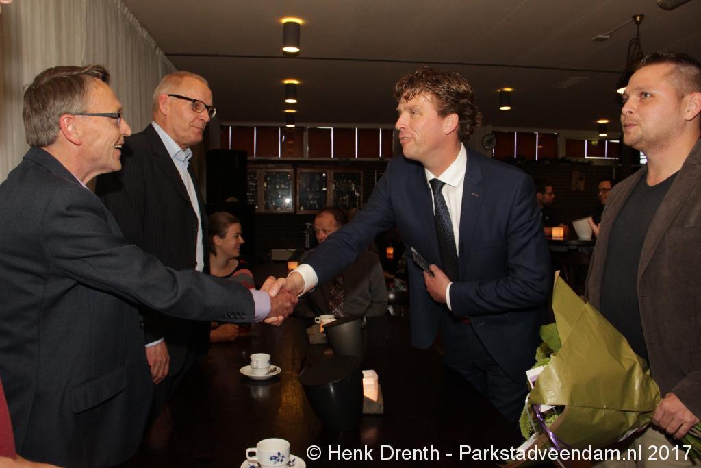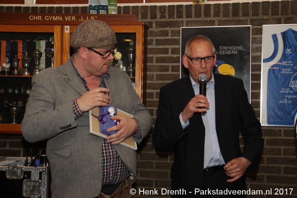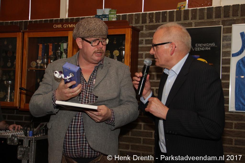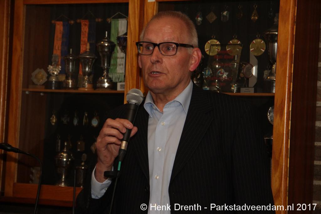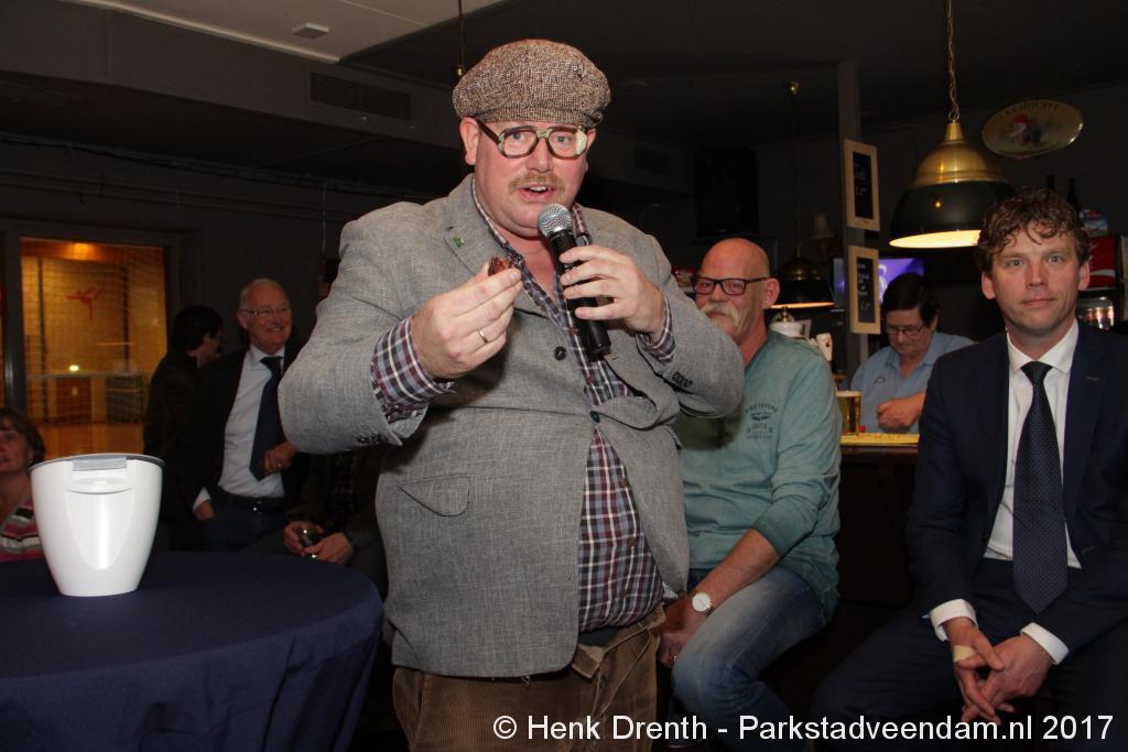 Tijdens de receptie werd aan het hooggeëerd publiek ook een special guest op het 'toneel' gebracht. Dat was niemand minder dan Evert Baptist. En hij ging met ondergetekende van Parkstadveendam ook nog even op de foto. Het was een drukte van belang om het bestuur de handen te schudden. Ik zag namens de KNVB Gerard Bults, voormalig elftalleider van BV Veendam. En namens de gemeente Veendam was wethouder Henk Jan Schmaal aanwezig.