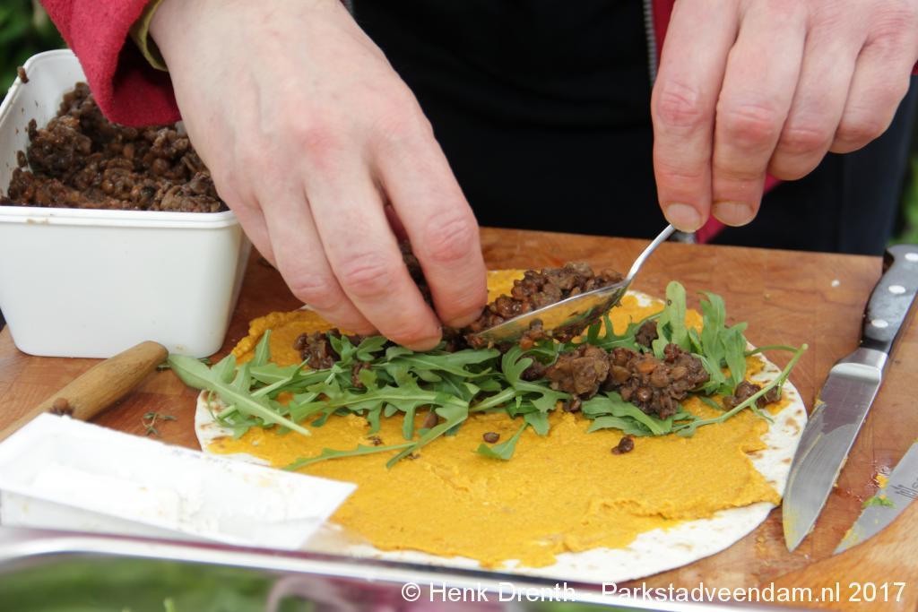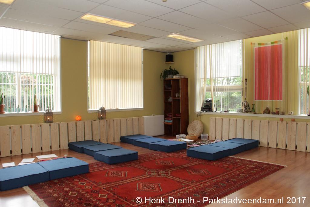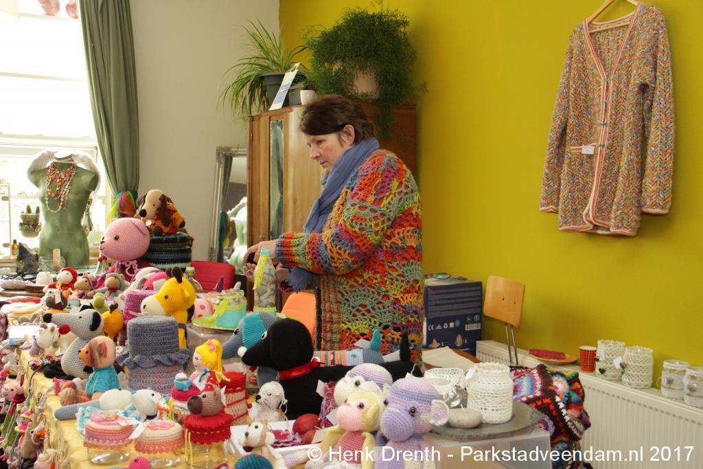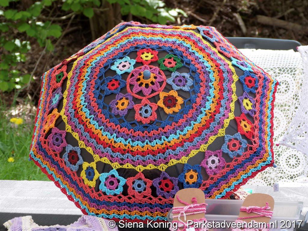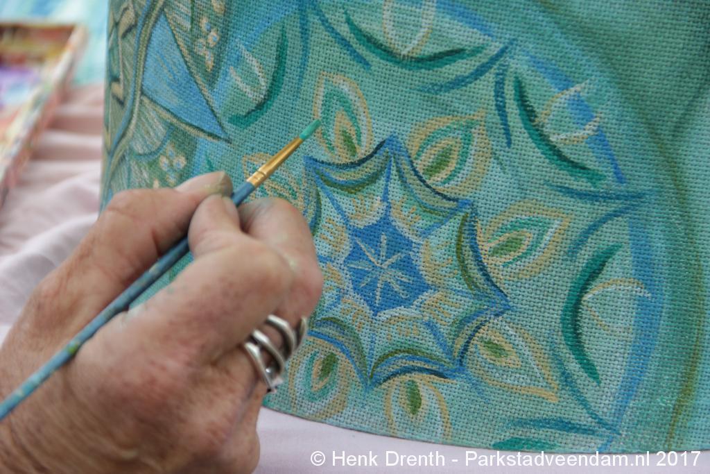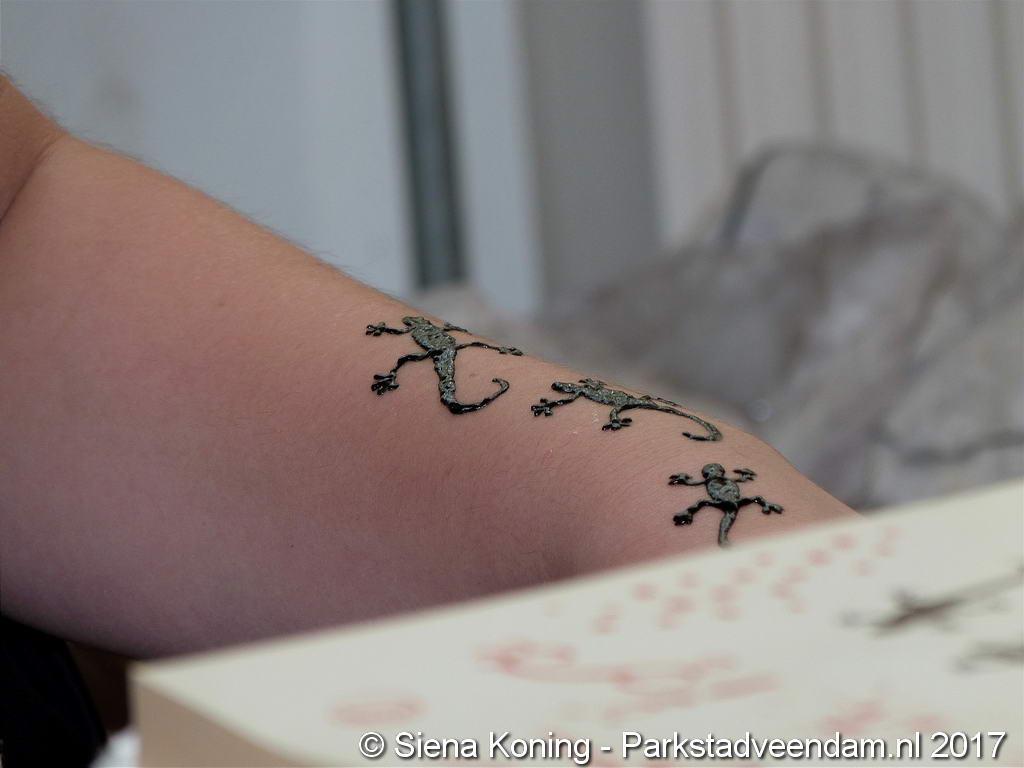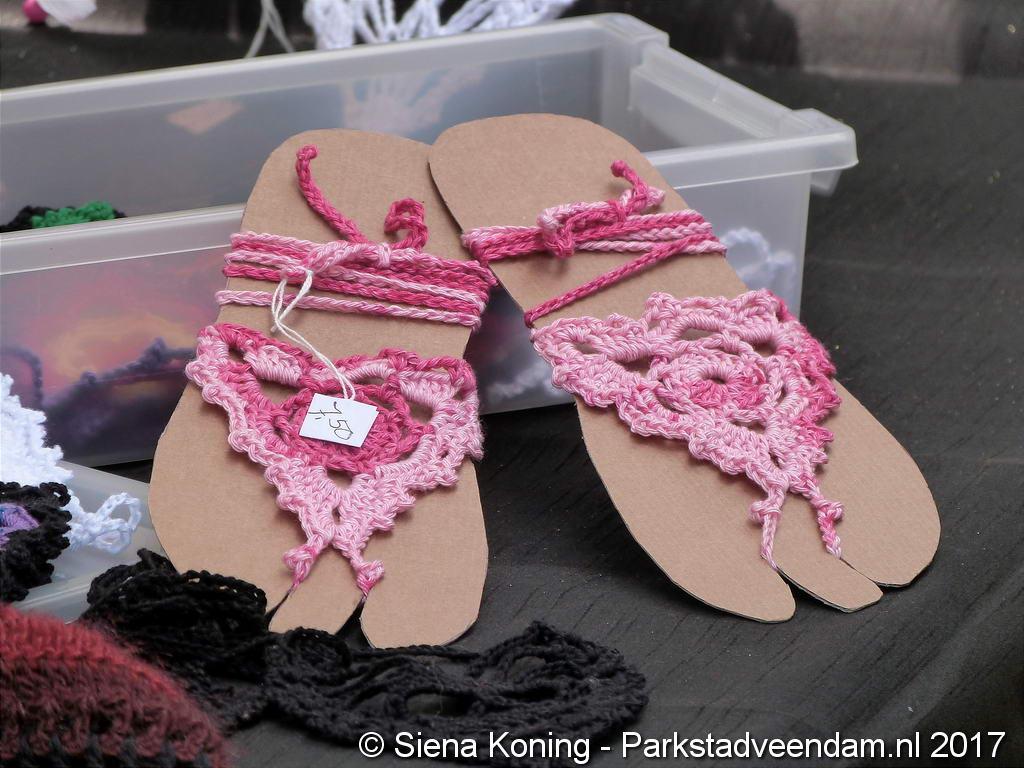 Creatieve haaksters en breisters hadden hun eigen kleurige omslagdoeken, poncho’s, gebreide poppen en meer bij zich. Renée van Os was er om met schmink en henna op gezicht en handen prachtige versieringen aan te brengen. Of het vlechten van een mooie veer in het haar. Natuurlijk was er een uitgebreide collectie stenen en kristallen te bewonderen.
