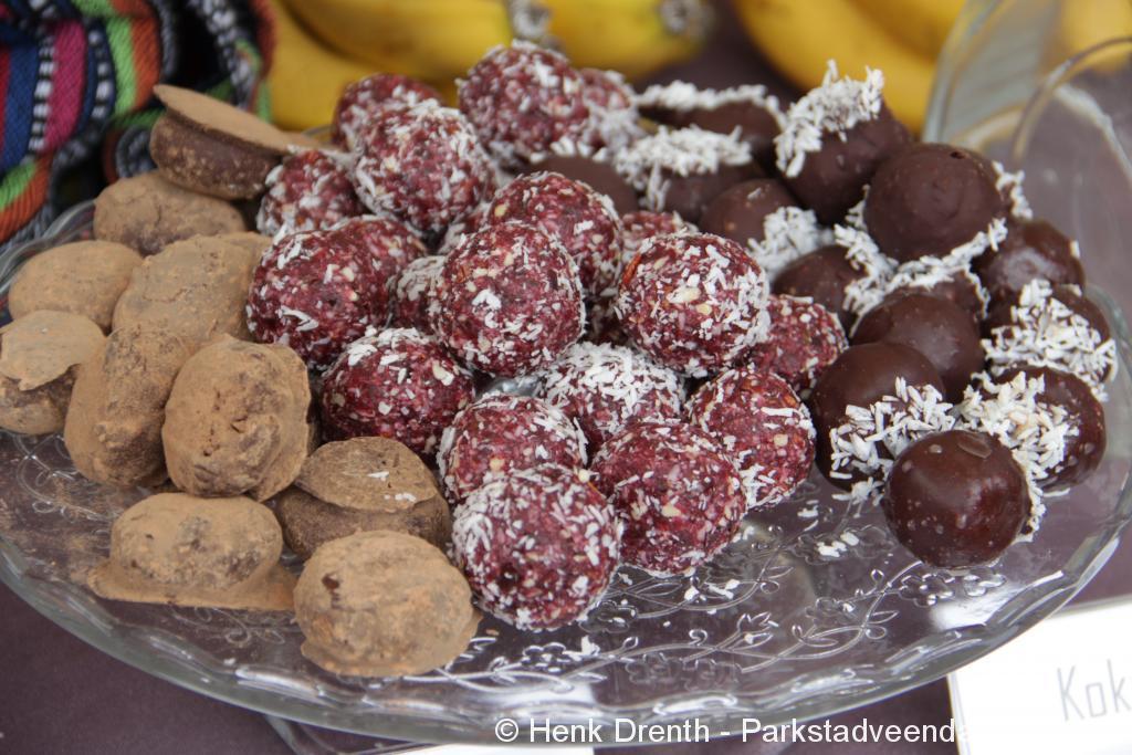 Dana Chocolade had de “bietenbom” met mango, kokos, en met rode biet in hun uitstalling gelegd. Het was verrassend lekker. Ze hadden ook nog de “orgasmic truffel”, dat aanbevolen wordt voor een bijzondere nacht. Het bevat maca en cayennepeper. En omgeven met een lekker laagje raw chocolade (dus geen gekookte), waarin nog veel voedingsstoffen en mineralen.