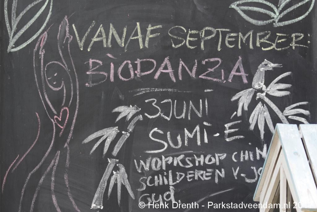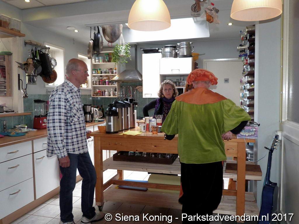 Het weer werkte geweldig mee aan dit gezellig en knus evenement. Er waren verschillende zitplekjes. Binnen en buiten in de tuin. Een gelegenheids 'ijscoboer' in witte jas bracht met zijn ijscokar steekijsjes rond. De zwaluwen vlogen in en uit en leken zich van de bezoekers niet zoveel aan te trekken. In de schuur was een nestje gebouwd.