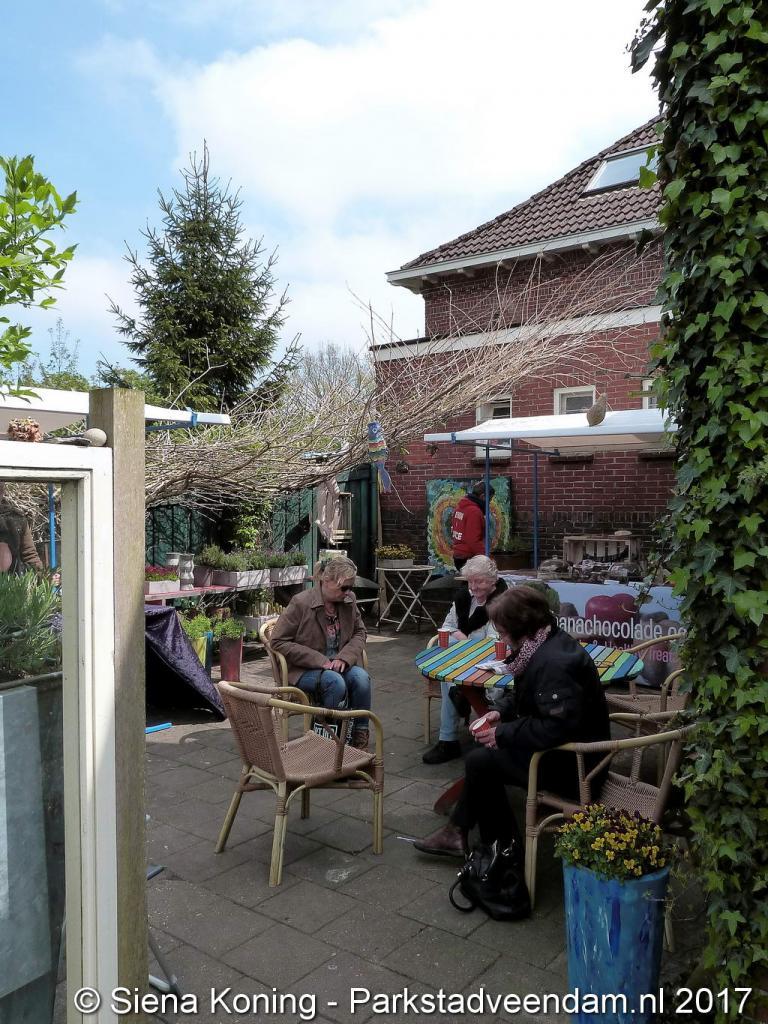 Er stonden buiten meerdere kramen en ook was er een voedselplein(tje) met terras! En last but not least liep er een echte jaren '60 hippie rond om de bezoekers te vermaken met zijn zangkunst: Otto Teppema, een ware jukebox: je geeft hem geld en hij zingt het liedje wat jij graag wilt horen (als het op zijn zeer uitgebreide repertoire staat natuurlijk) en Renée van Os was er ook, zij maakte prachtige hennatekeningen op of een vlecht met een veer in het haar.