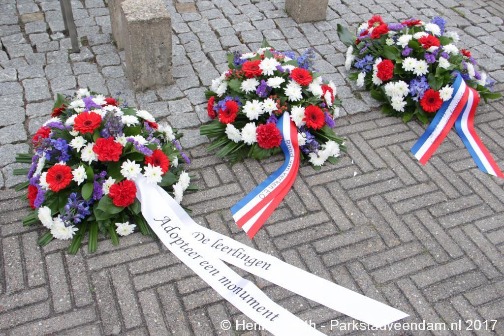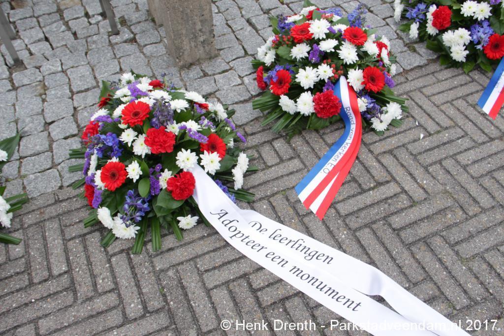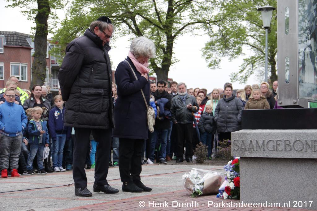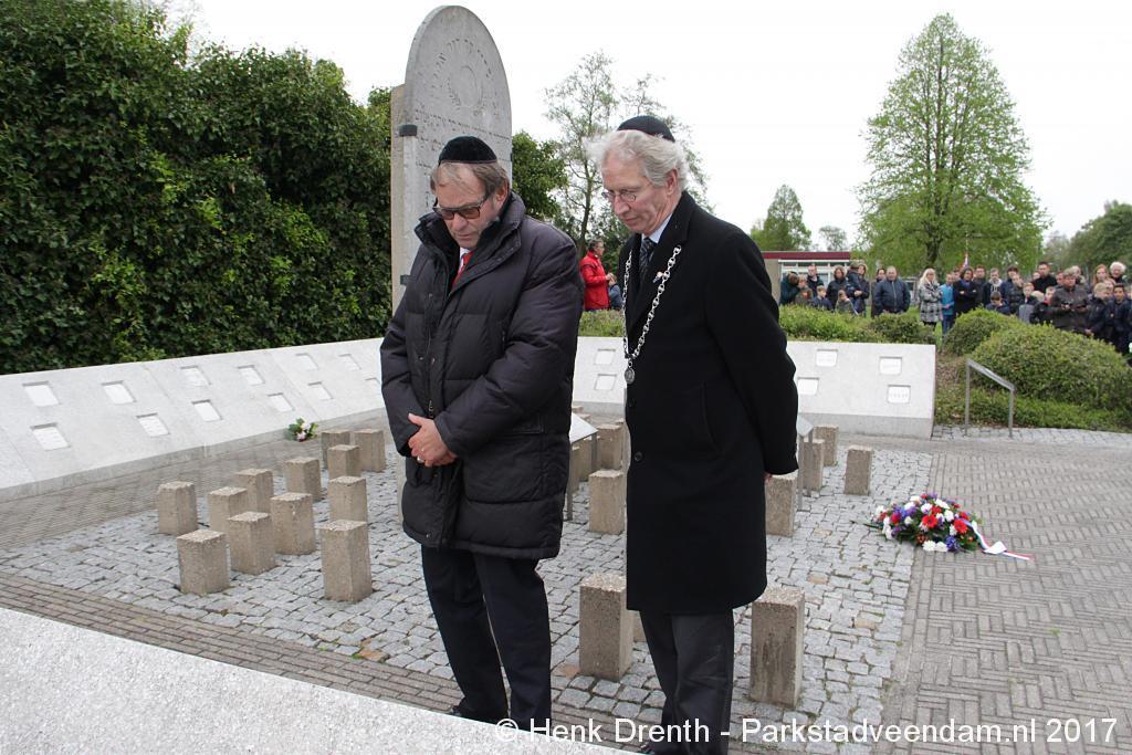 Ook andere belangstellenden hebben kransen gelegd. Na de kransleggingen maakte Vosdingh samen met de burgemeester een rondgang langs de metalen plaatjes met namen. Veel voorkomende familienamen waren Cohen, Van Delft, Valk en West. Voor het plaatje van zijn familie met de familienaam Van Delft bleven ze even stilstaan. Na de herdenkingplechtigheid bij het Joods Monument toog Leo zoals ieder jaar met zijn vrouw Betty naar het oorlogsmonument in Wildervank voor een kranslegging.