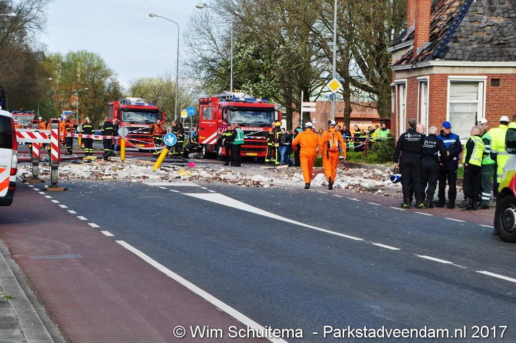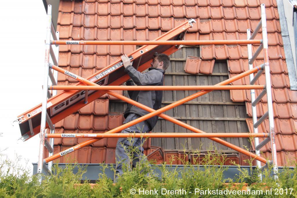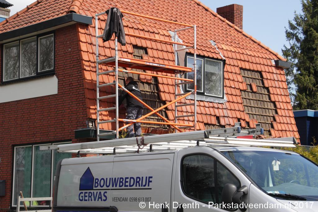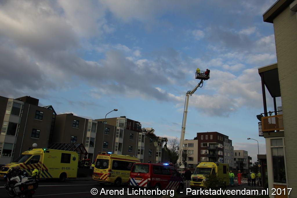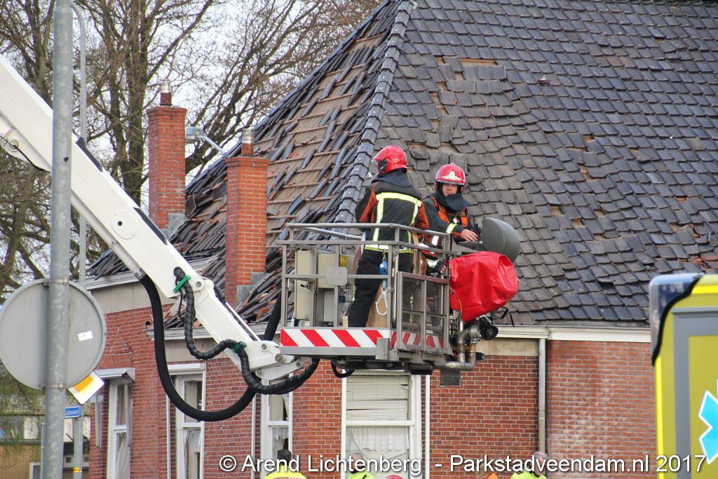 De aannemer was inmiddels aan de slag gegaan met het herstellen van het dak. Tachtig woningen blijven voor onbepaalde tijd verstoken van gas en elektriciteit.