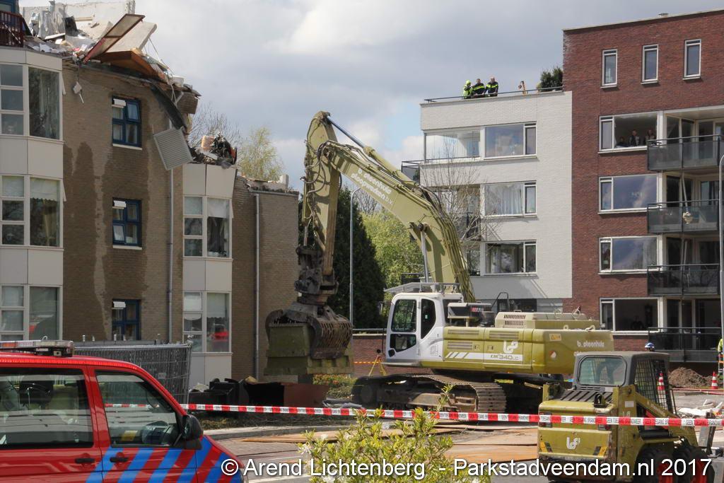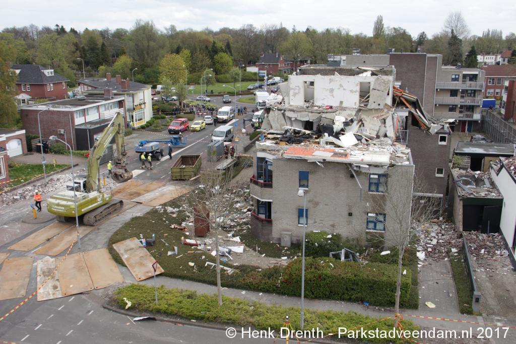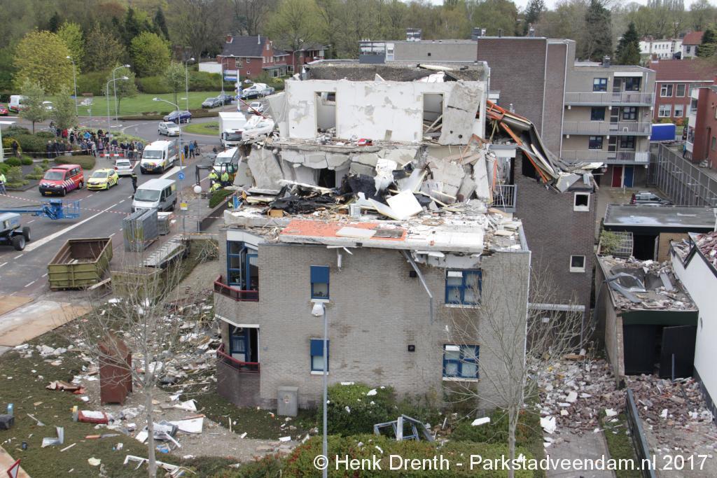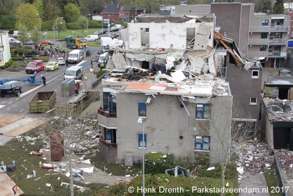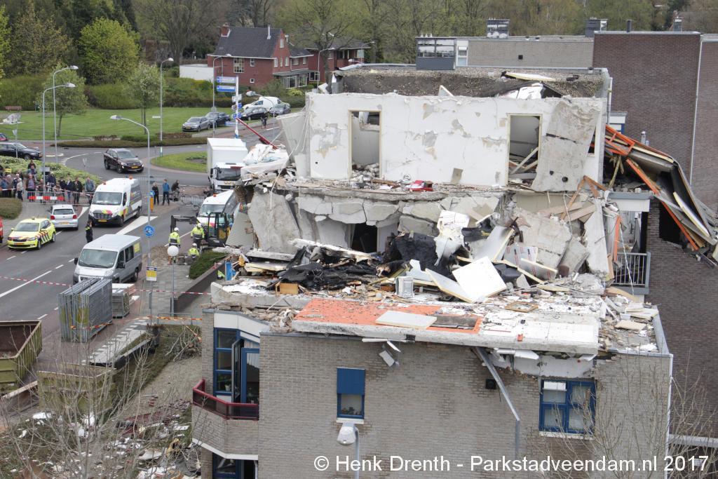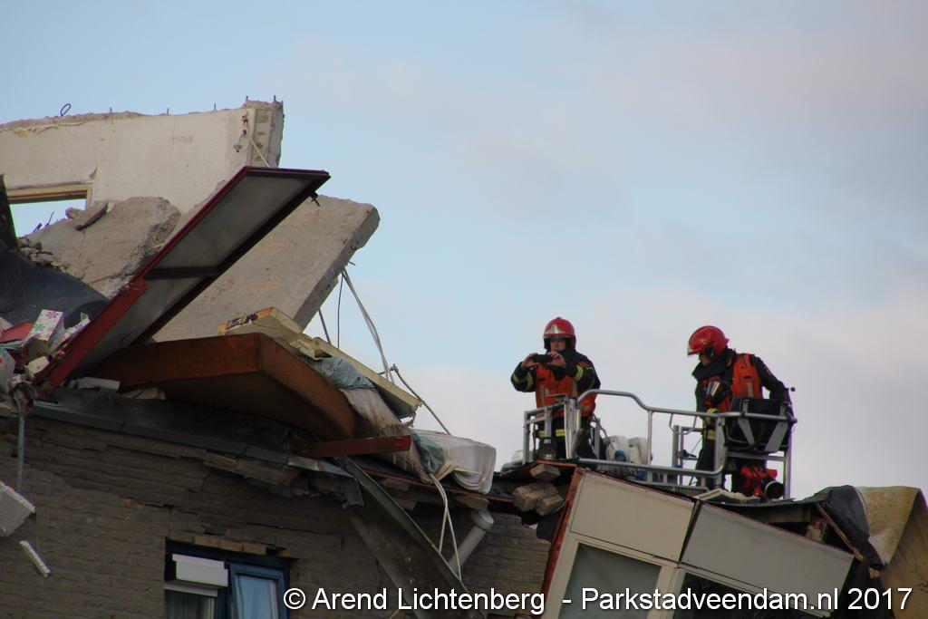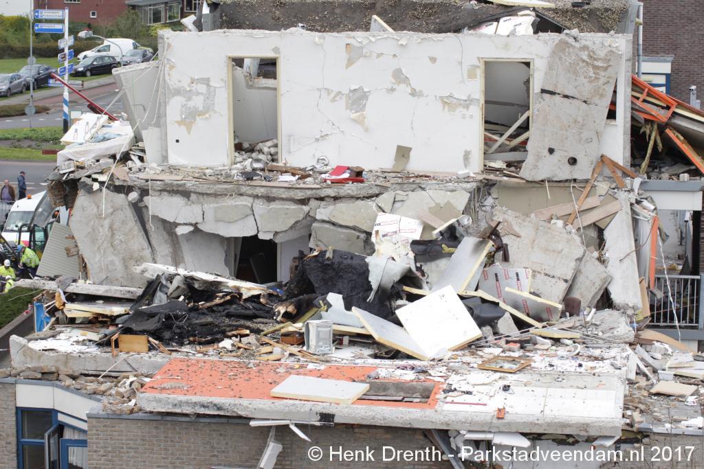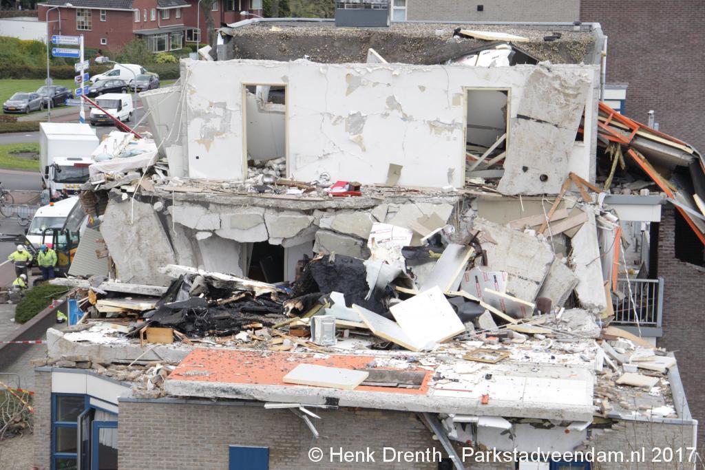 Brokstukken op en rond het complex werd met man en macht opgeruimd. Bouwkundige specialisten hebben gekeken hoe het met de bouwkundige constructie ervoor stond. En hoe veilig het was om er dichterbij te komen en binnen te treden. Iets voor 13.00 uur kon het lichaam van de omgekomen man worden weggedragen.