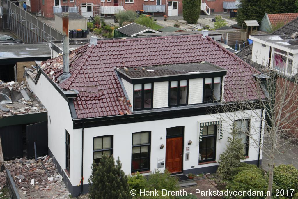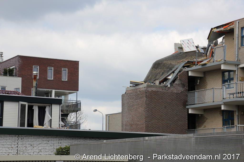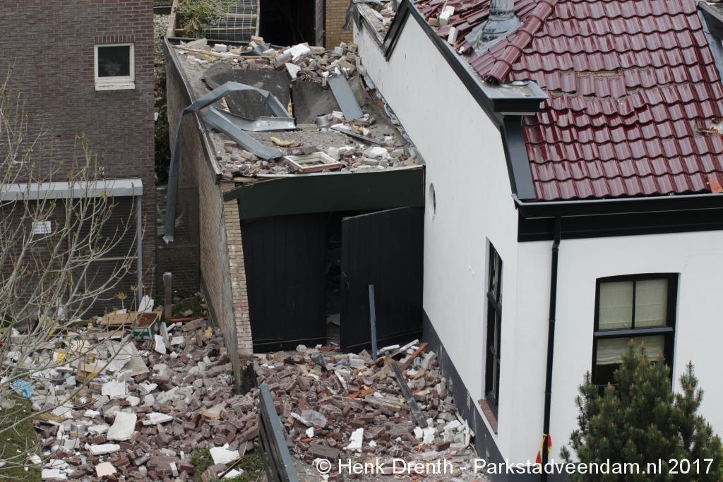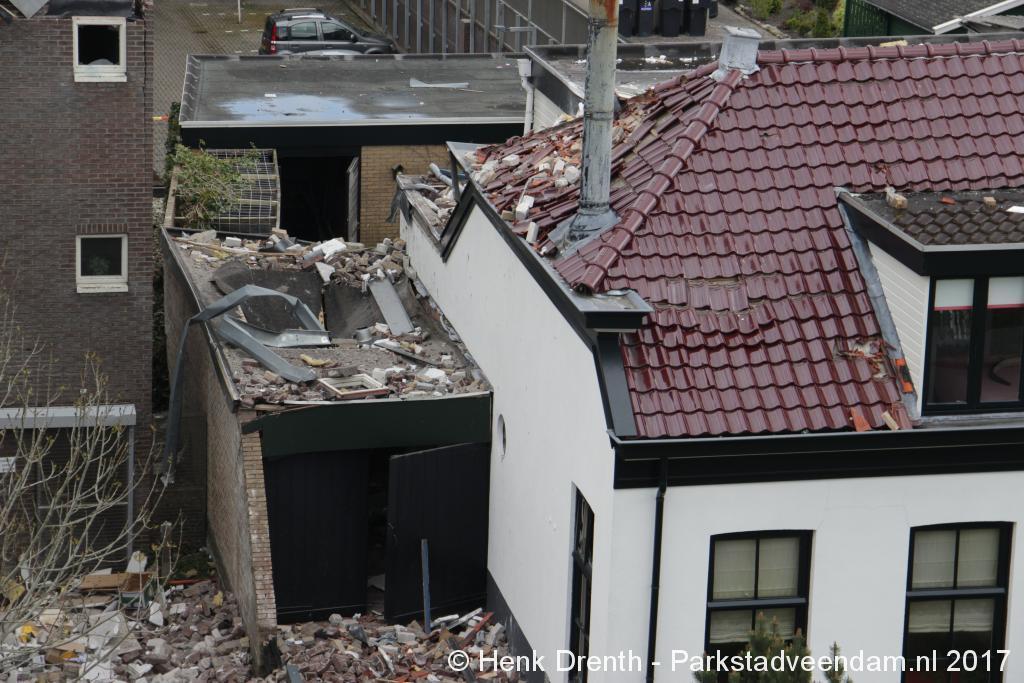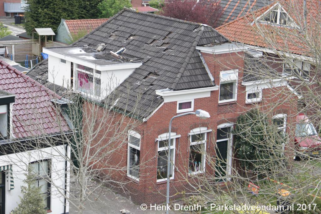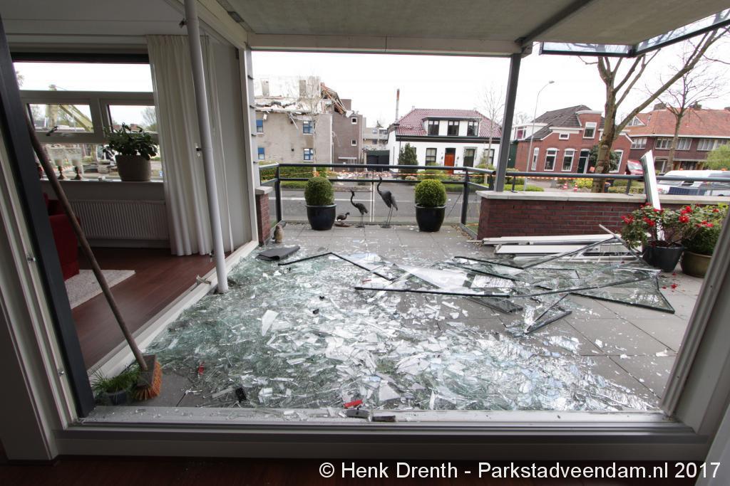 Janette en haar broer waren al wat bezig met opruimen, maar het metalen hekwerk moest blijven liggen. Buurman Hein Glazenburg lag nog te slapen. Hij hoorde na de knal het vallen van de dakpannen. Het raam was tot zijn verbazing heel gebleven, waarschijnlijk omdat het open stond. Terwijl het dakkapel een paar centimeter ontzet is en scheef staat. Het was een enorme drukgolf. Door de dakpannen kreeg hij de deur niet open.