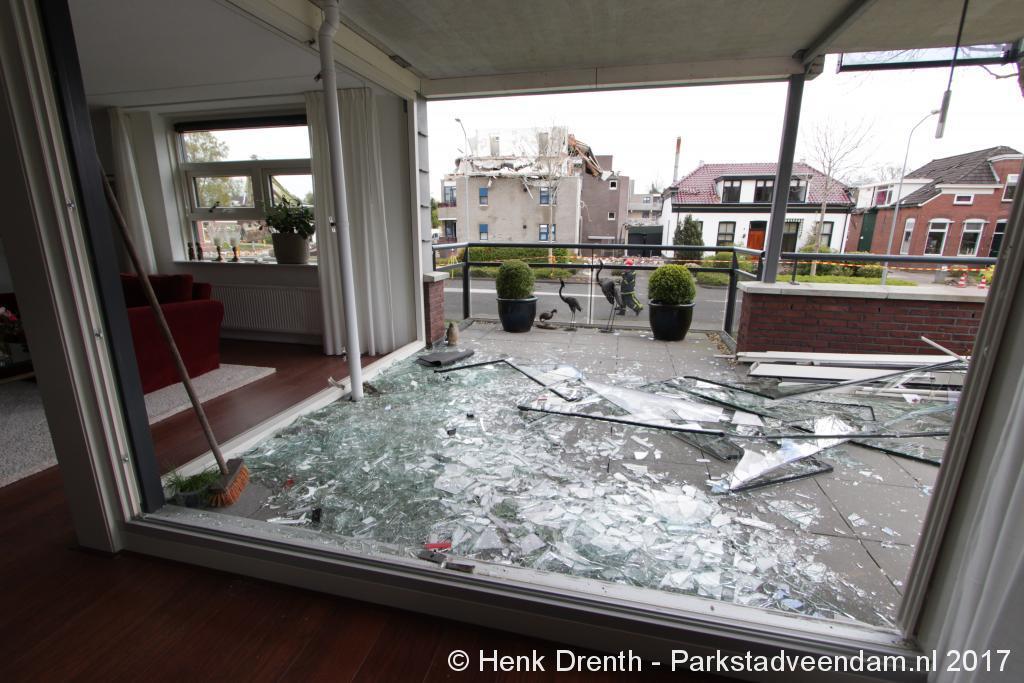 De schade experts waren druk doende om de schade op te nemen. Een aannemersbedrijf was bezig met het plaatsen van grote multiplexplaten. Ook kozijnen moeten opnieuw geplaatst, maar met een lange levertijd kan dat nog even duren. Zelfs de kamerdeur is door de drukgolf ontzet en gedeeltelijk gescheurd. Doordat de drukgolf zat opgesloten was het door de kamer heen gaan circuleren.