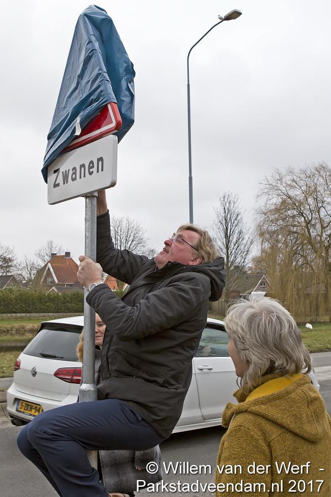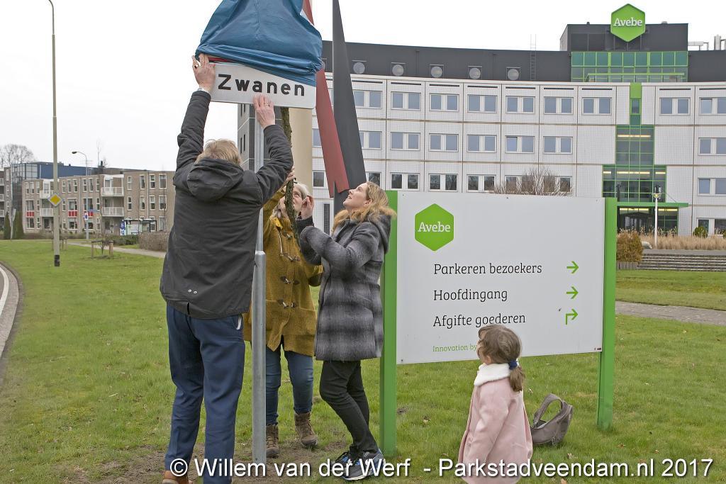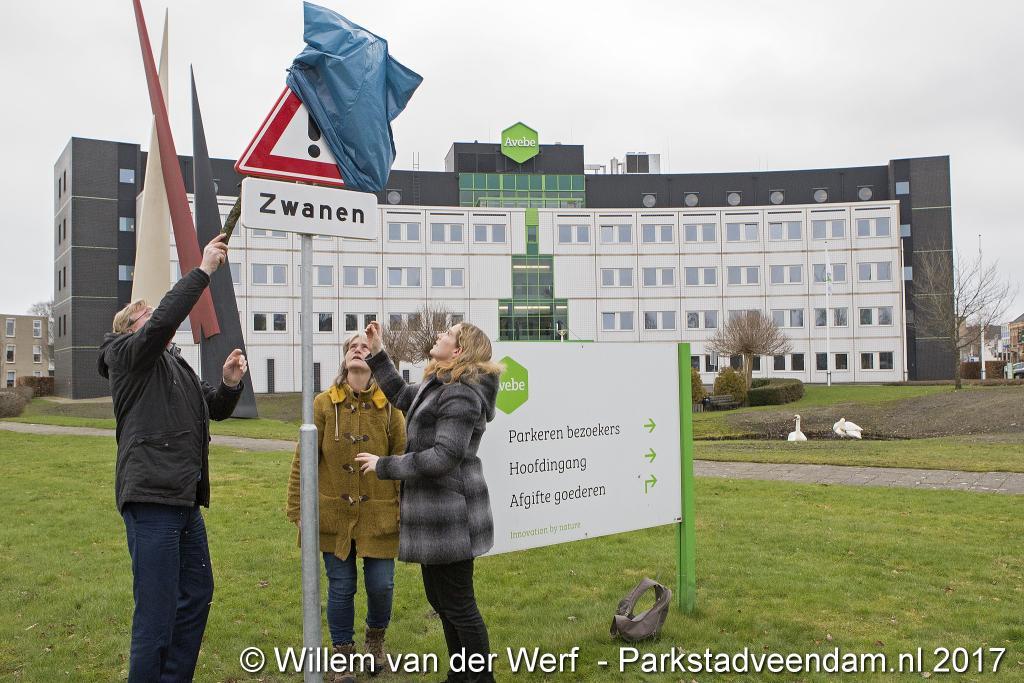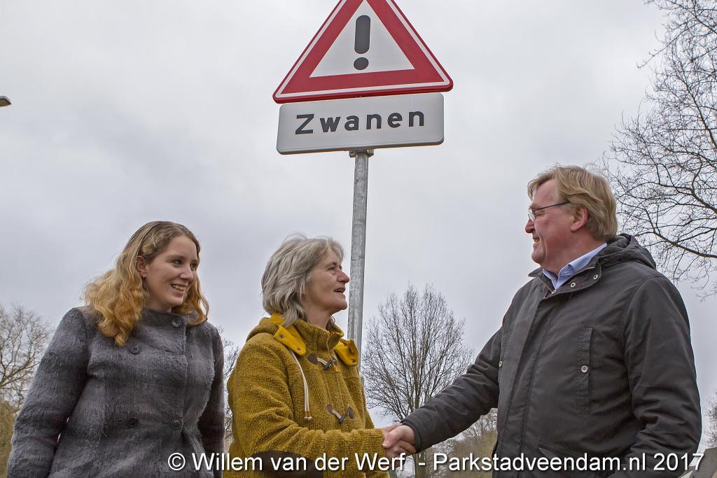 De gemeente Veendam heeft dinsdagmiddag twee waarschuwingsborden geplaatst vanwege overstekende zwanen aan de Buitenwoellaan in Veendam. Wethouder Andre Hammenga onthulde samen met zwamenmoeder Trijnie Suk en haar dochter Wendy, de borden bij de rotonde met de Raadsgildenlaan.