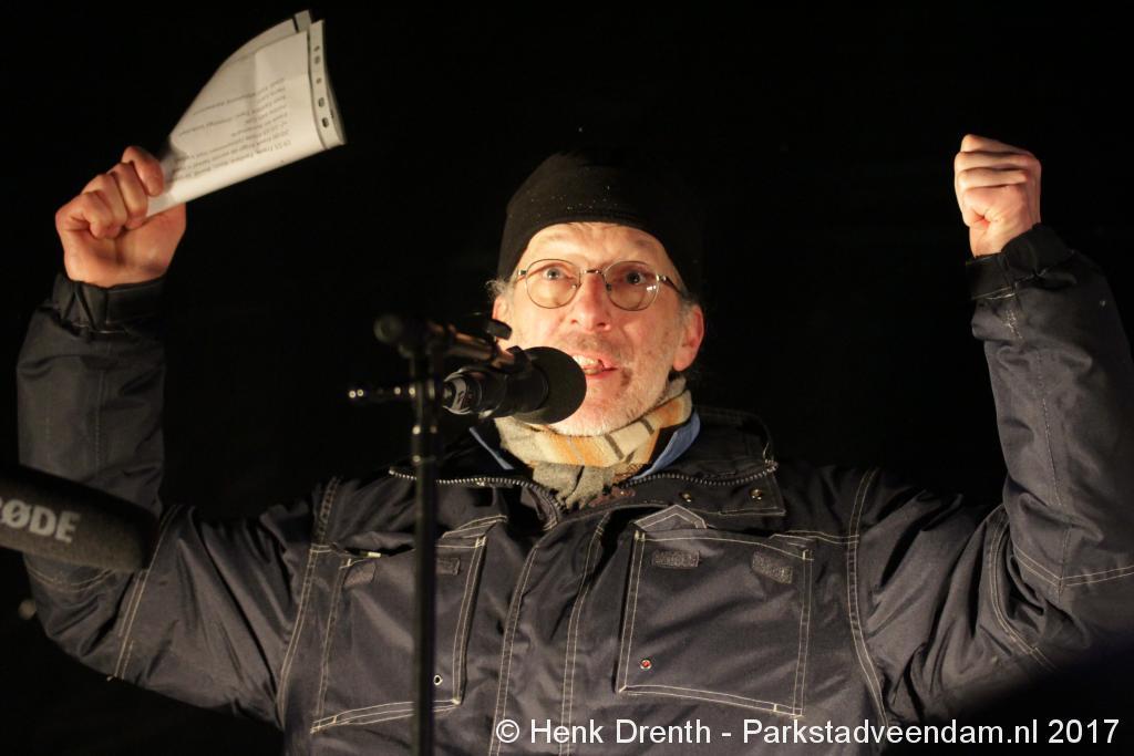 Freek de Jonge noemde drie punten enorm met elkaar samenhangend, en ook stuk voor stuk enorm voor de hand liggend. De gaswinning moet in een hoog tempo teruggeschroefd worden. Mensen moeten zo snel mogelijk veilig kunnen wonen, het liefst in hun eigen woning. En hij wil graag zien dat er een toekomstplan voor Groningen komt op basis van een andere energievoorziening. "Het is tijd voor transitie".