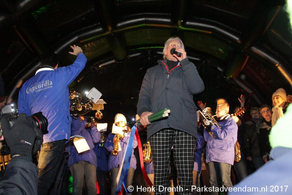 Na de tocht overhandigde cabaretier en geboren Groninger Freek de Jonge op het podium een petitie aan de Commissaris van de Koning René Paas.