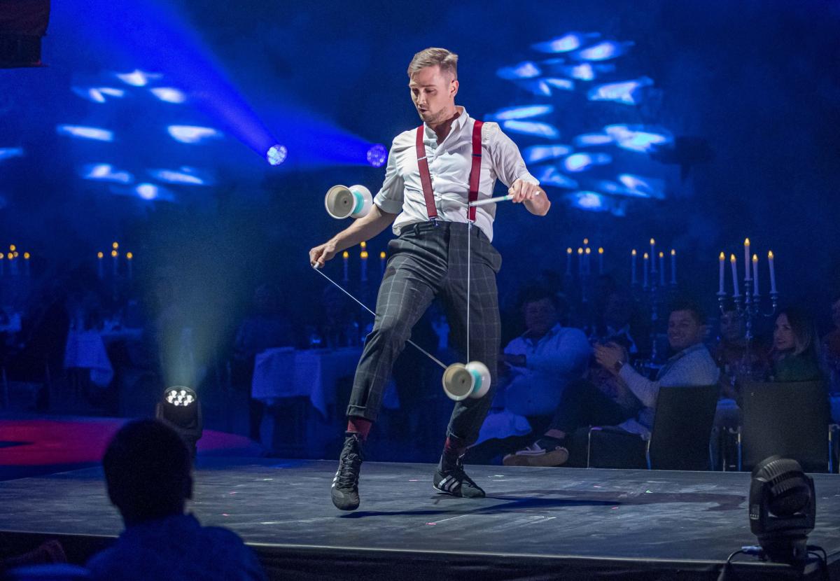 Alles wat dit variété diner tot een succes maakt, doen de artiesten helemaal zelf. De choreografie, de kostuums, de technische kant alles, alles. Ook dat is curieus. Het zijn stuk voor stuk multi-talenten.