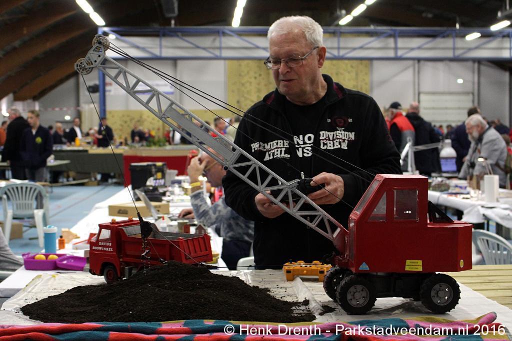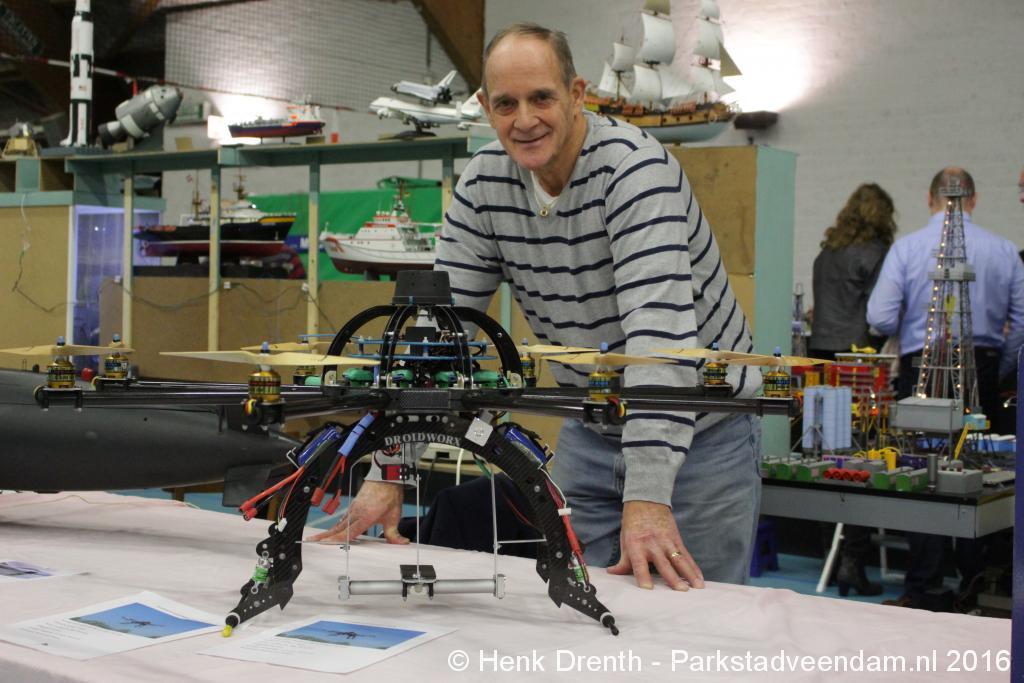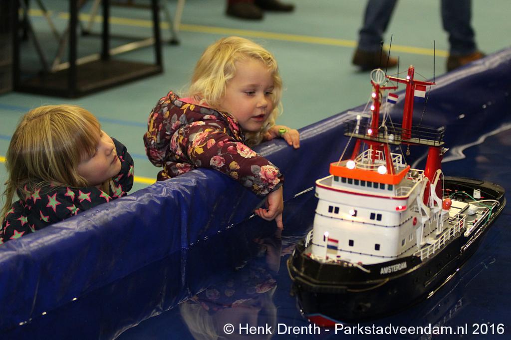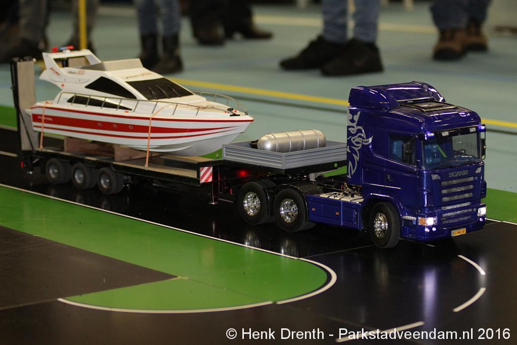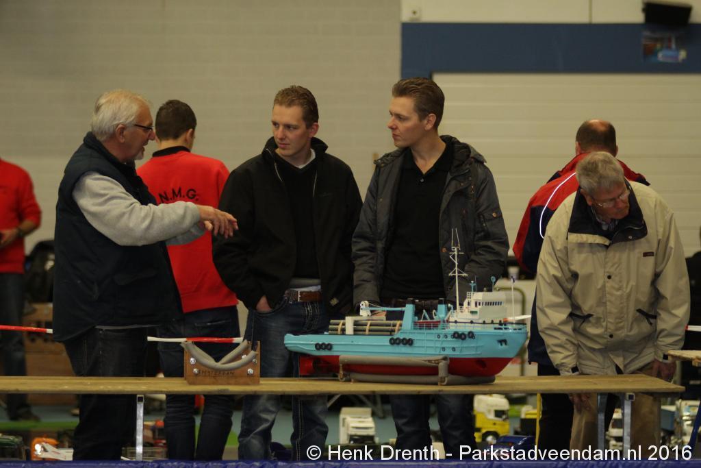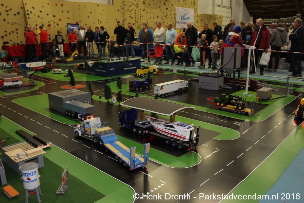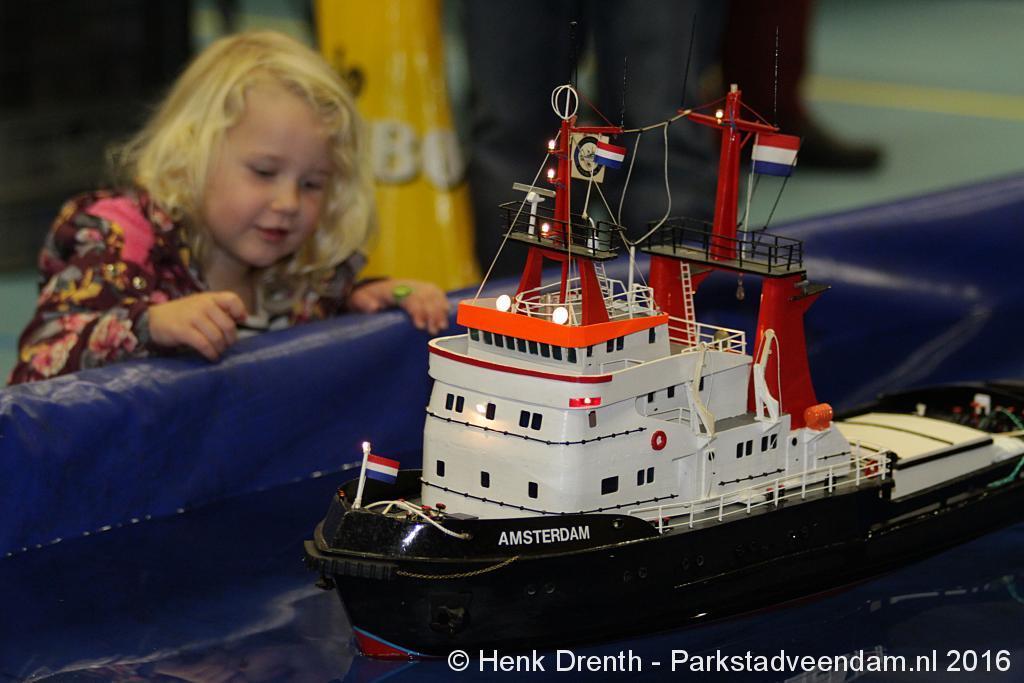 Achterin de hal reden grote modelvrachtwagens rond dat heel veel aandacht trok. Zandvrachtwagens werden door een graafmachines geladen. In een grote bassin was een grote verscheidenheid aan modelbouwschepen te bewonderen. Samenwerking tussen de beide modelbouwclubs bestond uit het laten vervoeren van boten op trailers. Kinderen mochten ook zelf met modellen varen. Model siervliegtuigen waren ook uitgestald, maar vliegend materieel ontbrak nagenoeg. Behalve een forse zelfbouw drone dat onmiddellijk in het oog viel. Dezelfde bouwer had ook eigenhandig een groot model Walrus onderzeeër gebouwd.