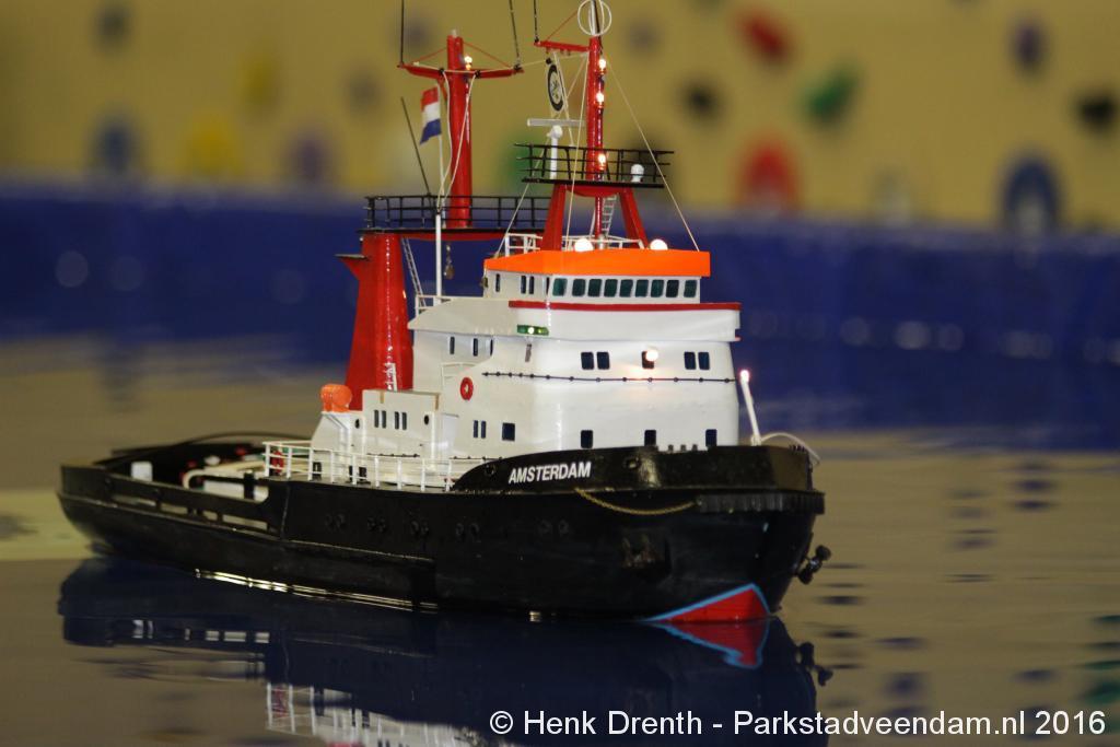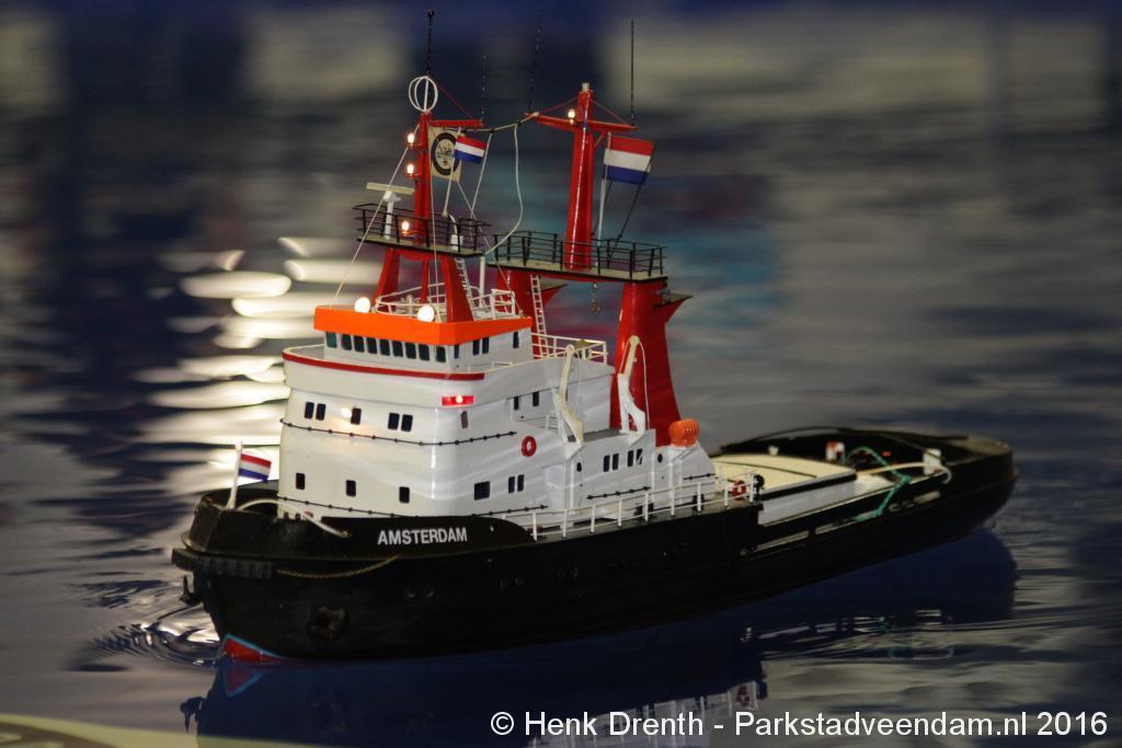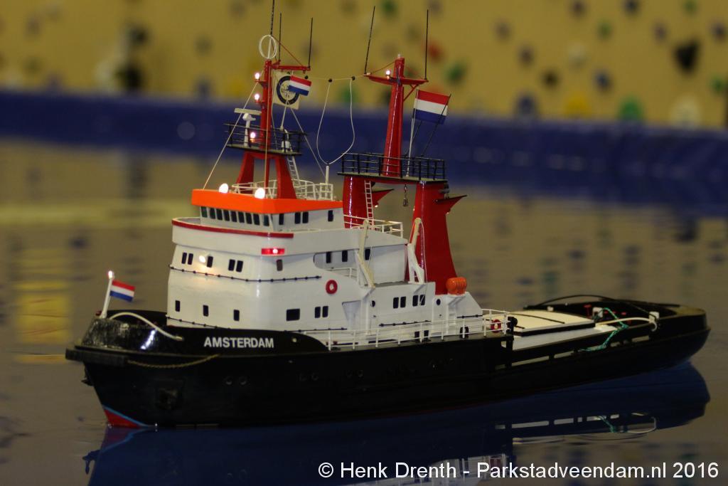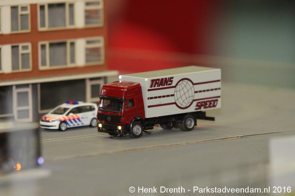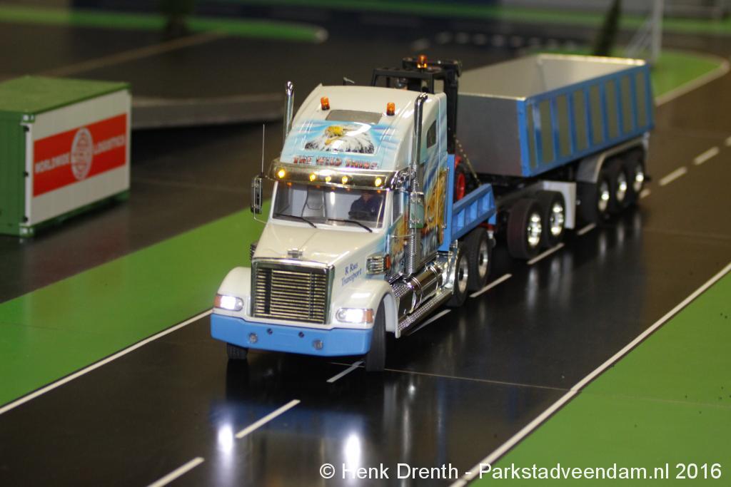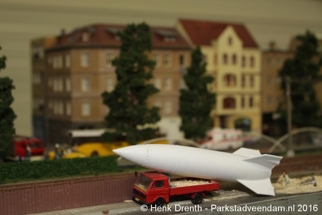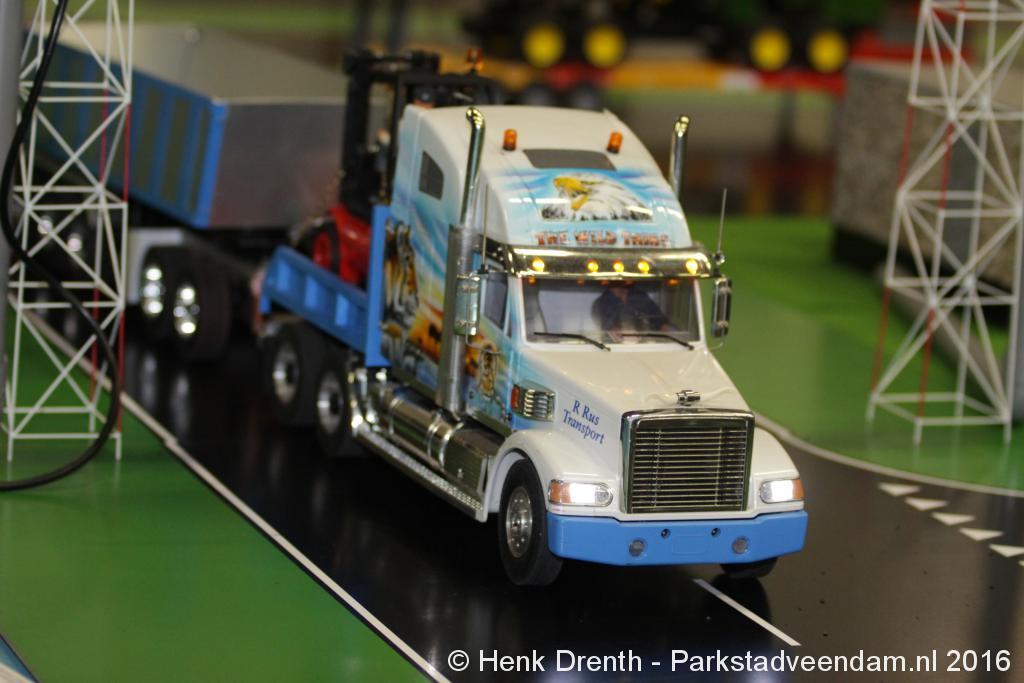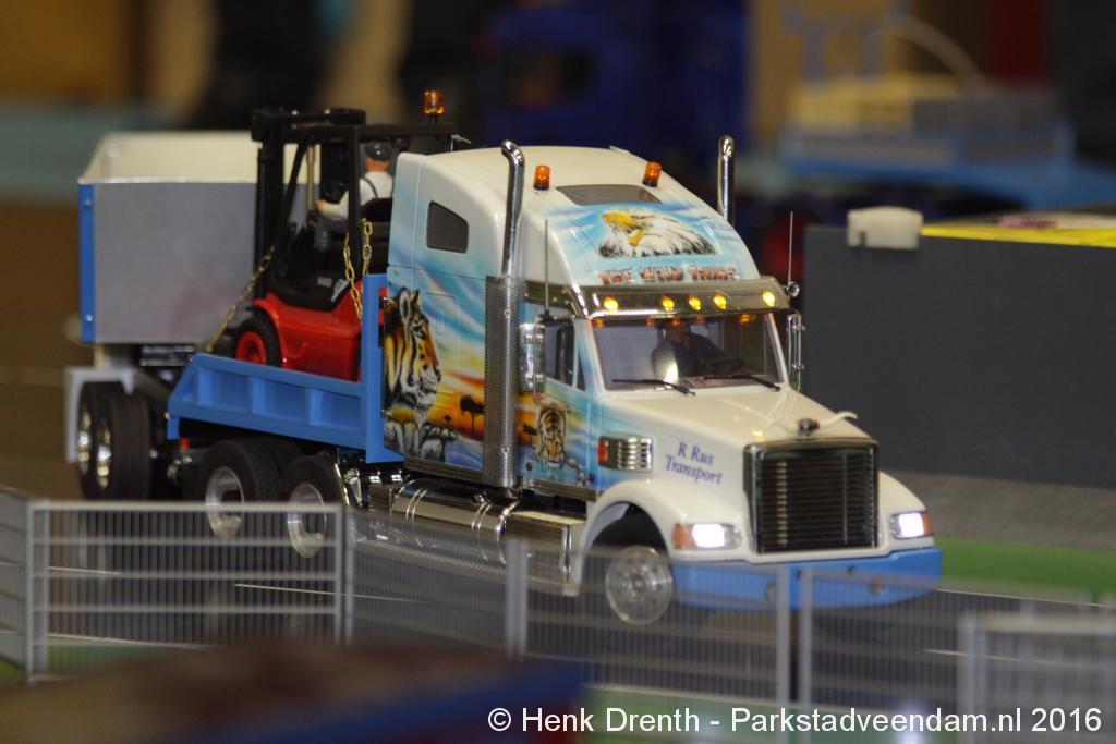Achterin de hal reden grote modelvrachtwagens rond dat heel veel aandacht trok. Zandvrachtwagens werden door een graafmachines geladen. In een grote bassin was een grote verscheidenheid aan modelbouwschepen te bewonderen. Samenwerking tussen de beide modelbouwclubs bestond uit het laten vervoeren van boten op trailers. Kinderen mochten ook zelf met modellen varen. Model siervliegtuigen waren ook uitgestald, maar vliegend materieel ontbrak nagenoeg. Behalve een forse zelfbouw drone dat onmiddellijk in het oog viel. Dezelfde bouwer had ook eigenhandig een groot model Walrus onderzeeër gebouwd.