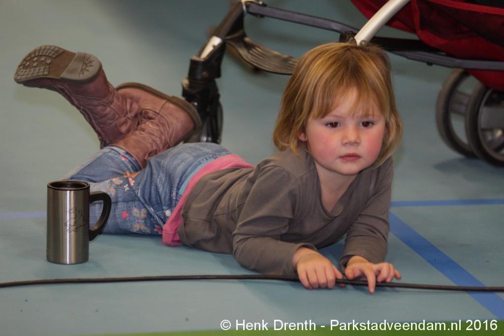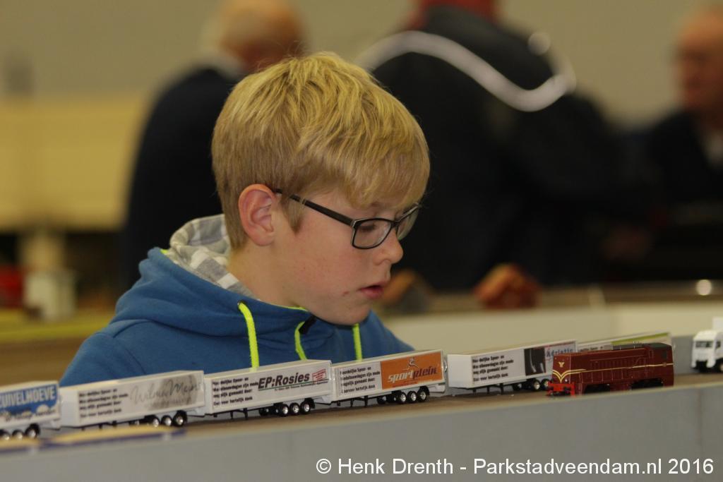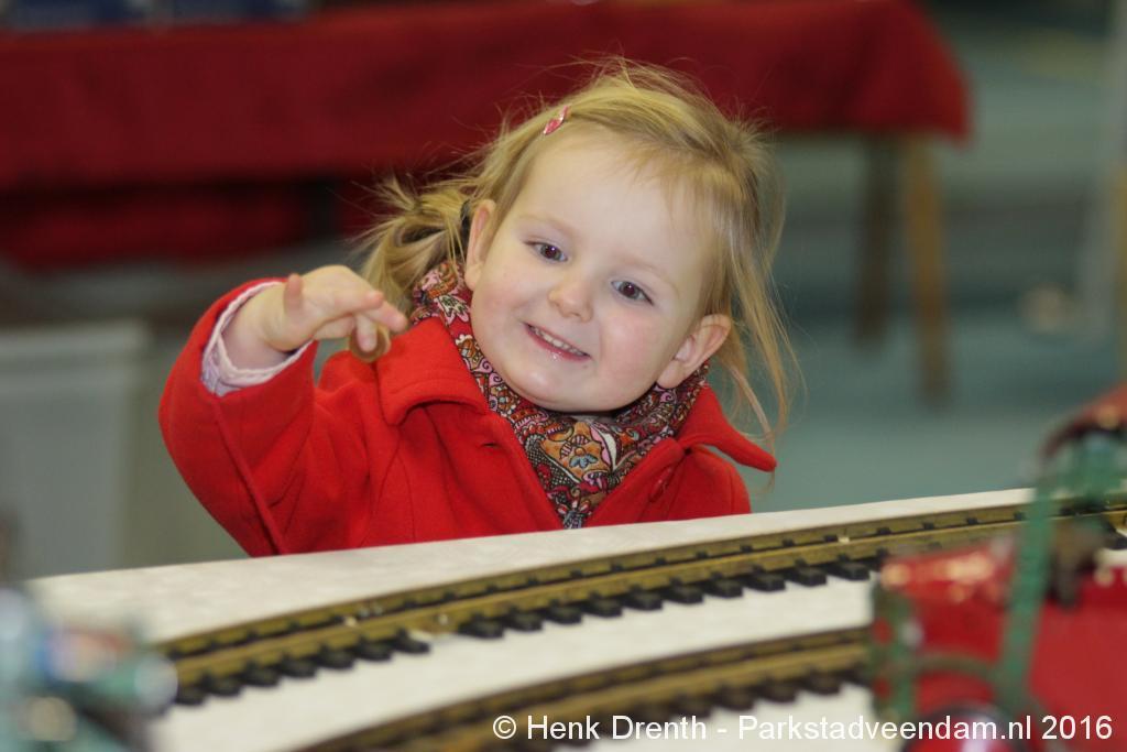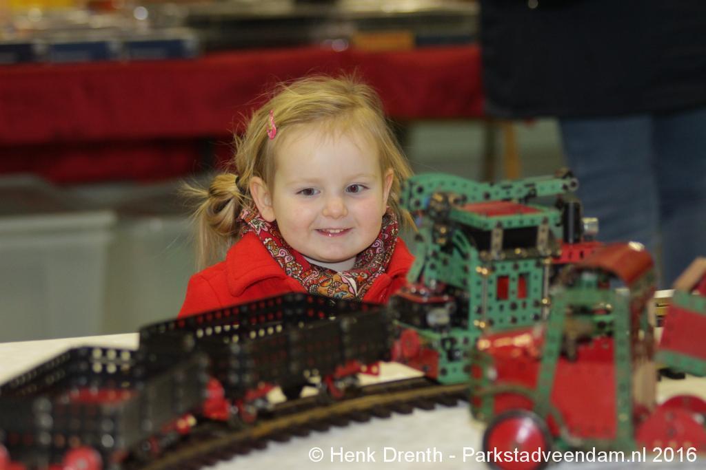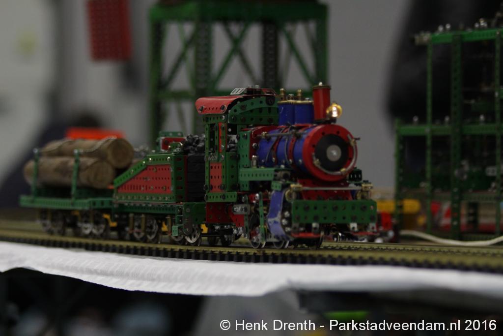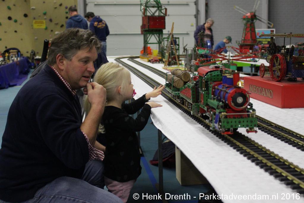 Van het montagemateriaal Meccano reden twee locomotieven hun rondes. Welke volop de aandacht trokken van de 6 jarige Beau Frikken uit Muntendam.