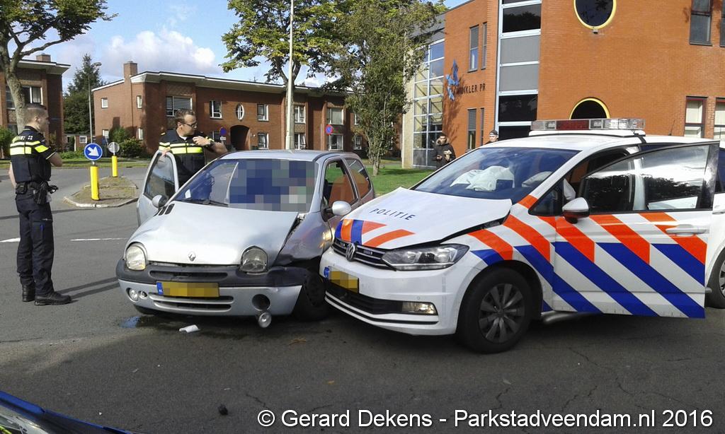 Op de T-splitsing Kazemierstraat / J.G. Pinksterstraat heeft vrijdag om 12:00 uur een ongeval plaatsgevonden tussen een politieauto en een personenauto.