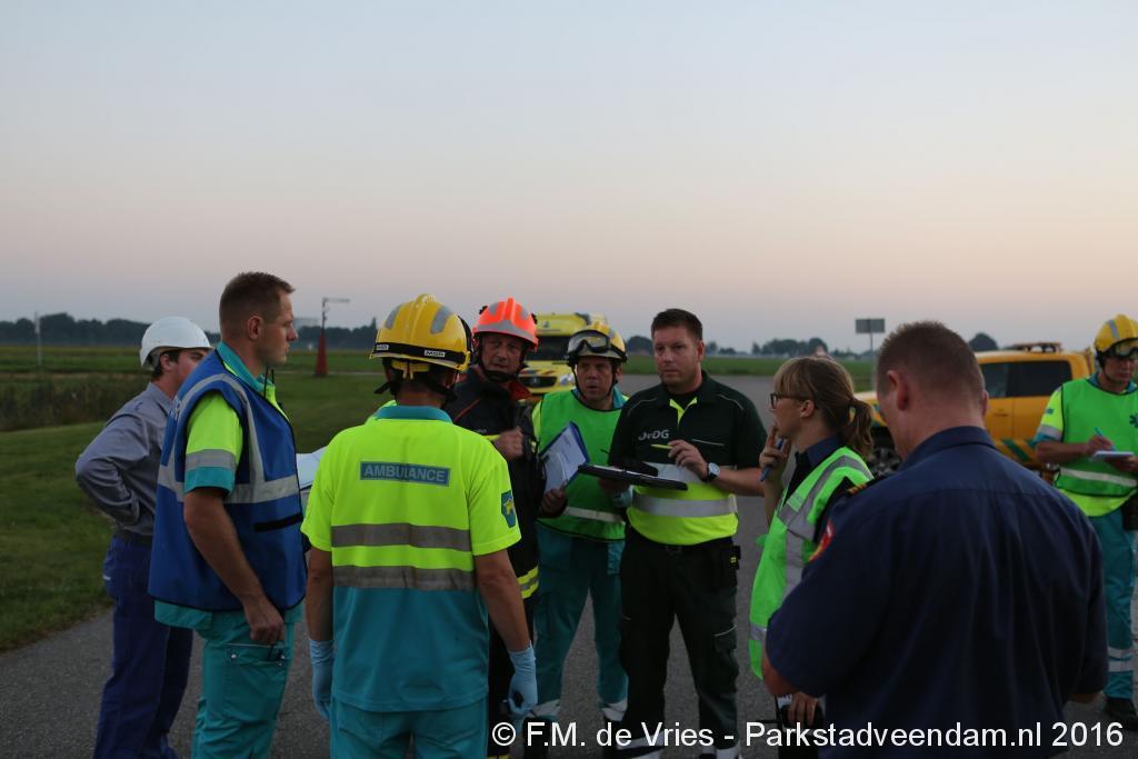 Op beide locatie zouden gewonden zijn gevallen, die door lotus slachtoffers werden uitgebeeld. Hierop werd een melding gedaan via 112, waarna de oefening startte. De brandweer korpsen van Nieuwe Pekela en Veendam en een drietal ambulances werden ingezet om dit zo echt mogelijk te oefenen. Niet alleen het feitelijk redden van slachtoffers werd geoefend, maar ook de overleg structuren werden uitvoerig getest.